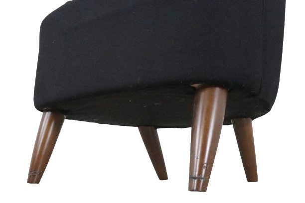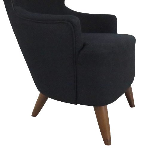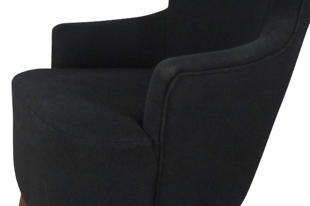 Spectacular armchair, with large wingback back, in the style of Tom Dixon. Although not marked, the design of this very special armchair is very close to the well-known specimens of top designer Tom Dixon. It is therefore quite possible that we are dealing with an original copy of this contemporary design classic! The Wingback armchair by Tom Dixon was inspired by the traditional 17th century balloon-like furniture in British clubs. Out of six different prototypes, the Wingback eventually emerged as the winner and was launched in 2007. In 2015, the chair was modified to further ensure its sublime comfort and enhance its particularly striking silhouette. The specimen on offer was presumably executed after the first design. The wings of the armchair offer pleasant acoustic protection and a certain form of security so that one can really shut oneself off from the outside world for a while. The black fabric feels very soft and is still very clean, the traces of use are expressed in a few impact marks on the front legs, caused by the housekeeping of the hotel where this chair has stood for the first part of its life. A true modern design classic and an armchair for those who dare to choose something different!