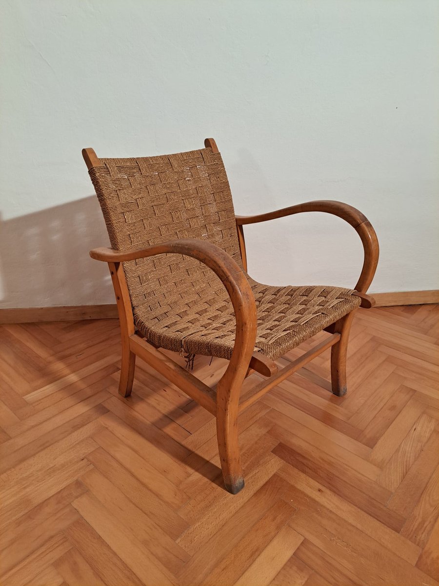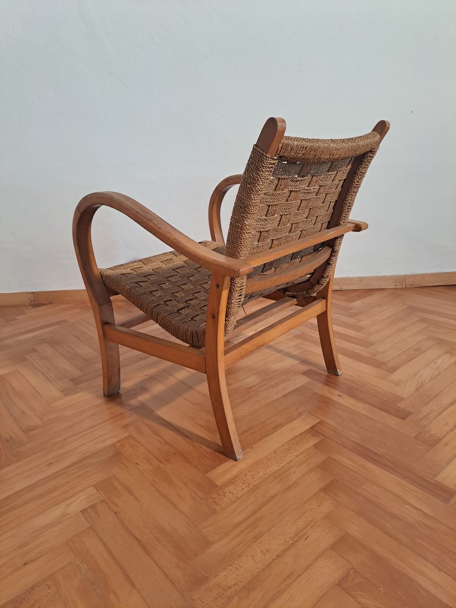 Sedia Bauhaus in faggio e corda di carta di Erich Dieckmann, Germania, 1925