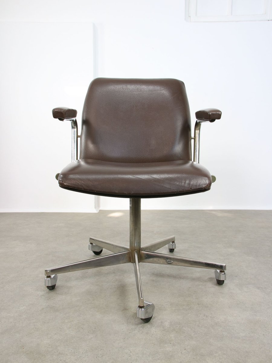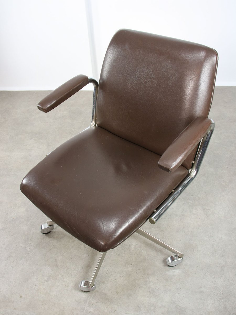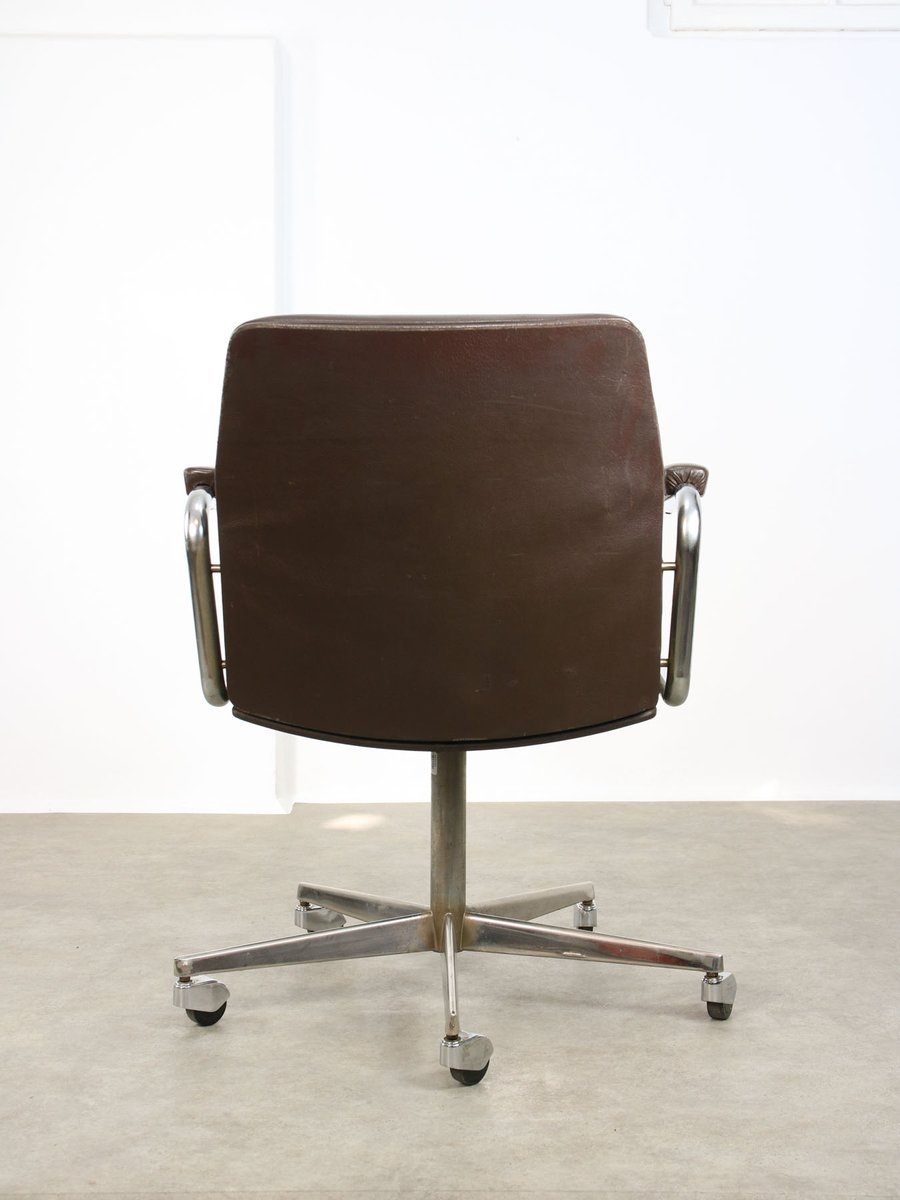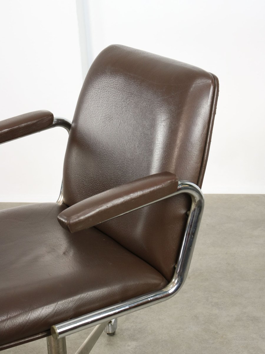 Sedia girevole Mid-Century in pelle marrone, Italia