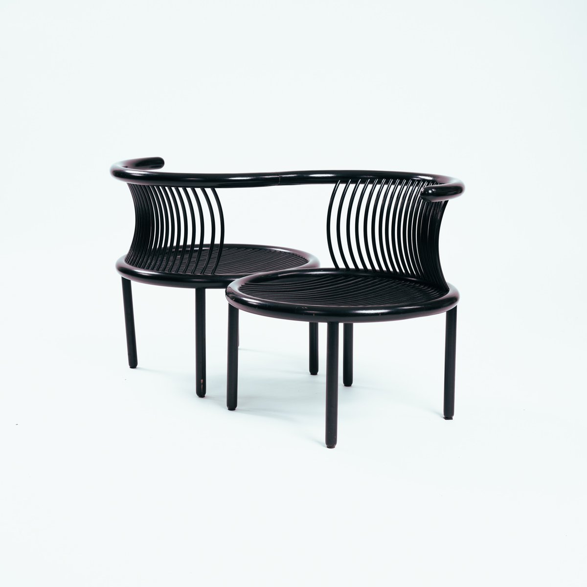Questa sedia Vis à Vis è un pezzo unico, realizzato appositamente da Lubke per un uso esclusivo in occasione di un congresso negli anni Ottanta.