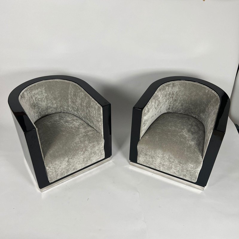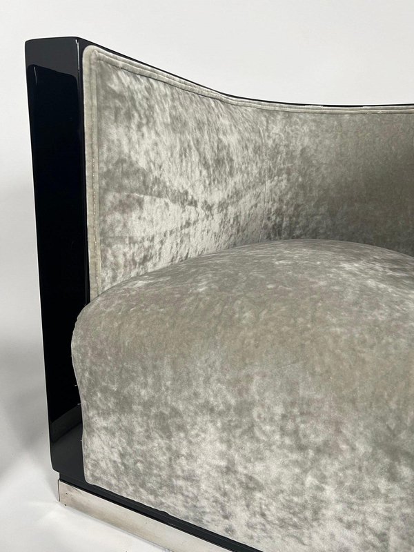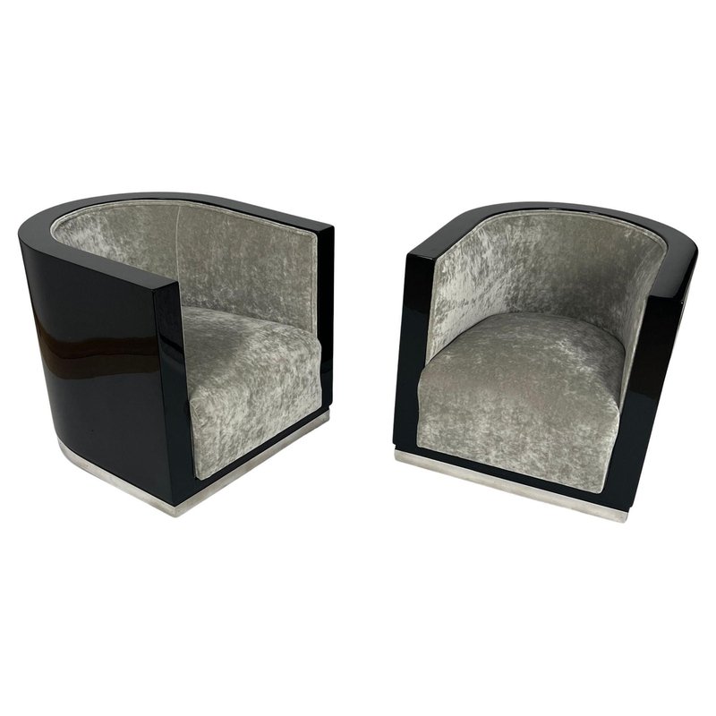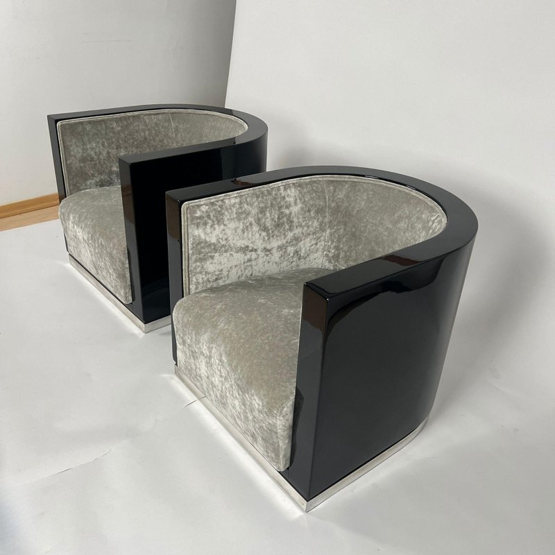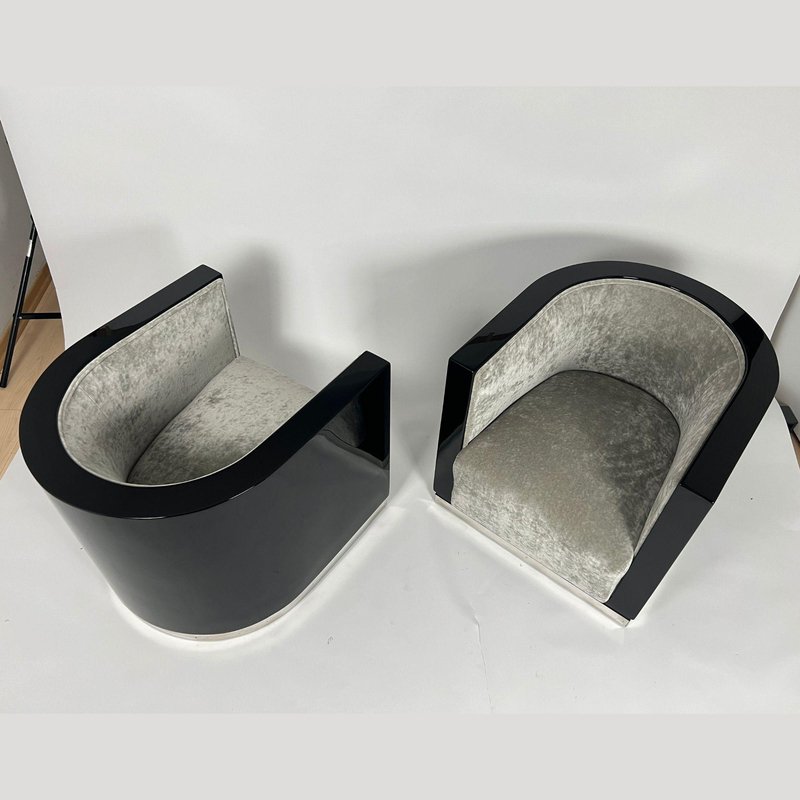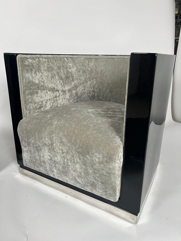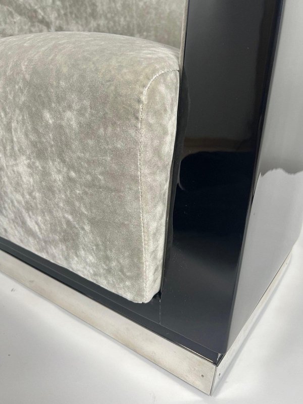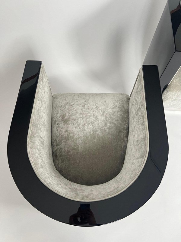 Sedie Art Deco laccate nere e velluto grigio, Francia, anni '30, set di 2