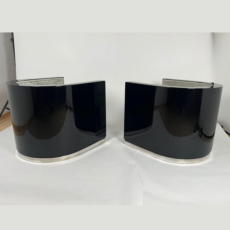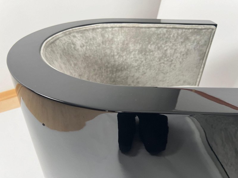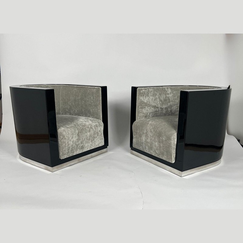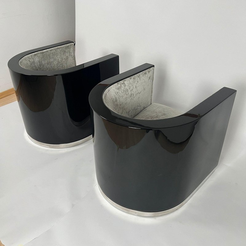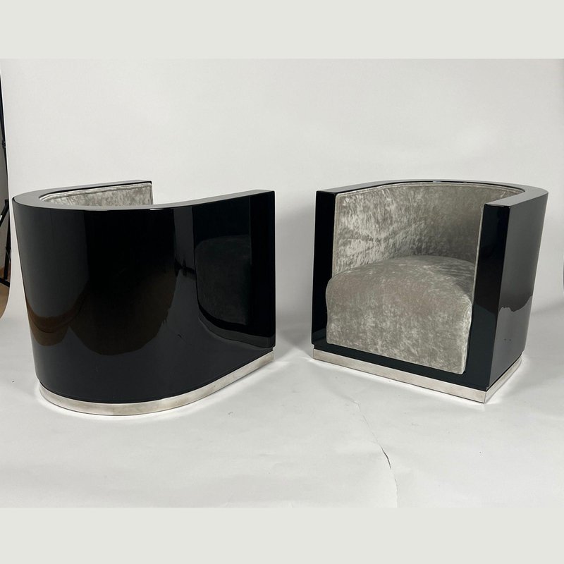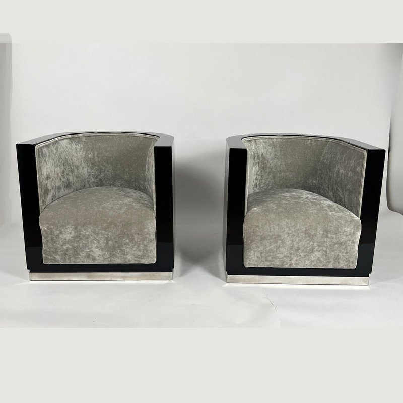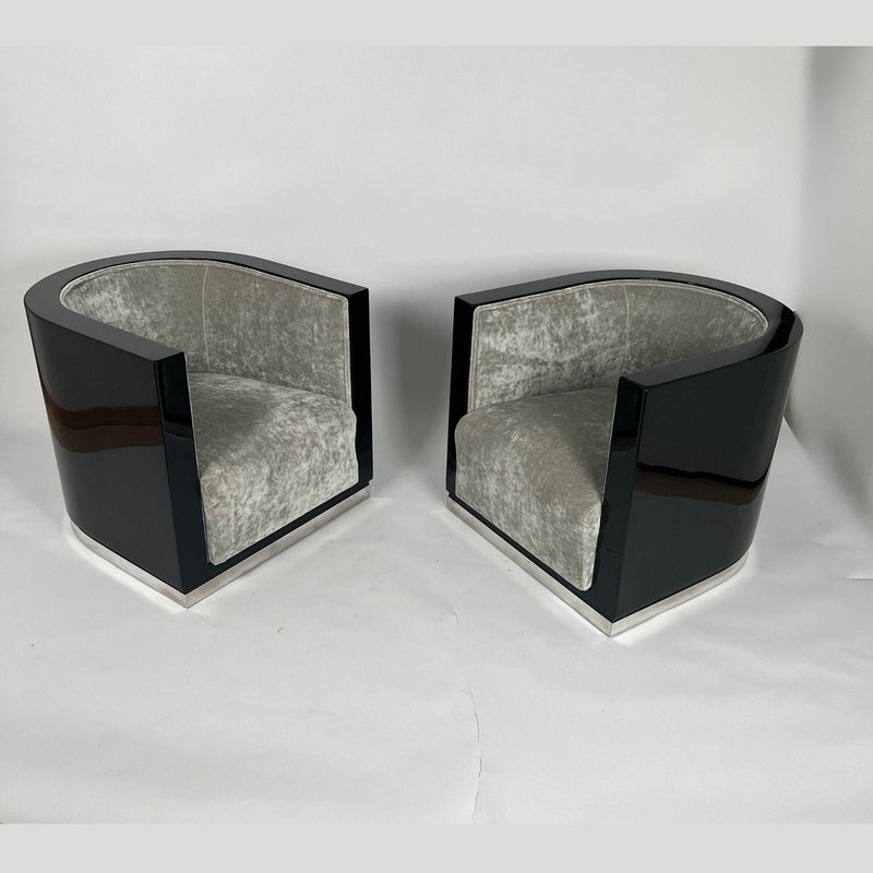 Sedie Art Deco laccate nere e velluto grigio, Francia, anni '30, set di 2