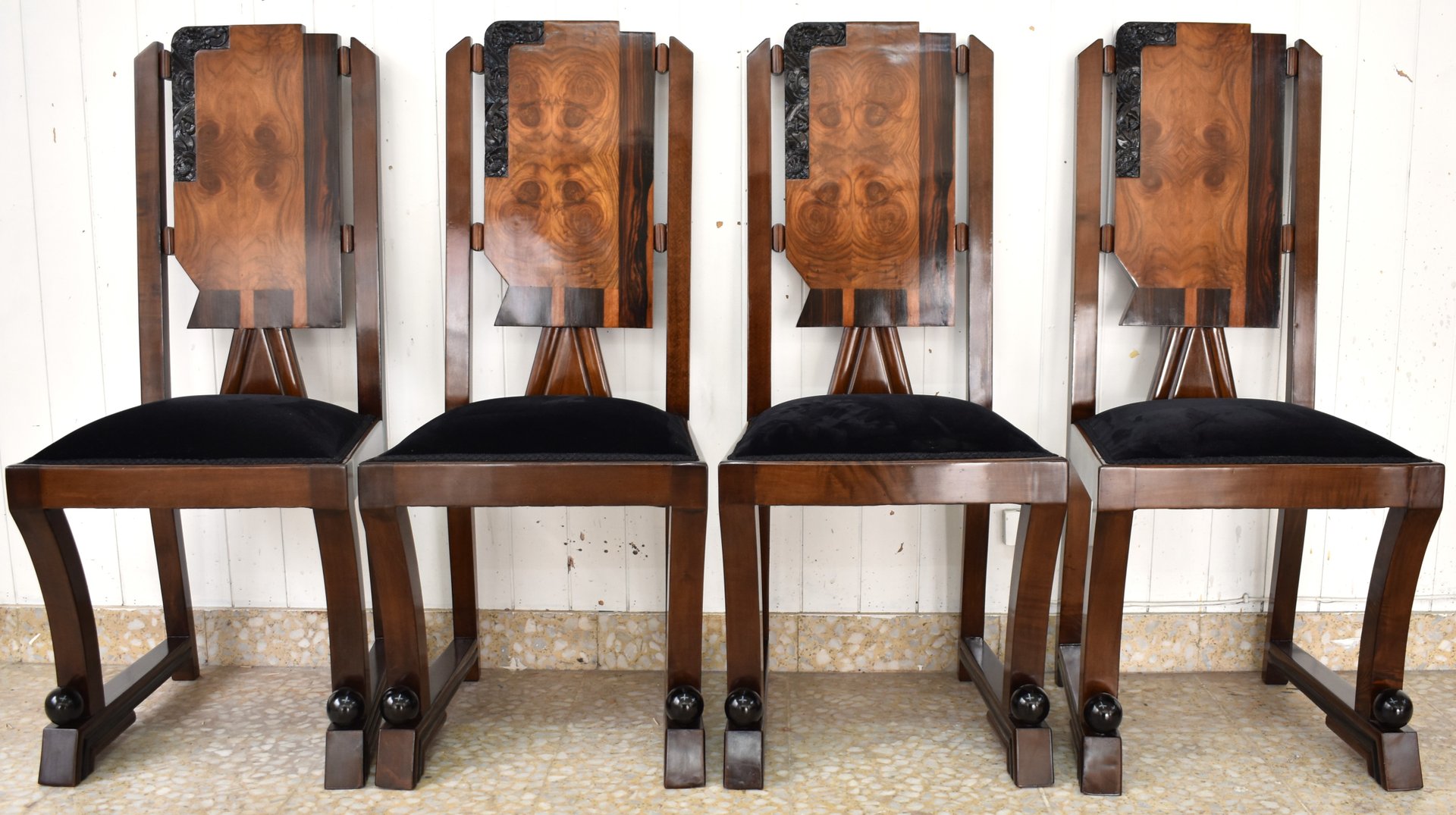 Sedie Art Déco vintage, set di 4