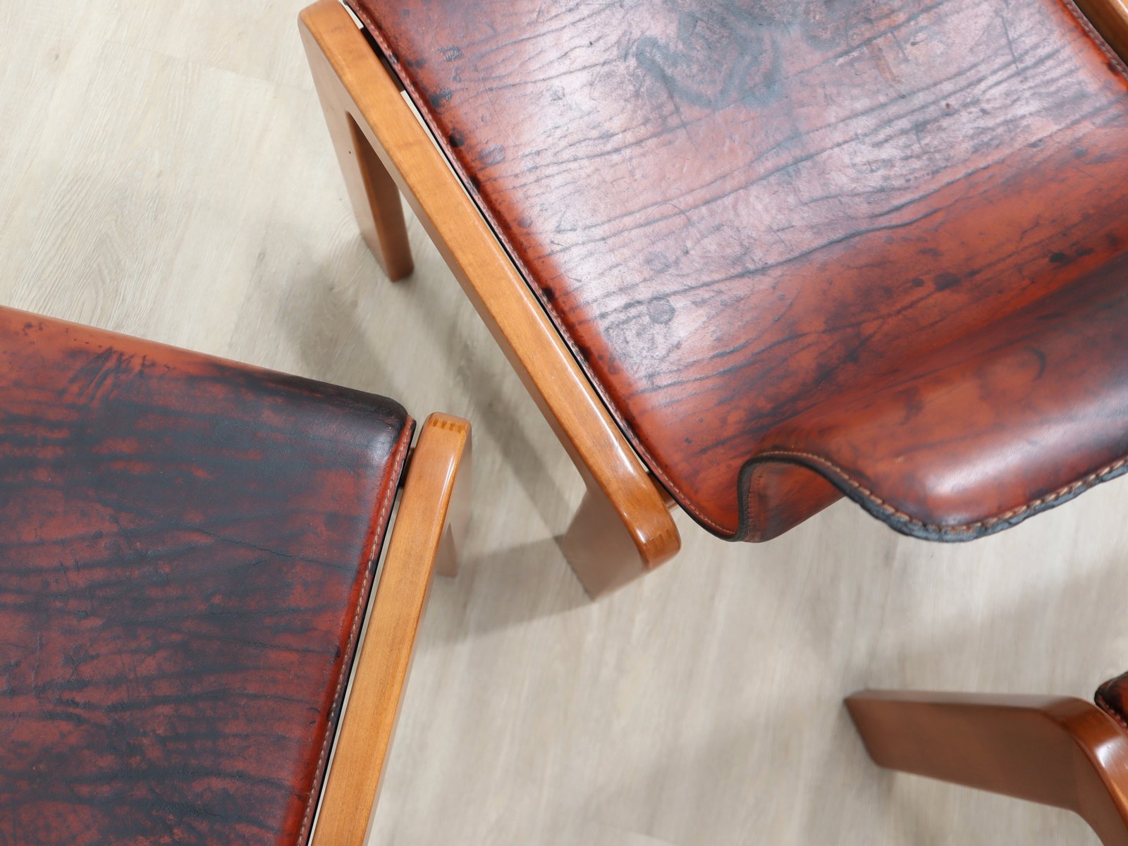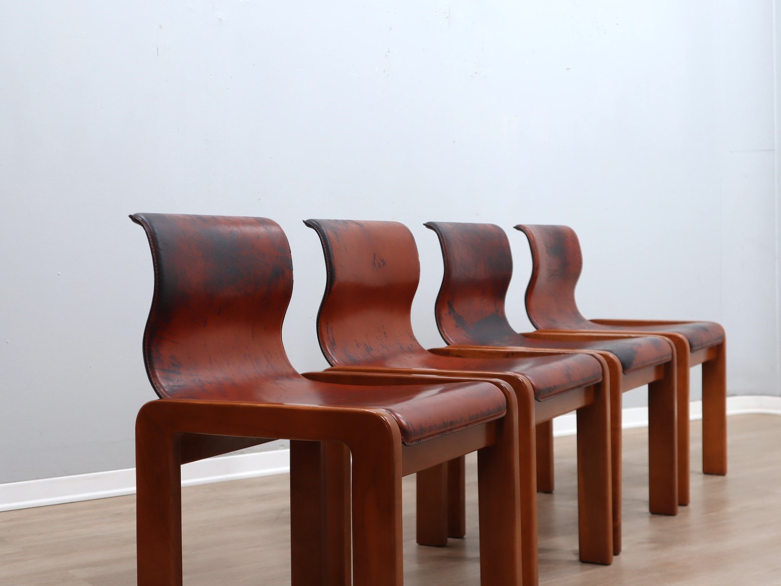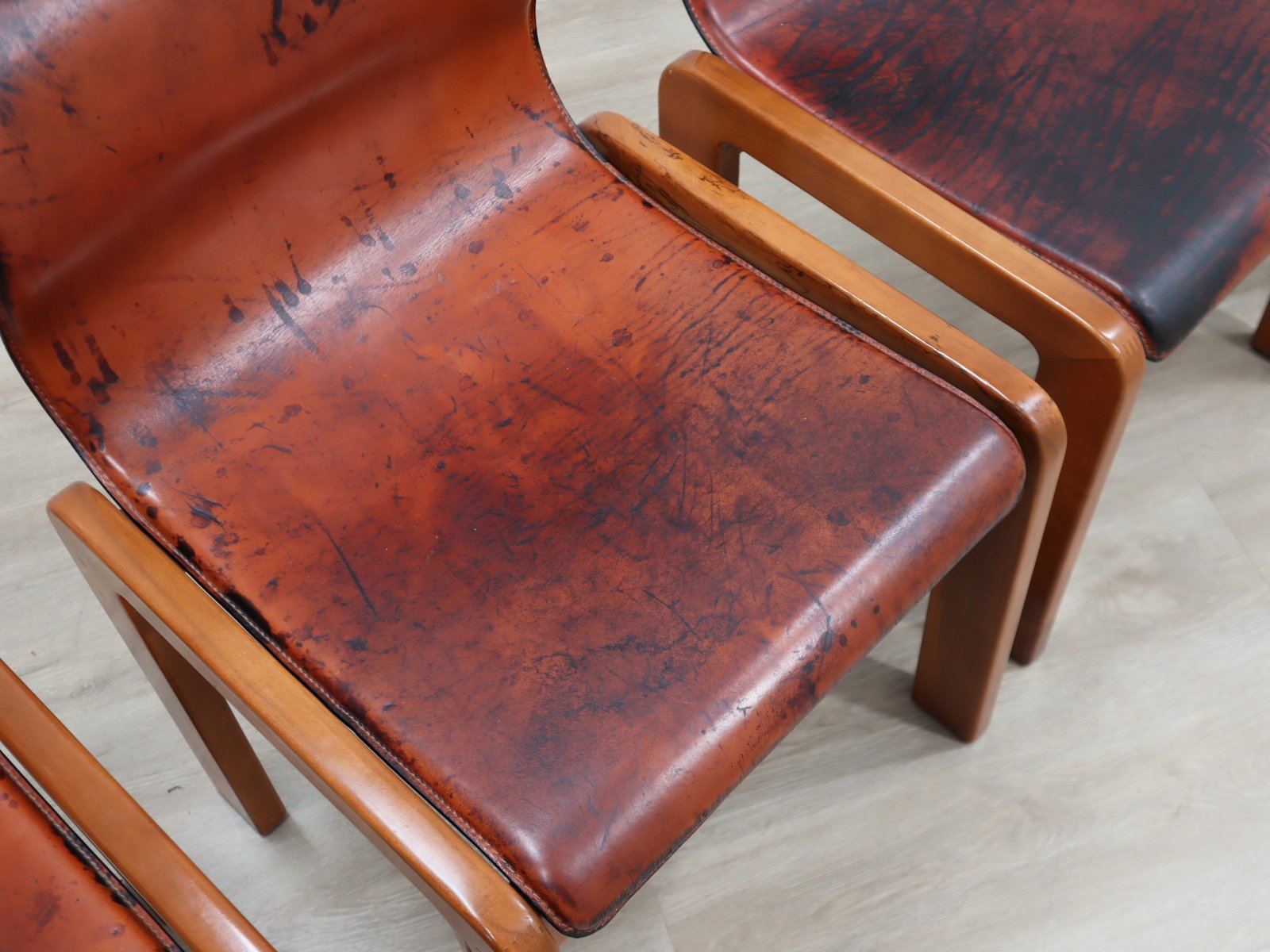 Sedie curve in legno e pelle di Afra & Tobia Scarpa, anni '70, set di 4