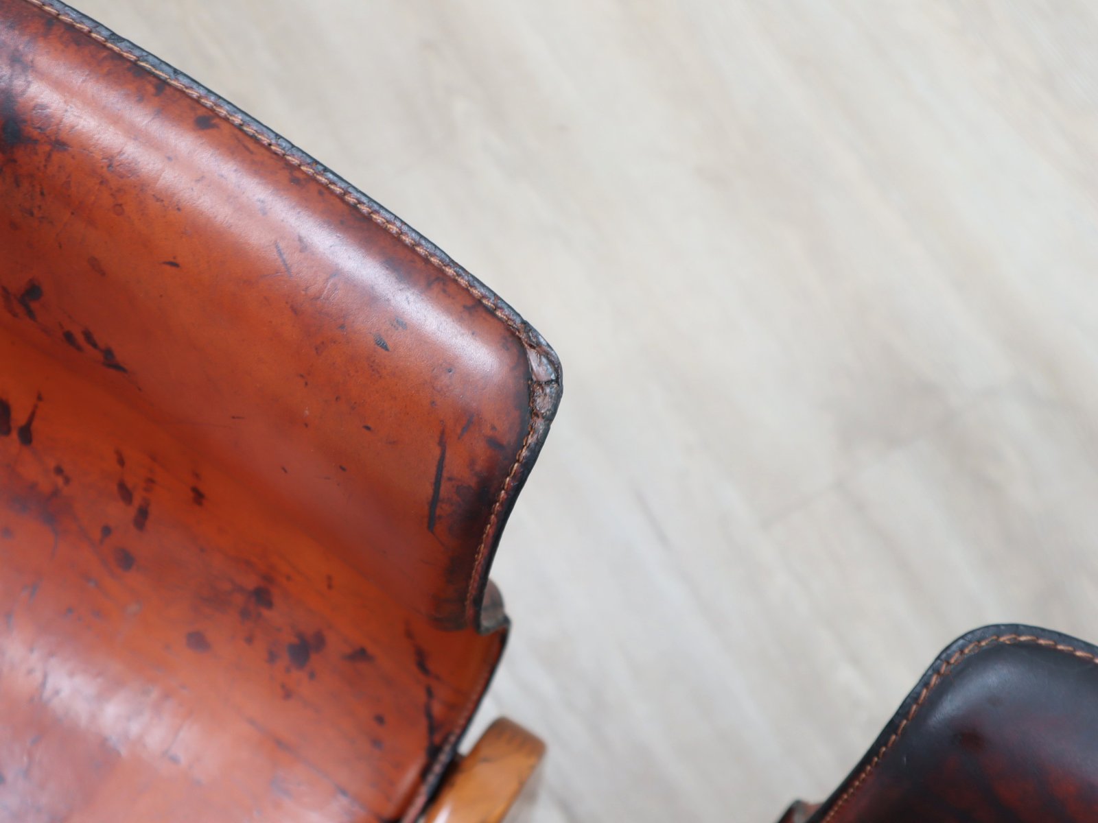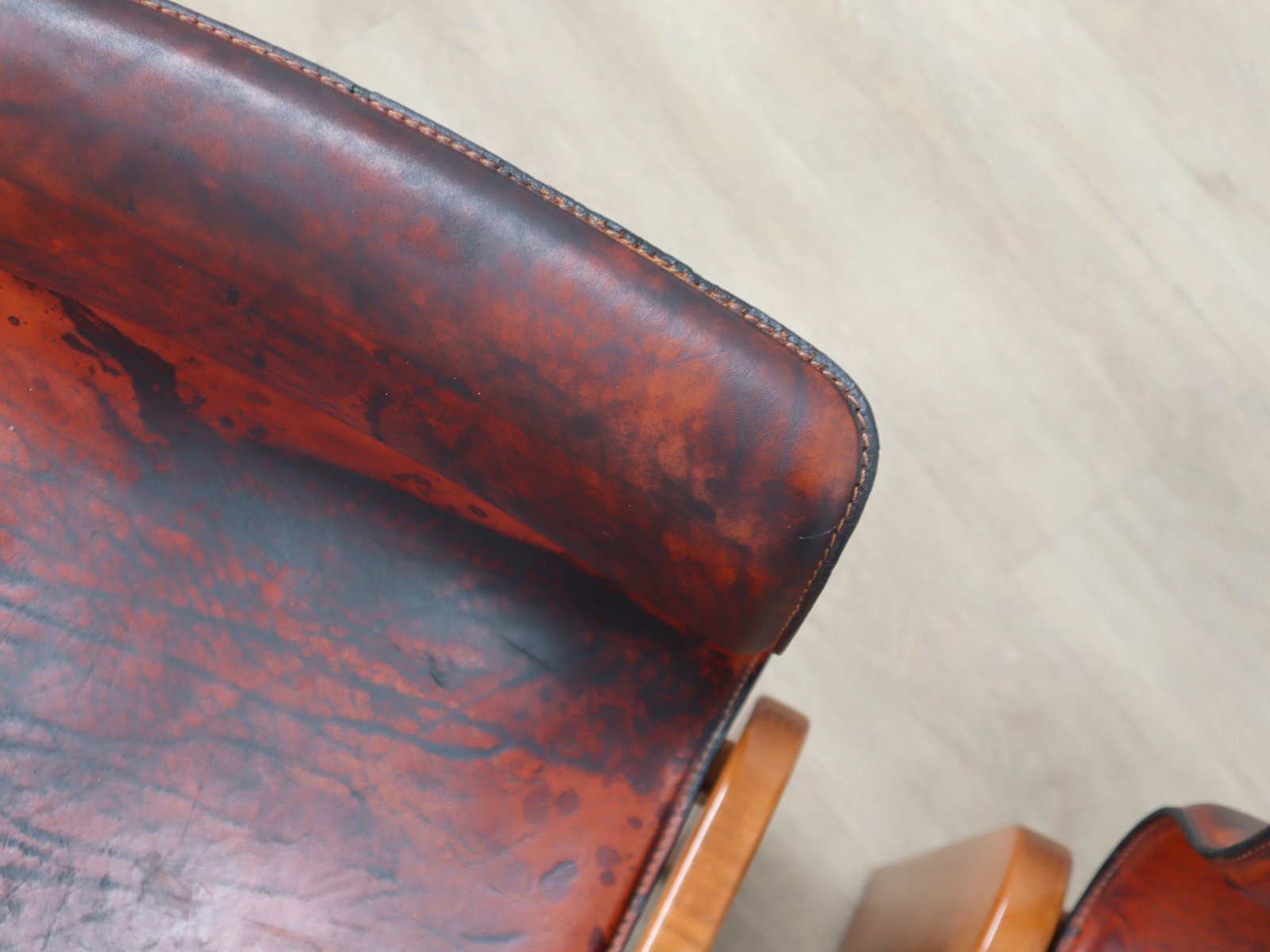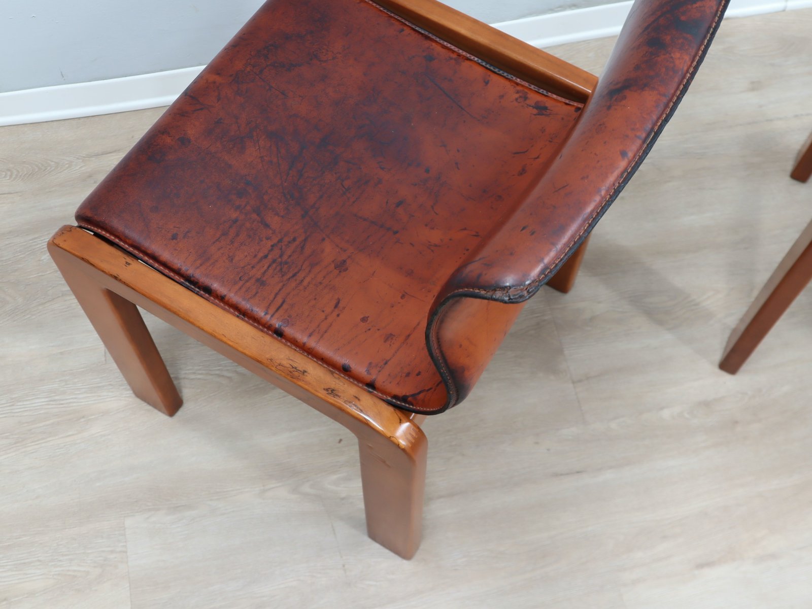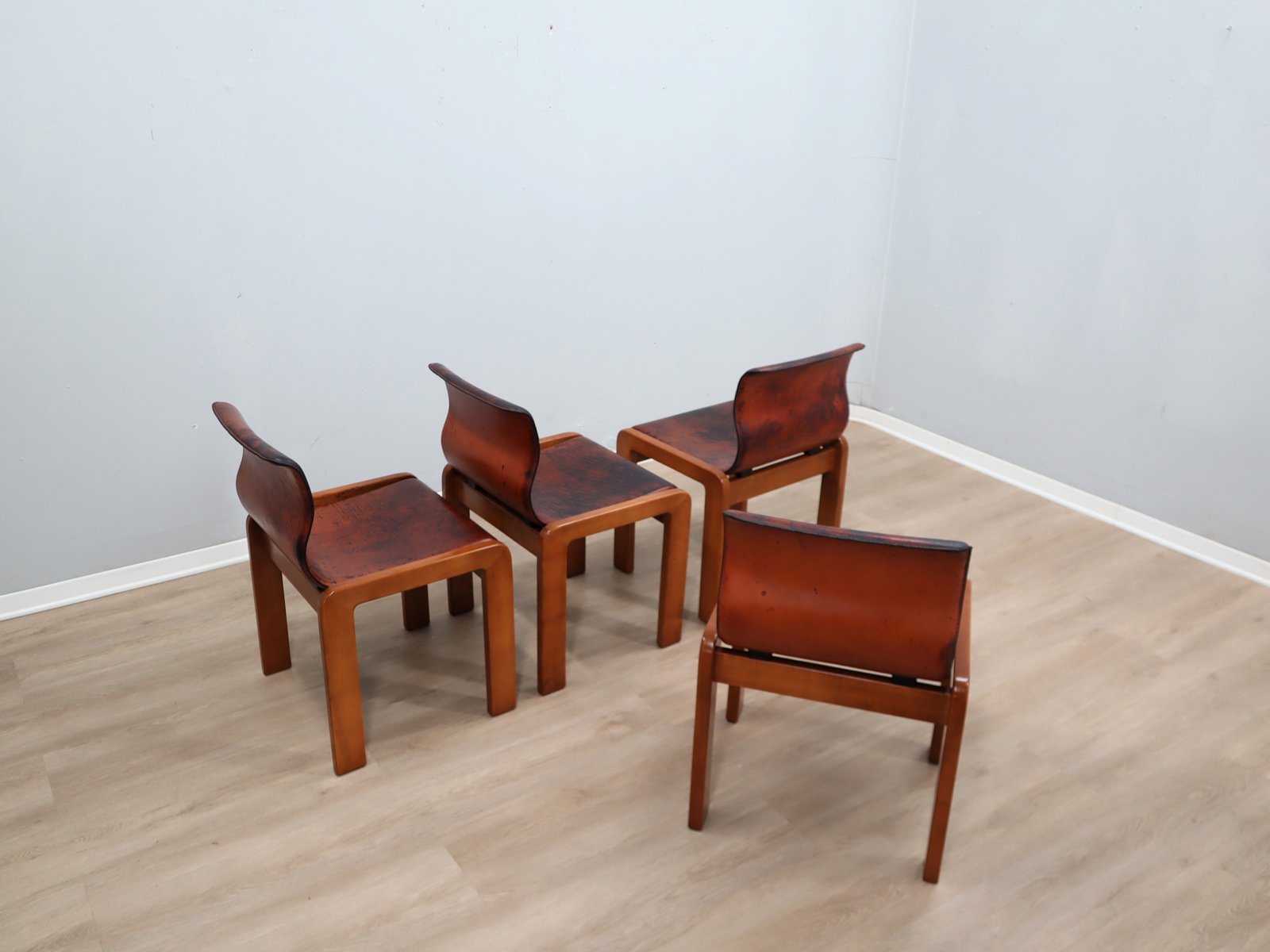 Sedie curve in legno e pelle di Afra & Tobia Scarpa, anni '70, set di 4