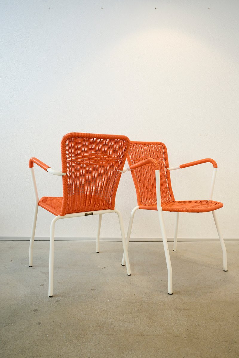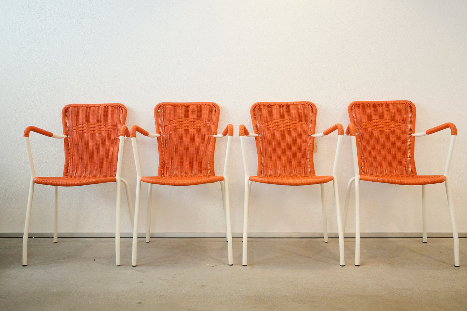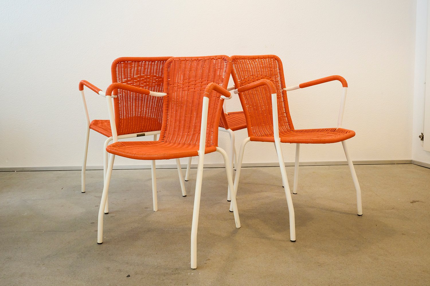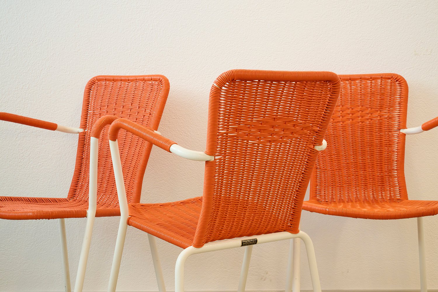 Sedie da giardino in metallo e plastica intrecciata di Metalmobil, Italia, anni '60, set di 6