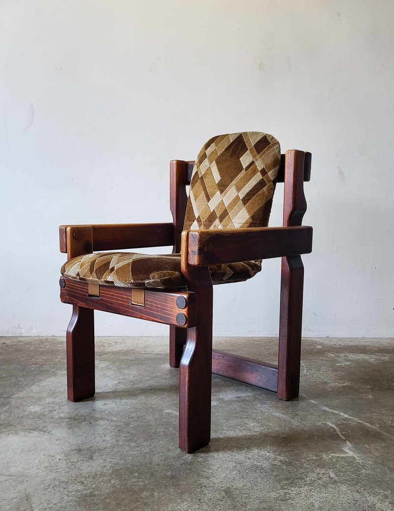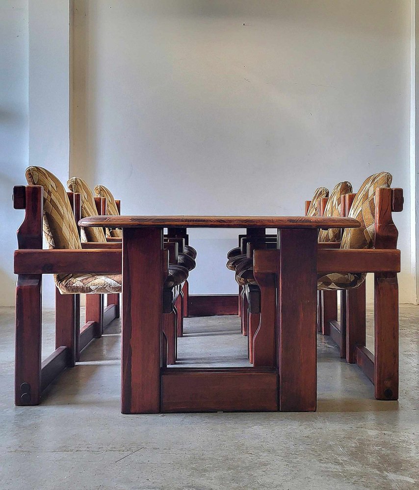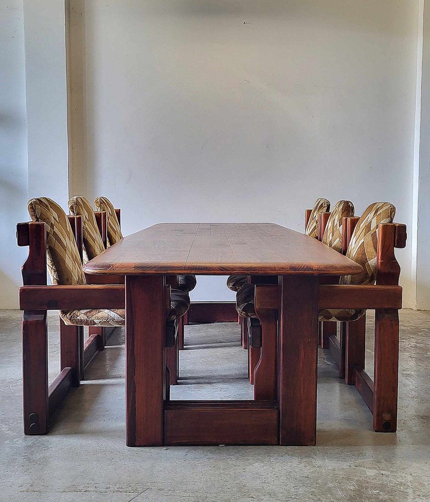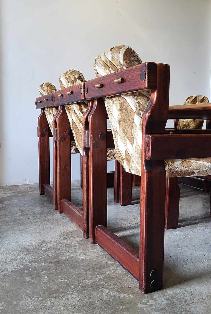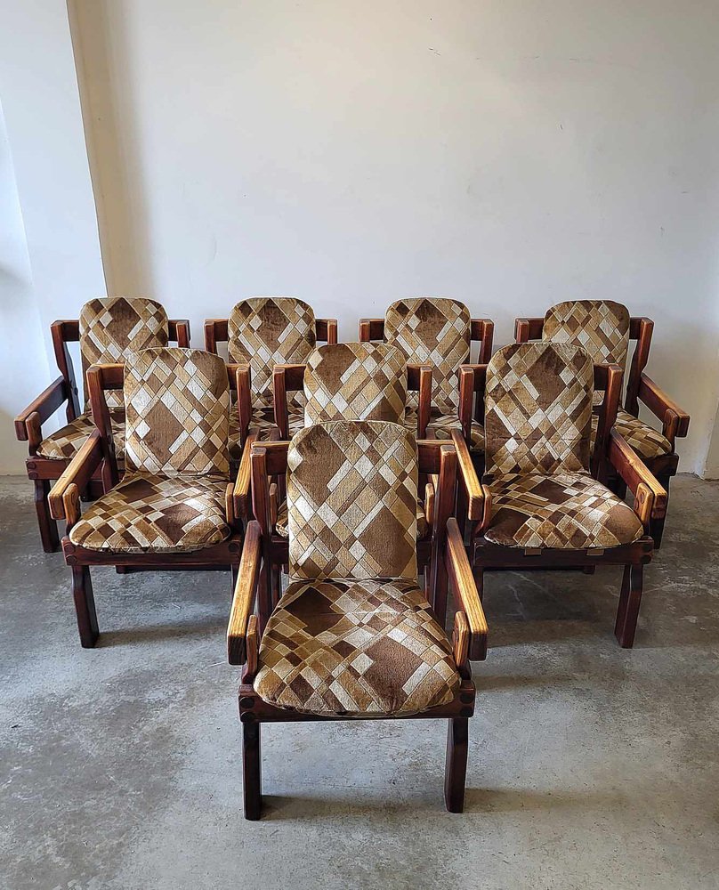 Sedie da pranzo brutalisti in legno, anni '70, set di 9