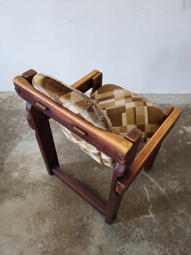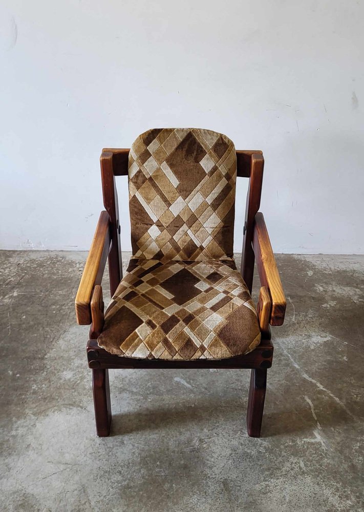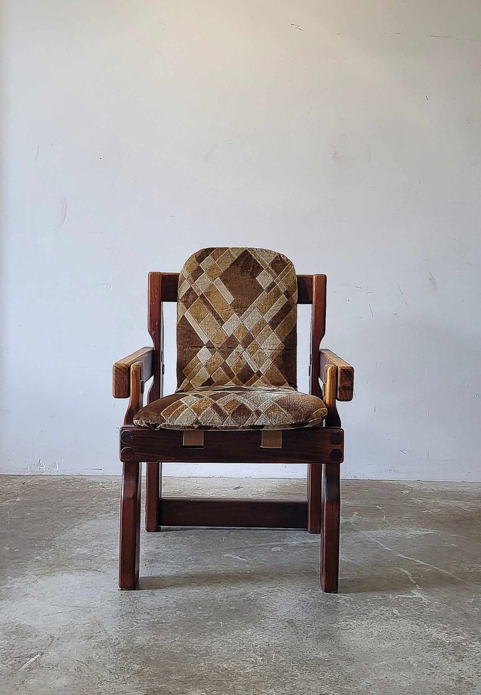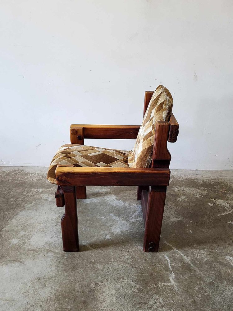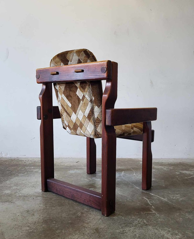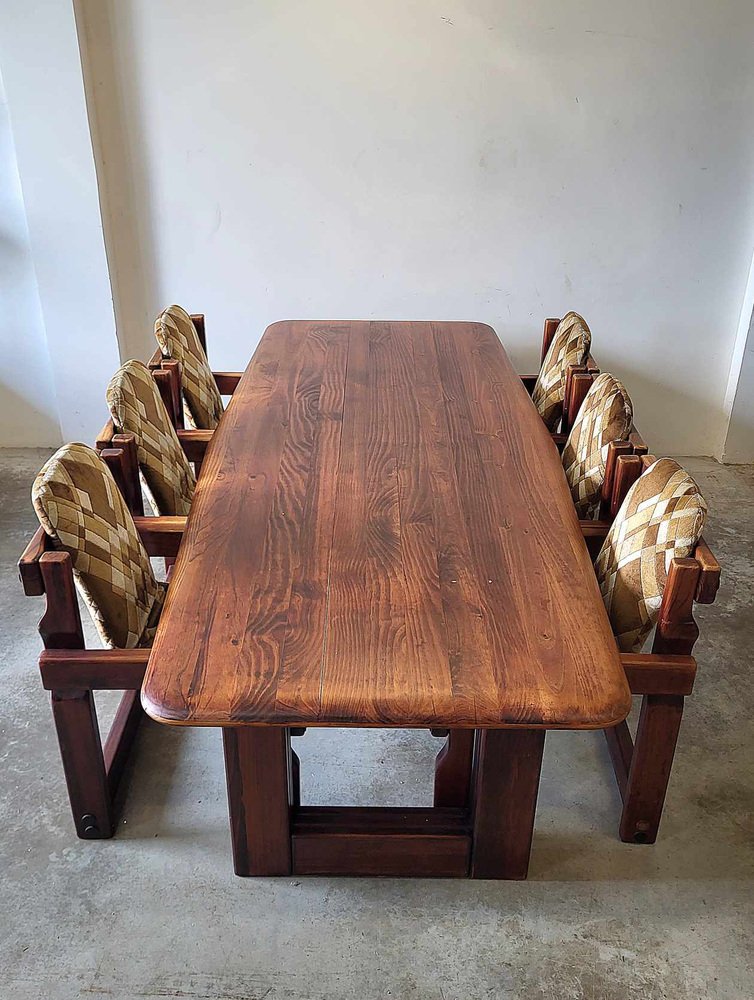 Sedie da pranzo brutalisti in legno, anni '70, set di 9