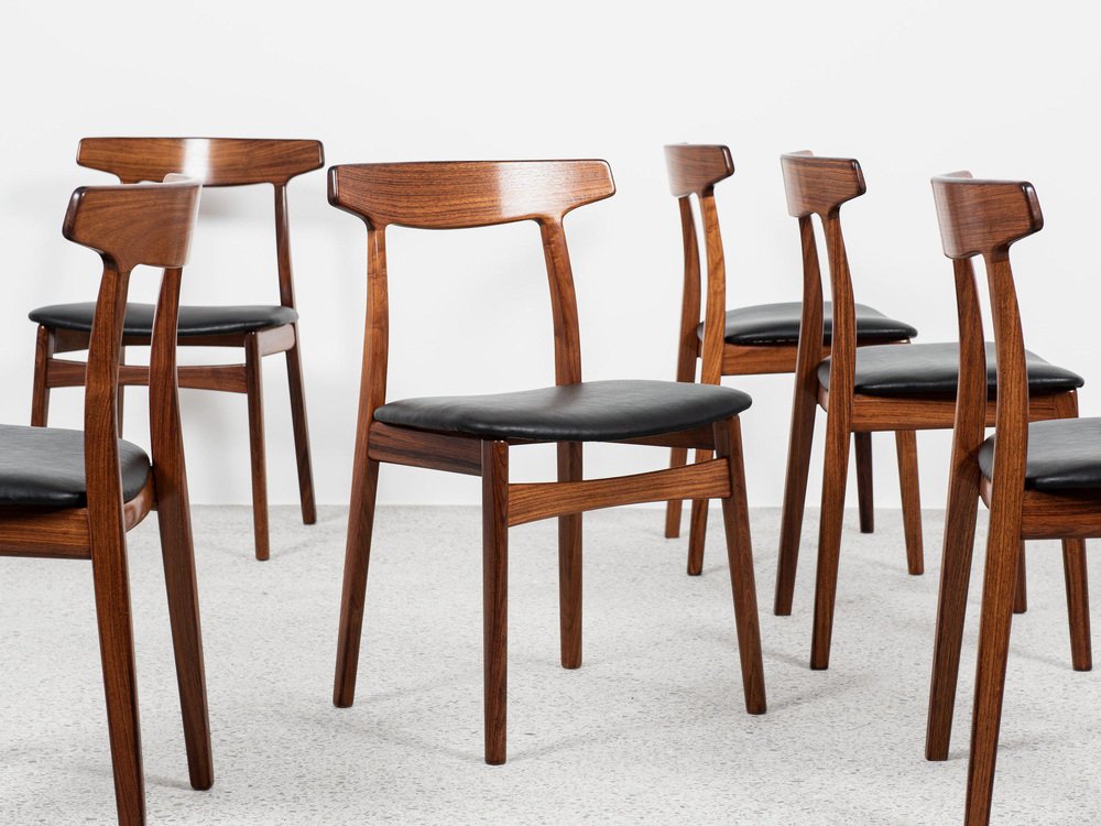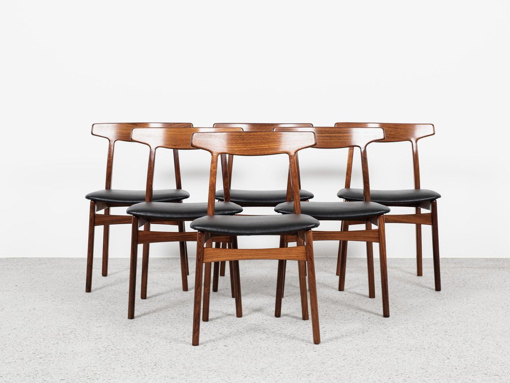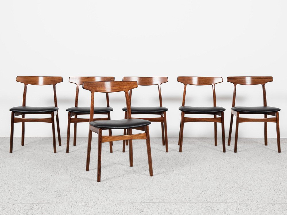 Sedie da pranzo Mid-Century in palissandro di Henning Kjaernulf per Bruno Hansen, Danimarca, anni '60, set di 6