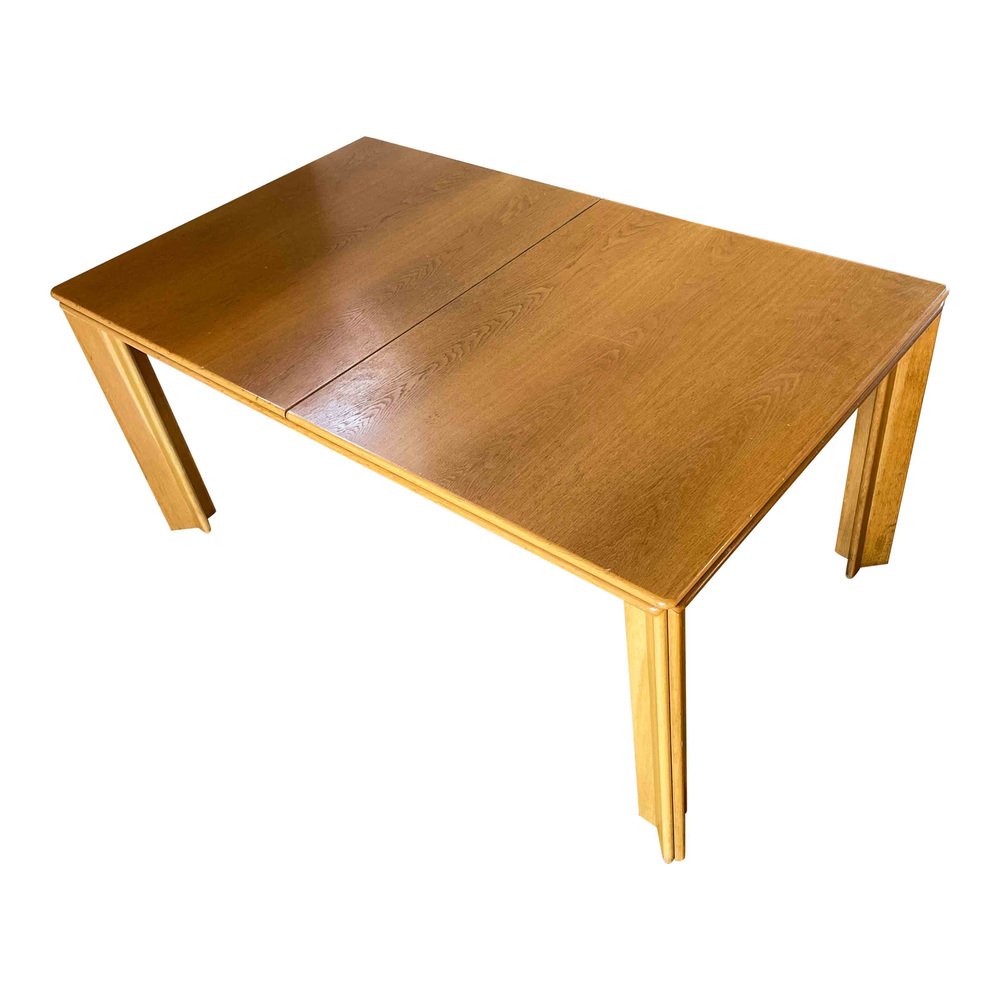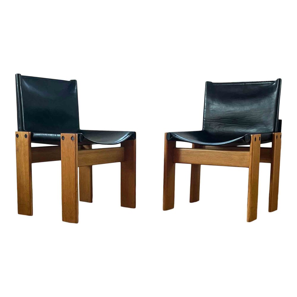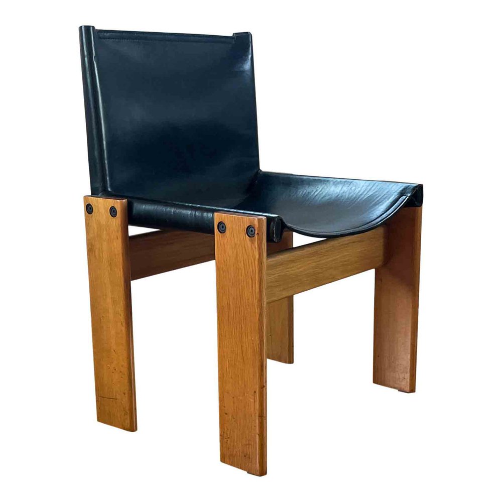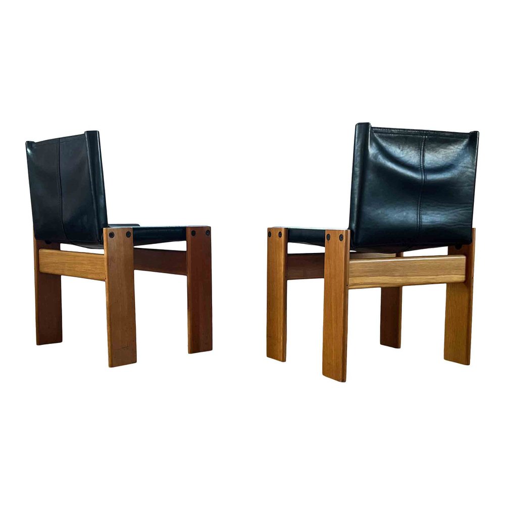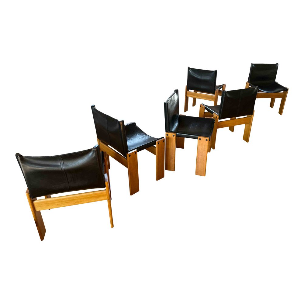 Afra & Tobia Scarpa, 6 sedie da pranzo e tavolo Monk, faggio e pelle nera, Italia, 1973.