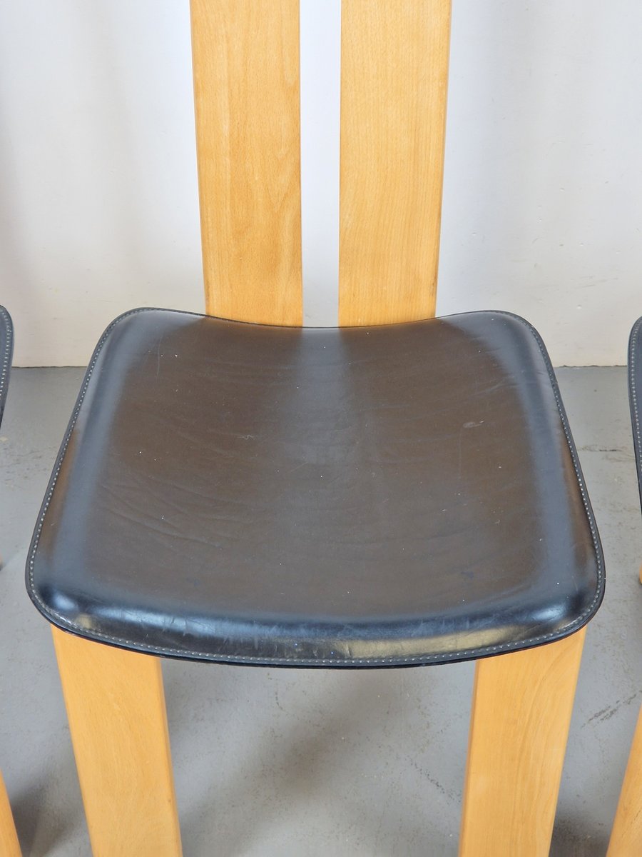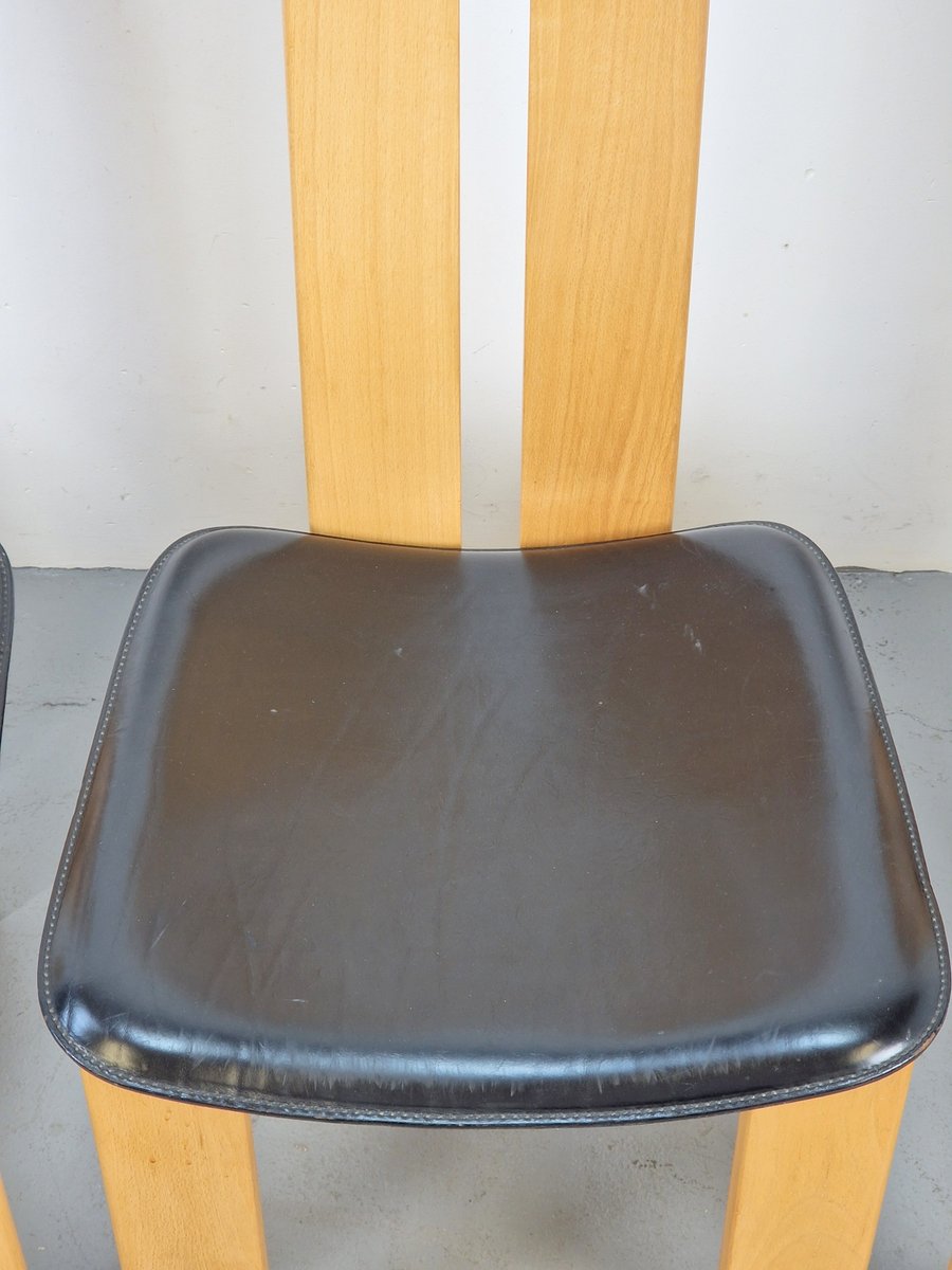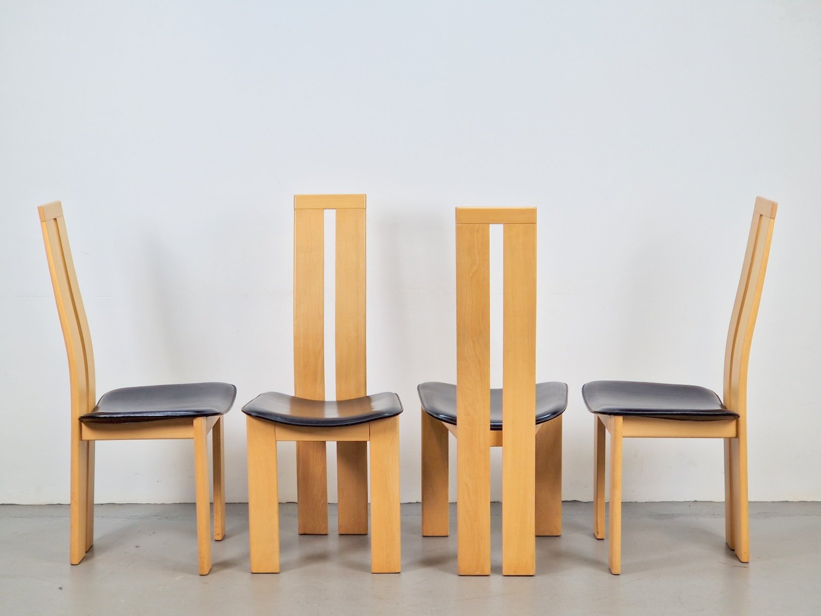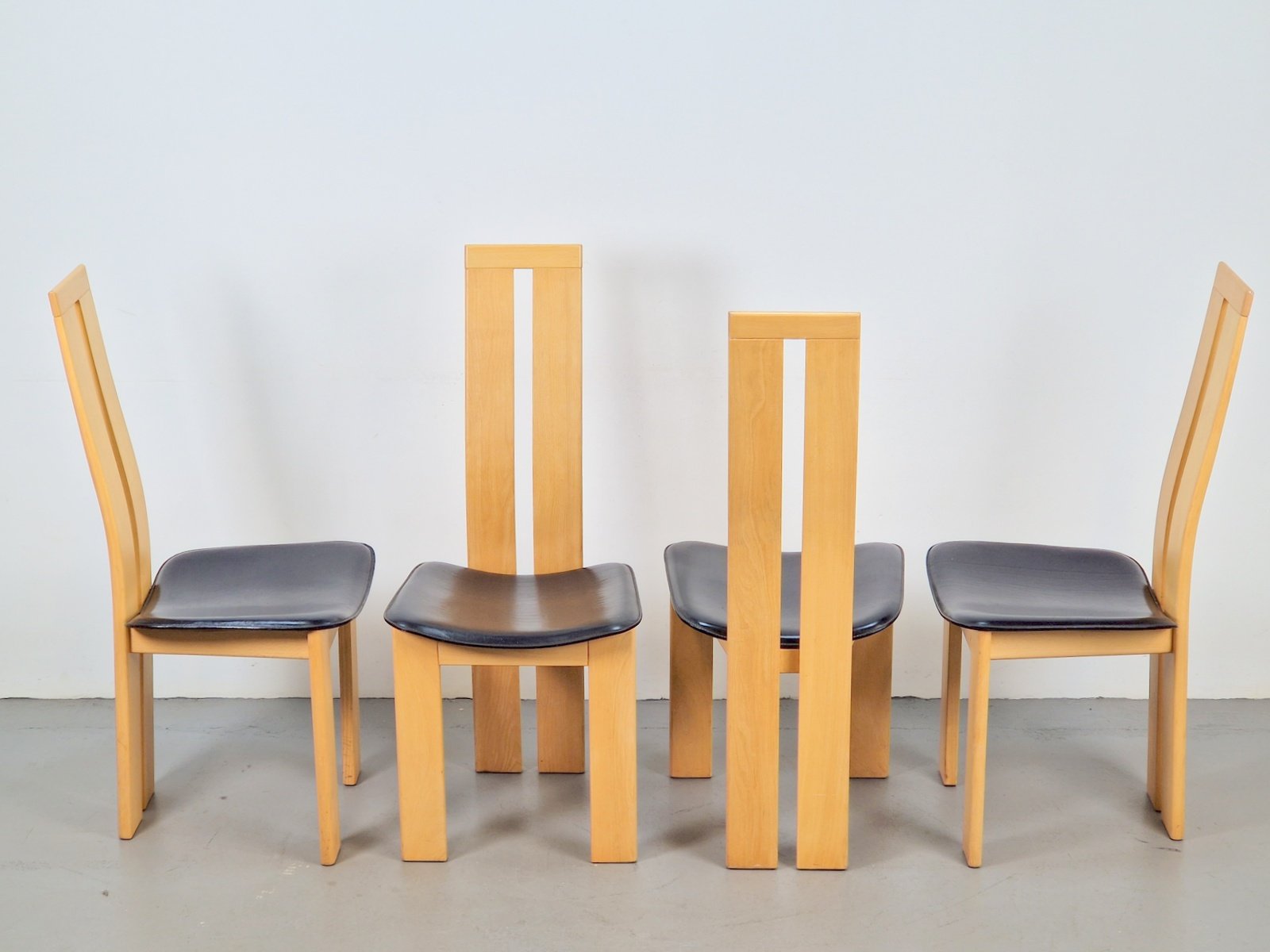 Sedie da pranzo vintage in faggio e pelle di Pietro Costantini per Ello, anni '70, set di 4