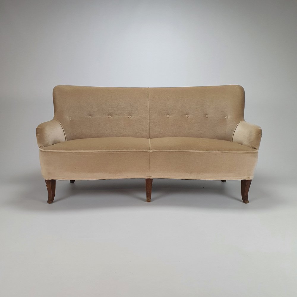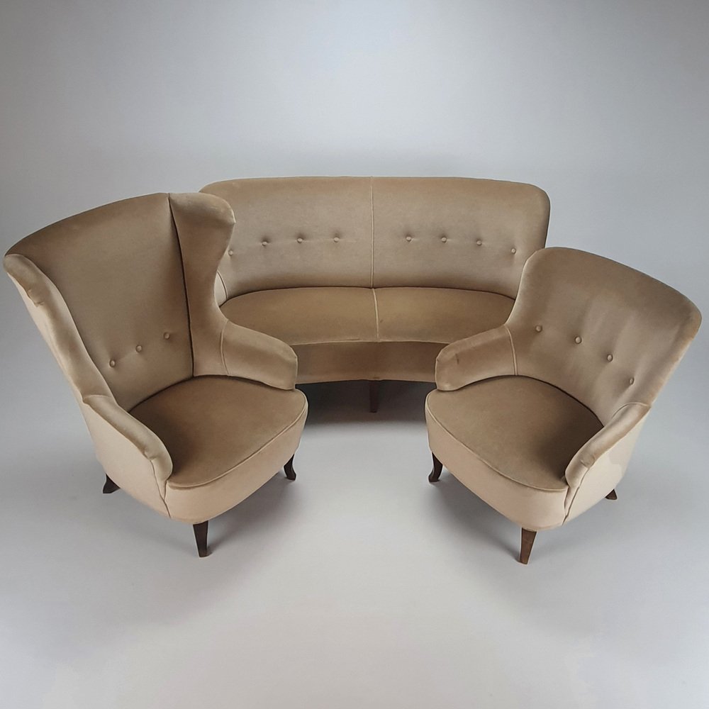 Sedie e divano Mid-Century in velluto, anni '50, set di 3