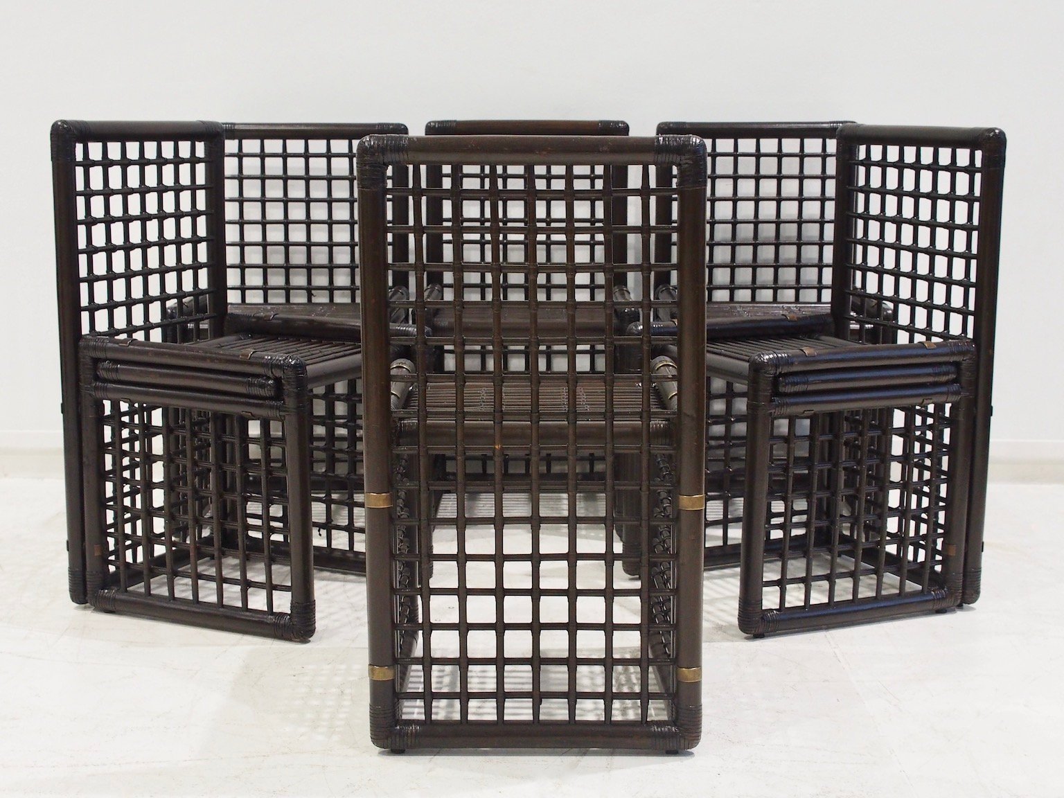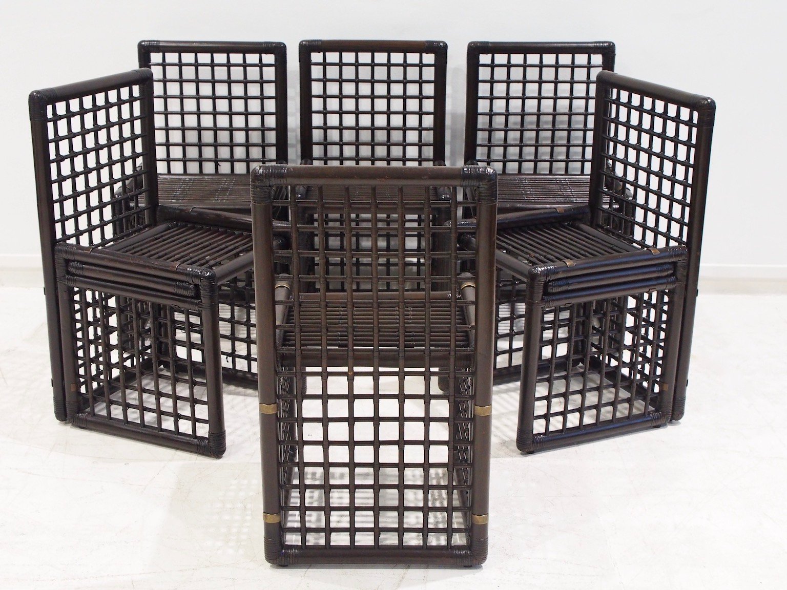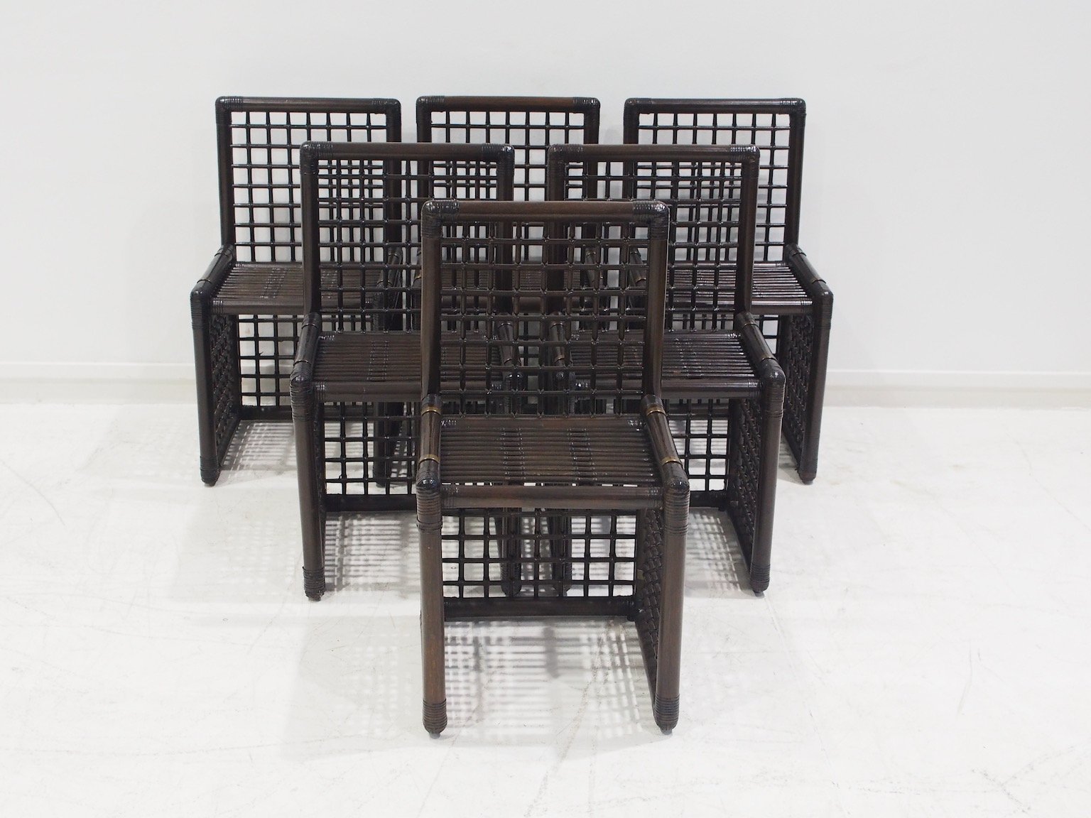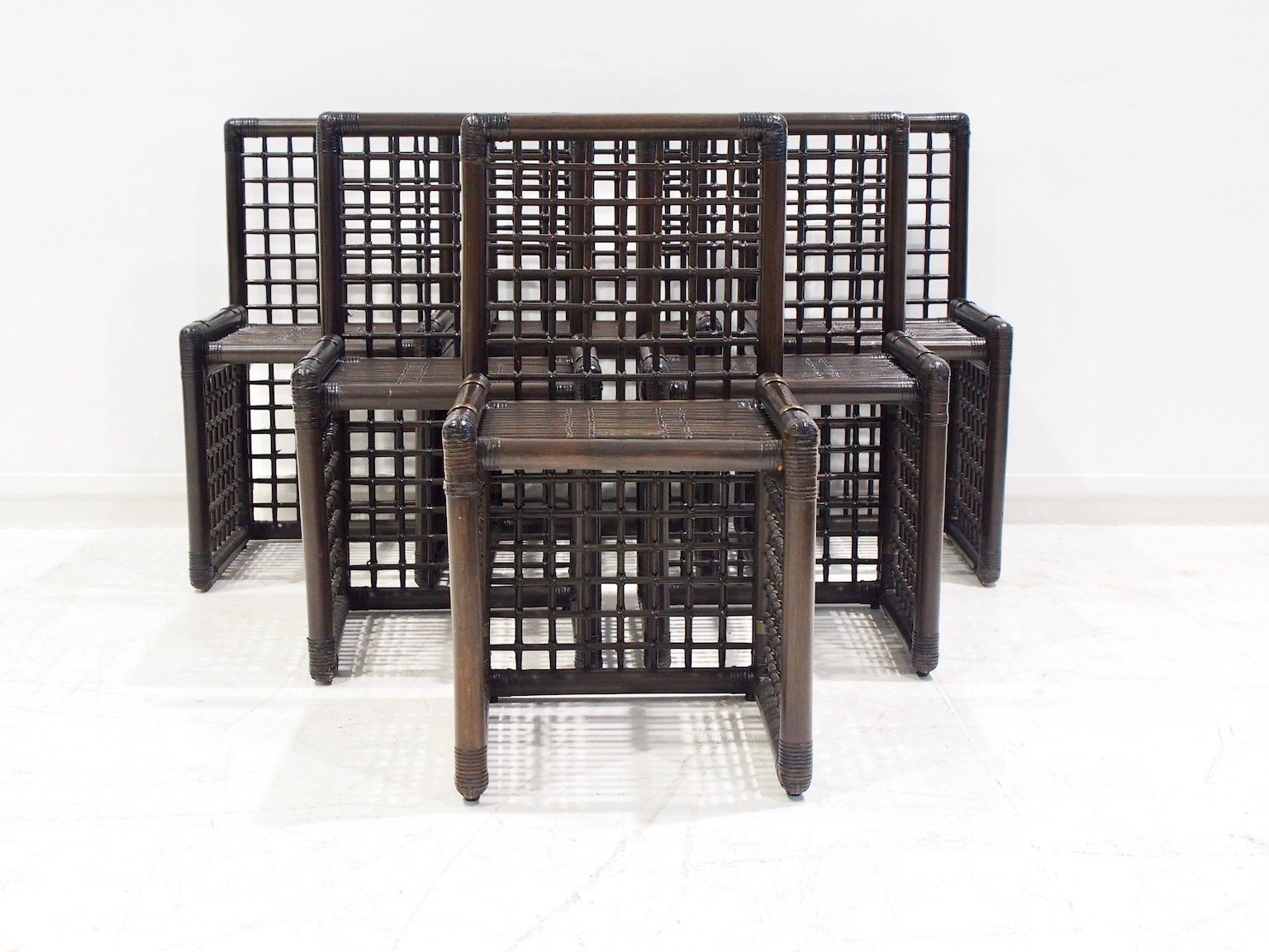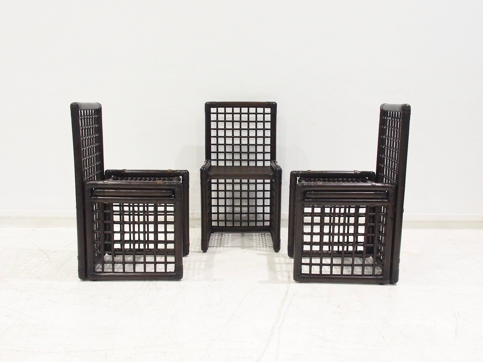 Sedie in bambù e vimini di Afra & Tobia Scarpa per Maxalto, anni '70, set di 6