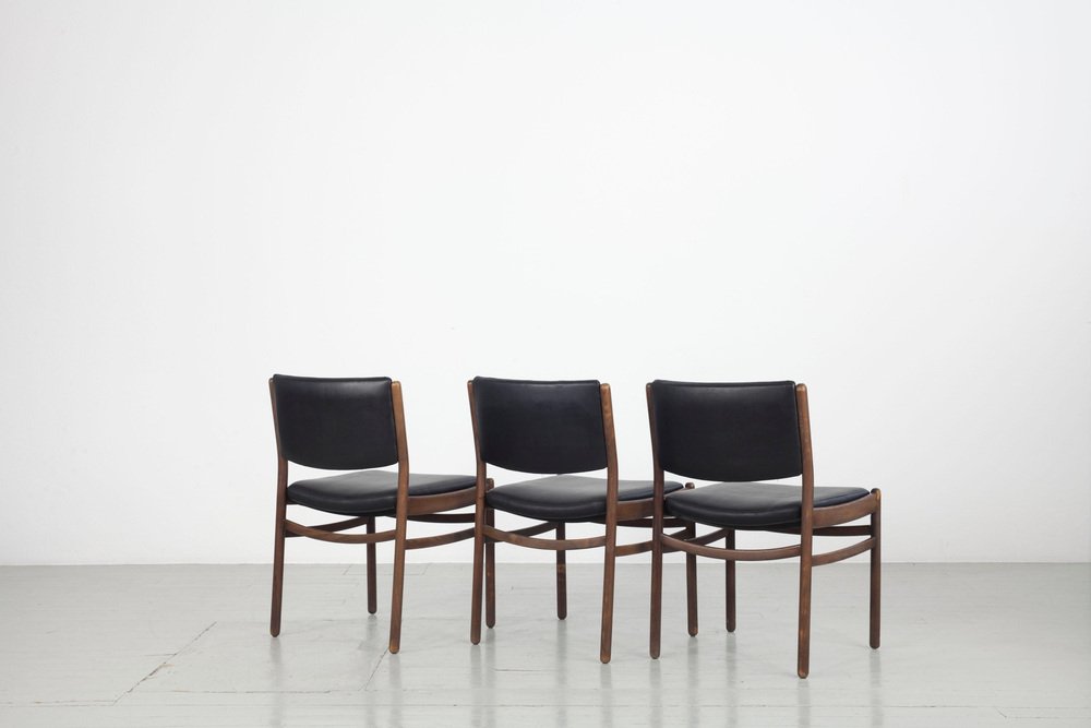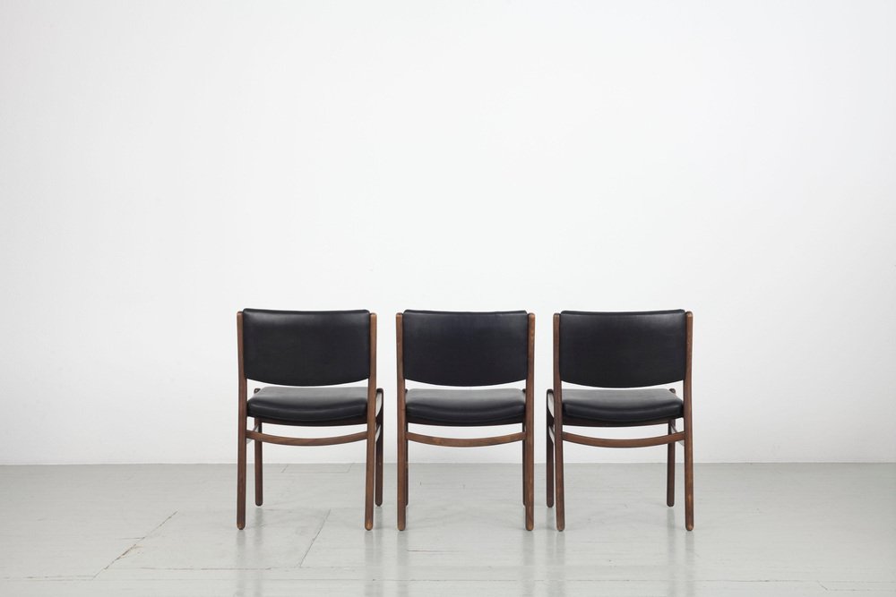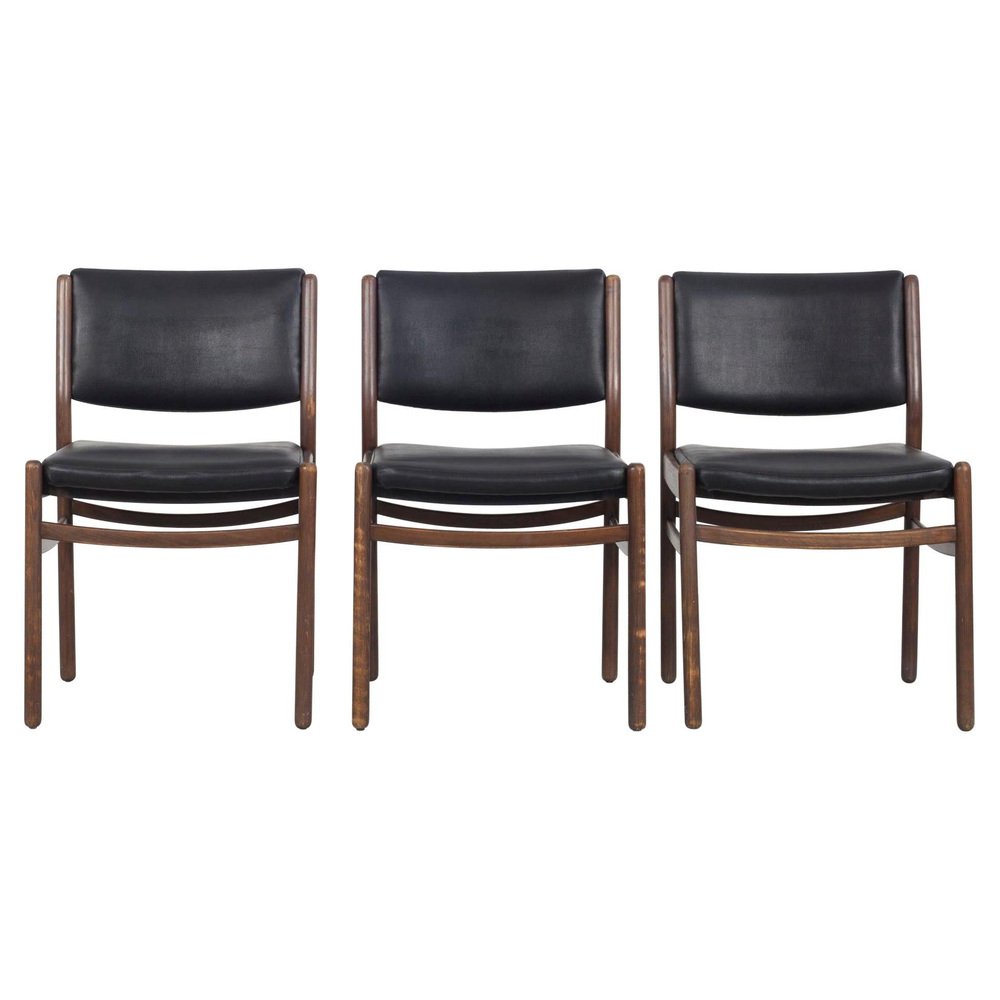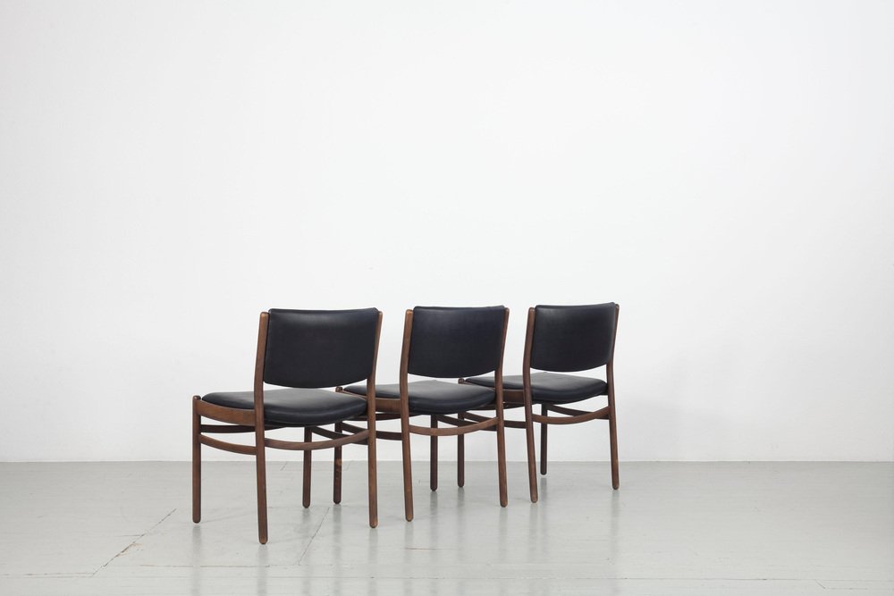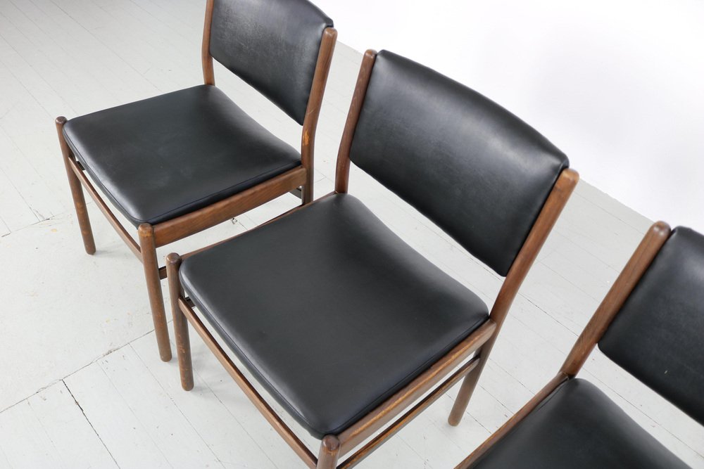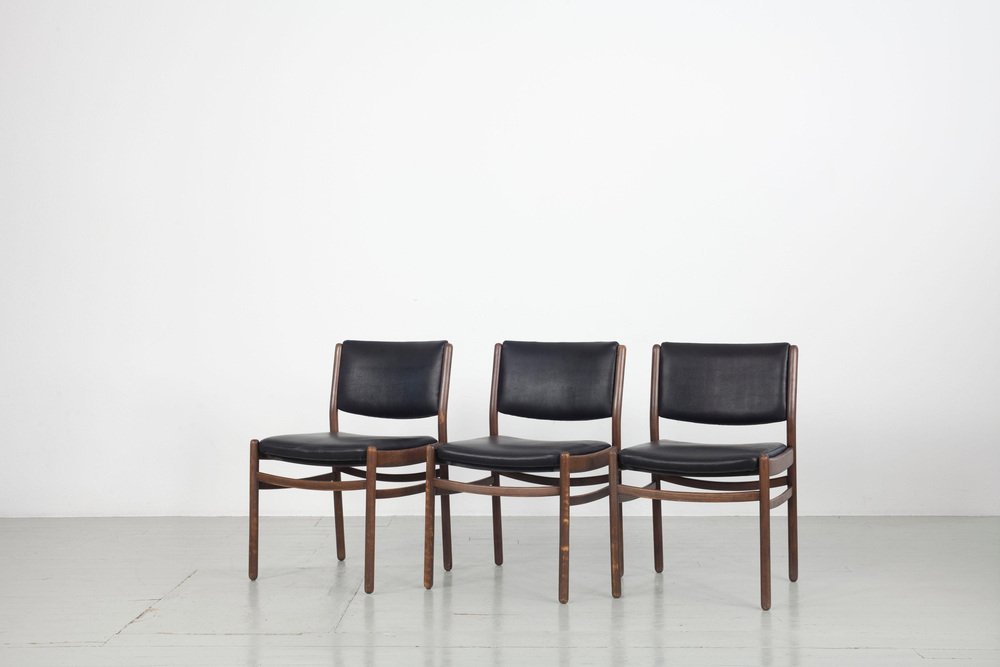 Sedie in legno con rivestimento in similpelle, Italia, anni '60, set di 3