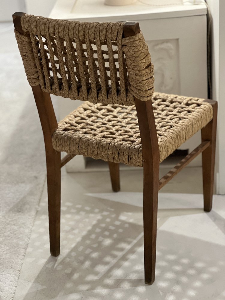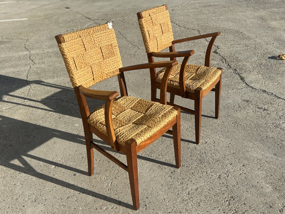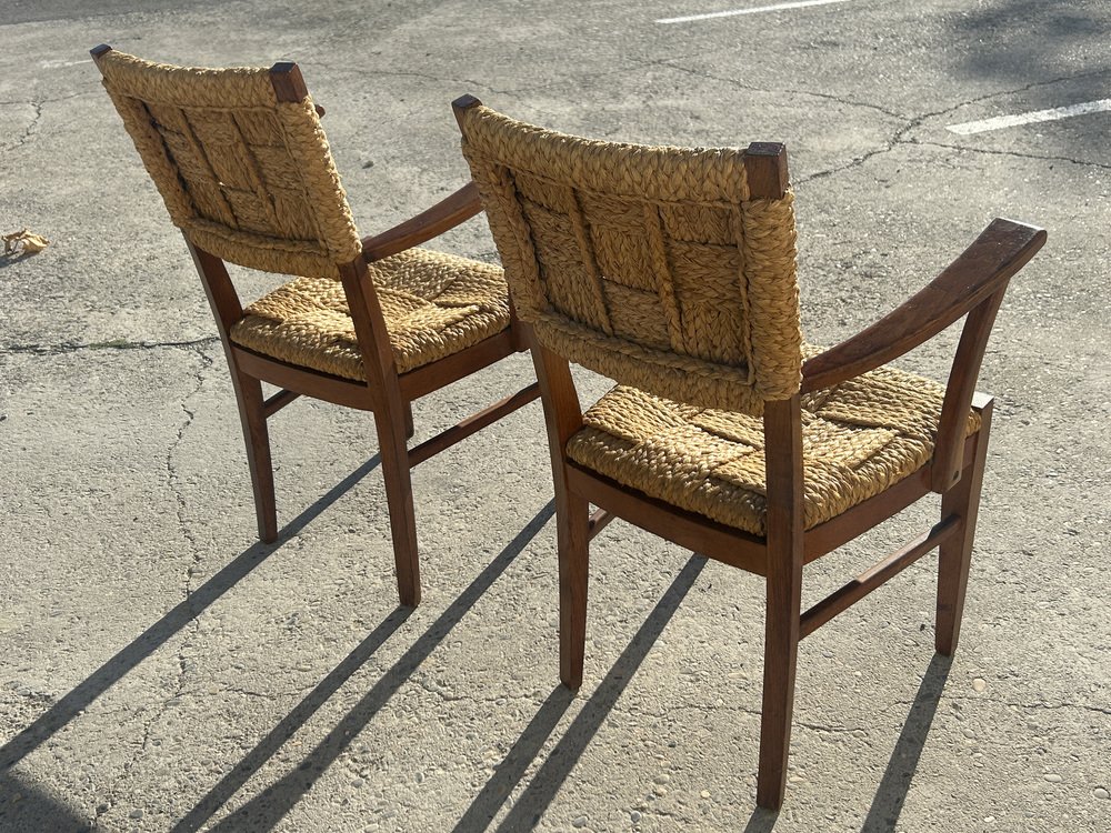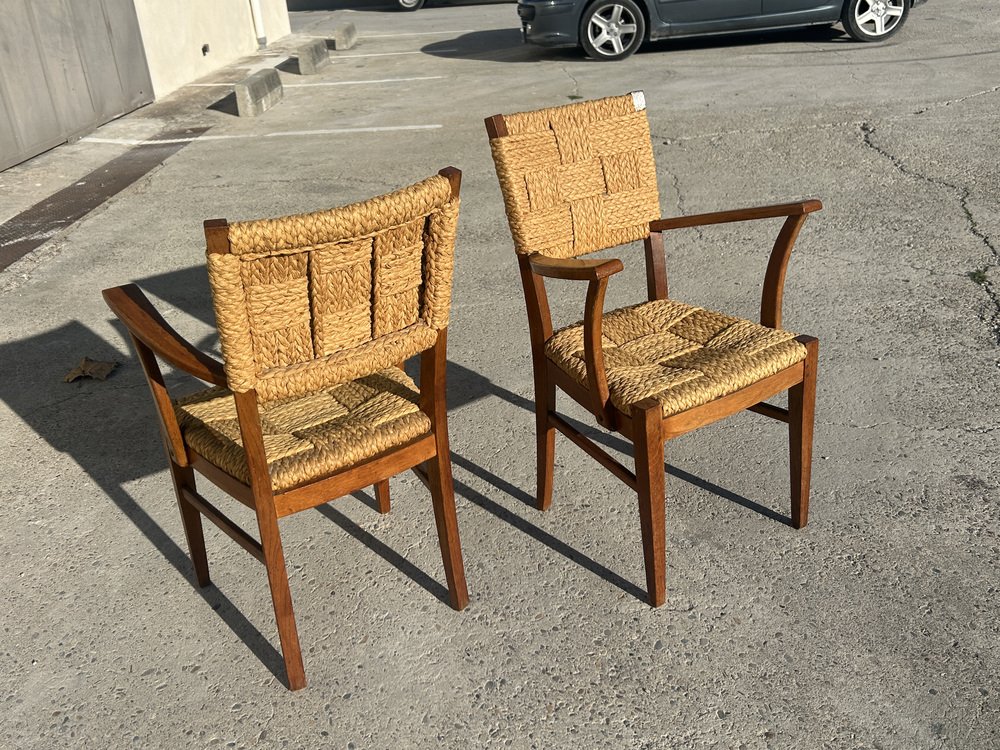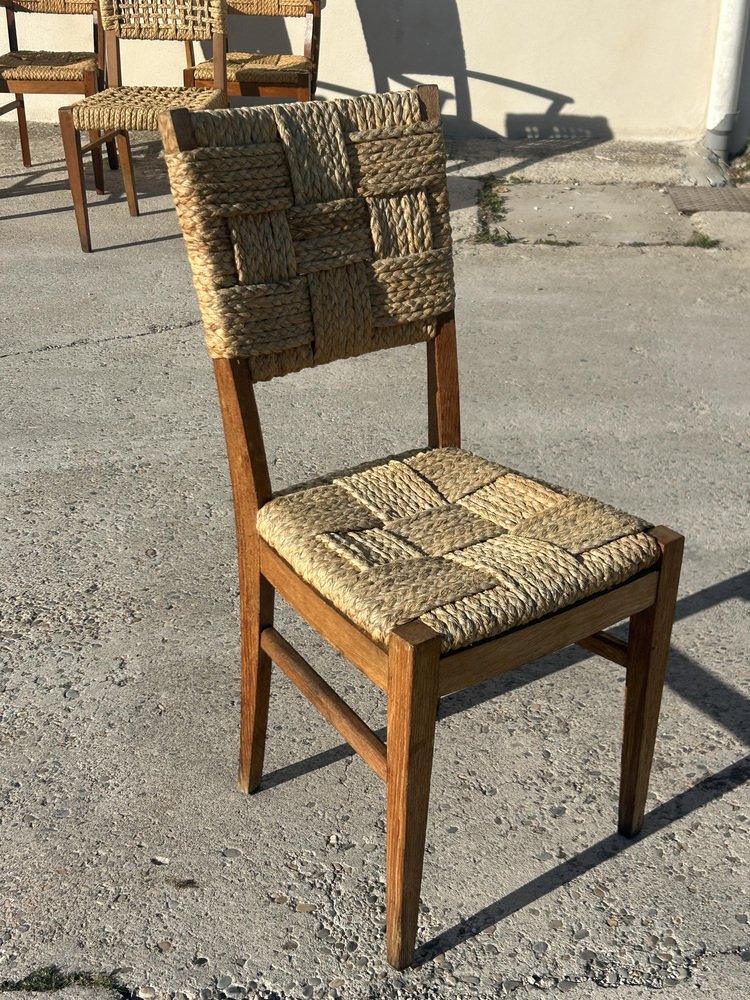 Sedie in rafia intrecciata e faggio di Audoux Minet, anni '50, set di 6