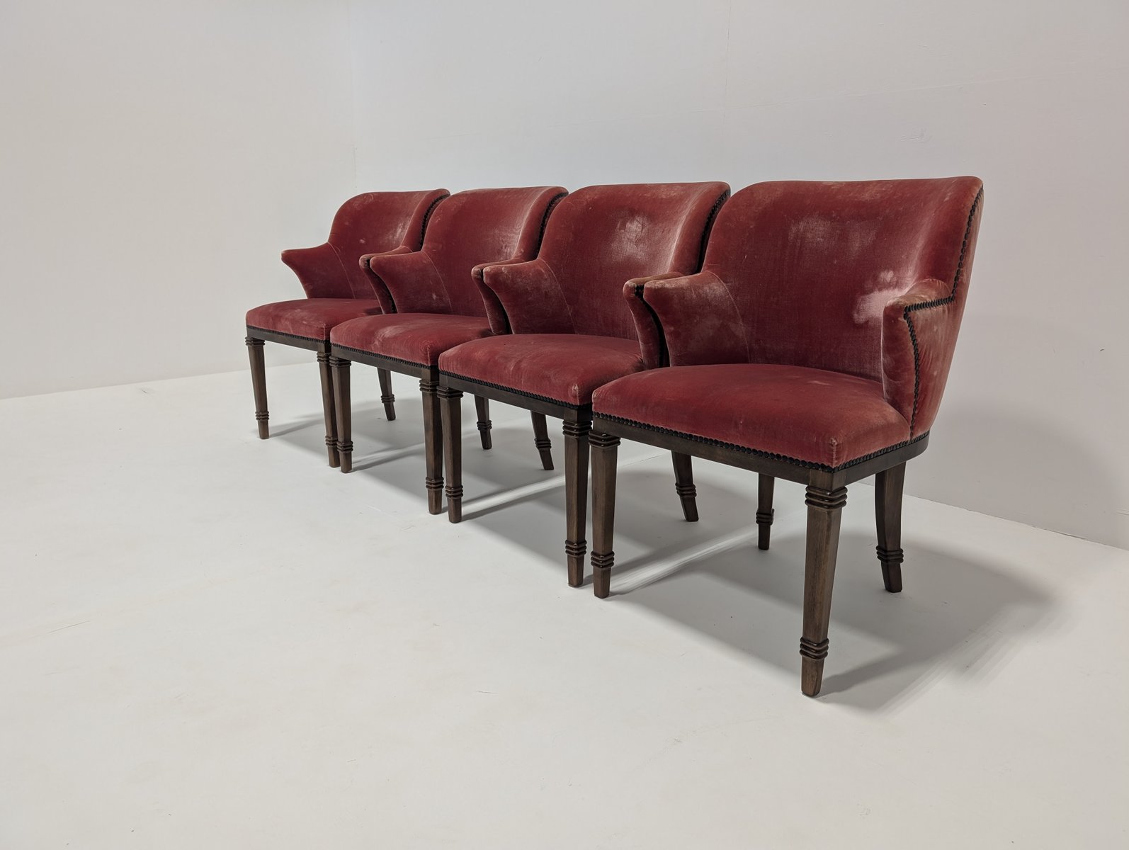 Sedie in velluto corallo di Ben Whistler, set di 4