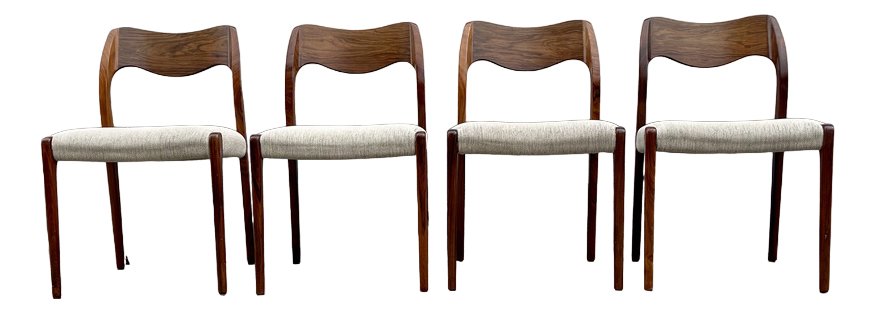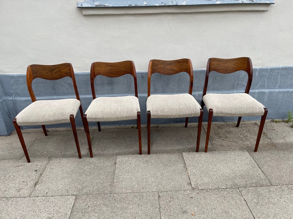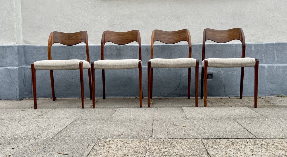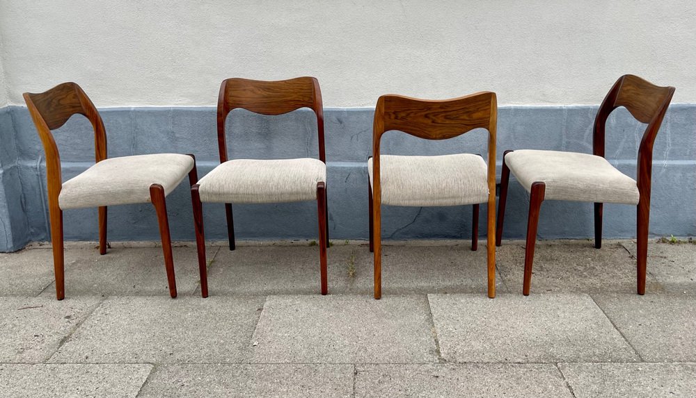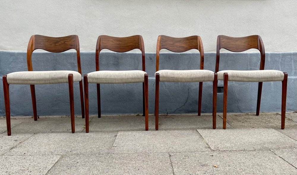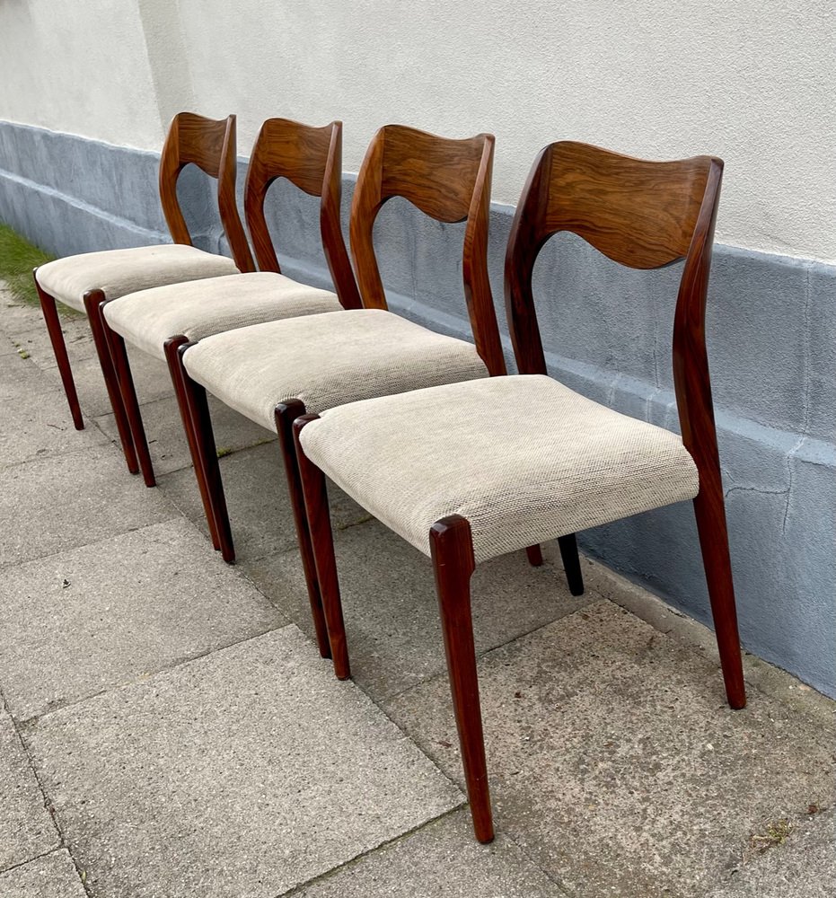 Sedie nr. 71 in noce e lana Hallingdal di Niels Otto Møller per JL Møllers, anni '60, set di 4