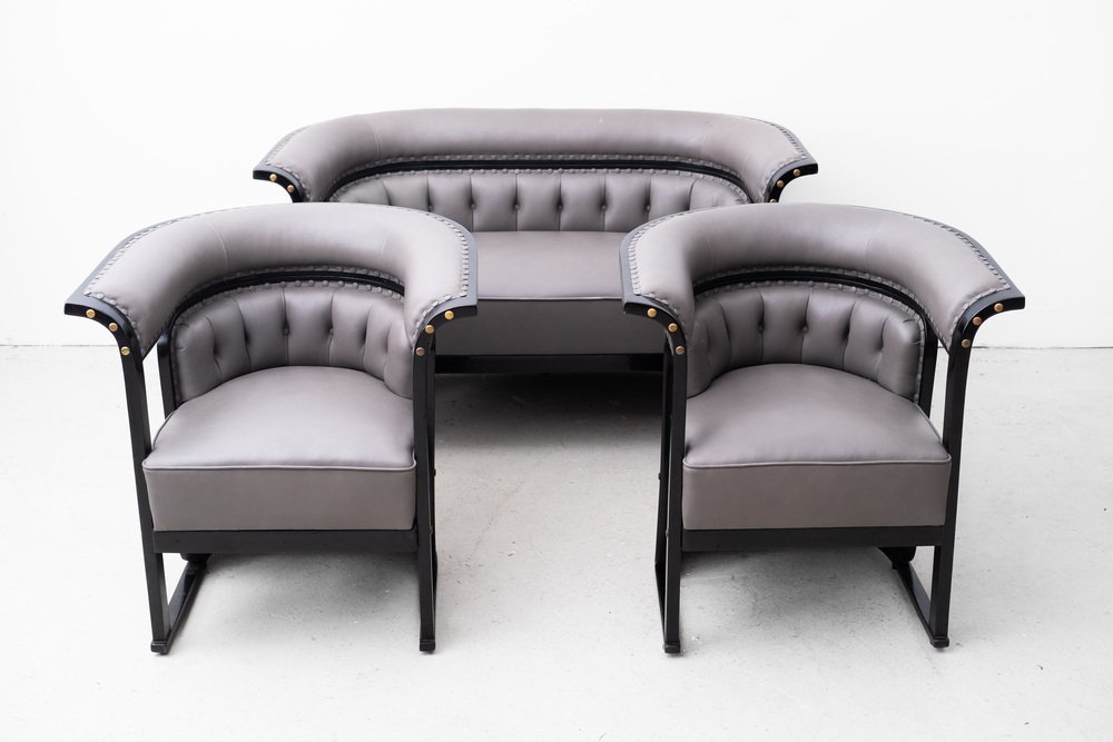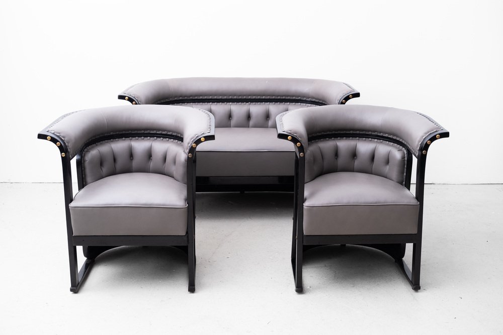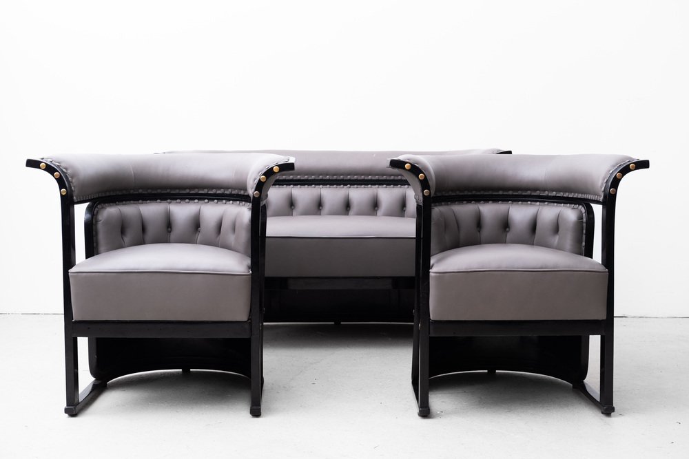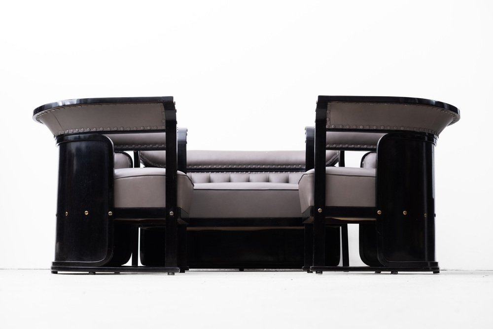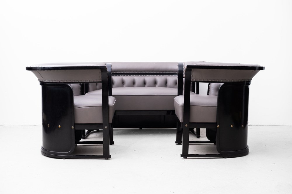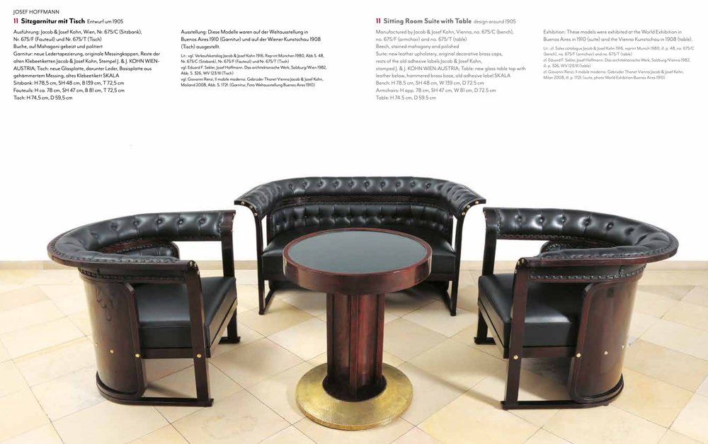 The "Buenos Aires" seating group is attributed to the most influential architect and designer of the Vienna Art Nouveau, Josef Hoffmann. The draft dates from 1905 and was first seen in the Jacob & Josef Kohn catalog from 1906 under model number 675 C/f (c = couch, f = flexible). In 1910 she was shown at the "Exposición Internacional del Centenario" in Buenos Aires. with this set, Hoffmann ensured one of his most important and famous furniture designs.