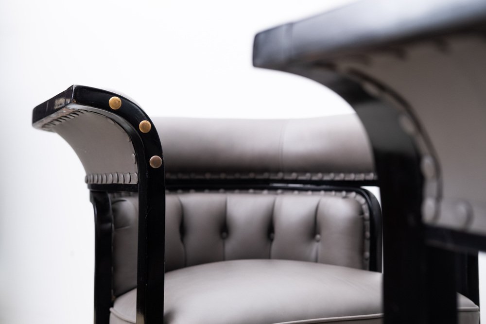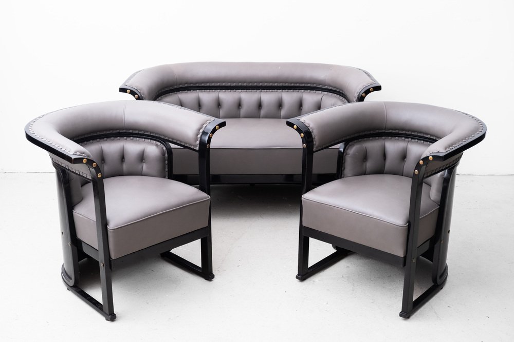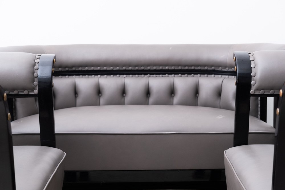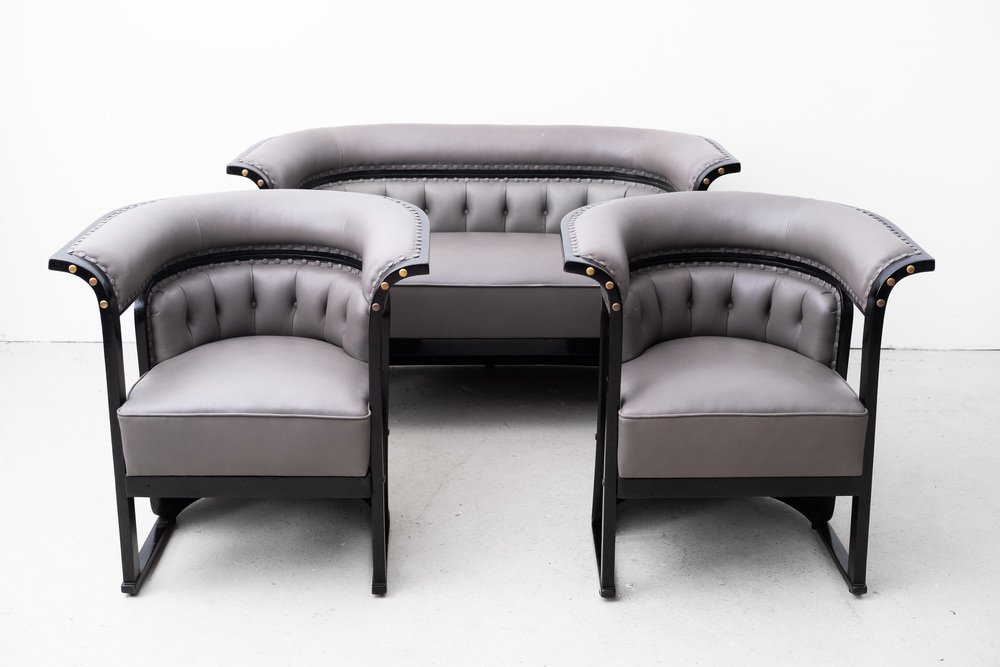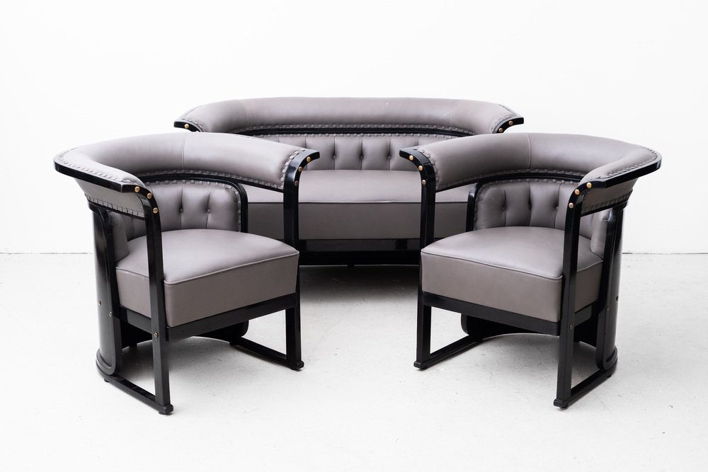The "Buenos Aires" seating group is attributed to the most influential architect and designer of the Vienna Art Nouveau, Josef Hoffmann. The draft dates from 1905 and was first seen in the Jacob & Josef Kohn catalog from 1906 under model number 675 C/f (c = couch, f = flexible). In 1910 she was shown at the "Exposición Internacional del Centenario" in Buenos Aires. with this set, Hoffmann ensured one of his most important and famous furniture designs.