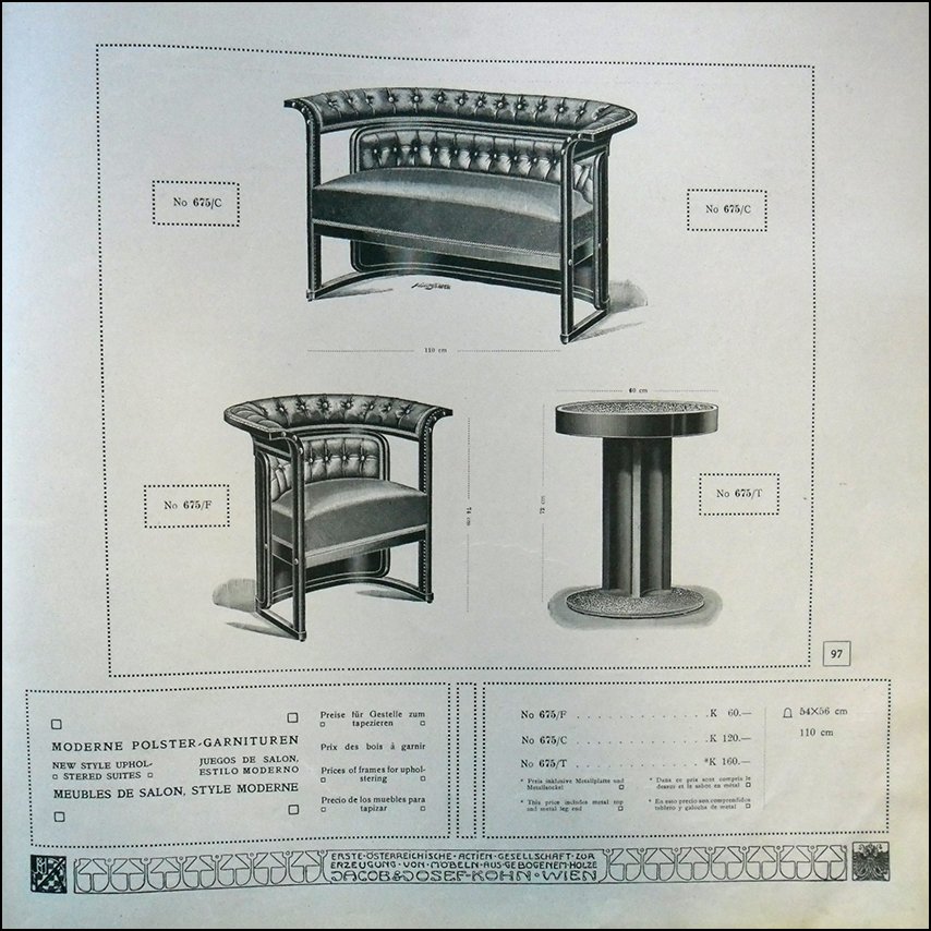 Literature: The interior, XII, 1911, Tafel 31 / IL Mobile Moderno, Gebrüder Thonet Vienna, Jacob & Josef Kohn, Giovanni Renzi, 2008, pp. 172-173 / Jacob & Josef Kohn, Catalog 1907, pp. 97 / Jacob & Josef Kohn, Catalog 1916, p. 48 / from the Viennese chair to architectural furniture - Jacob & Josef Kohn, Thonet and Mundus. Bugholz furniture from sectorism to interwar modernism, Jirí Uhlír, 2009, p. 155 / Josef Hoffmann - Hans Ofner, Sales exhibition Gallery at Albertina, pp. 34-35