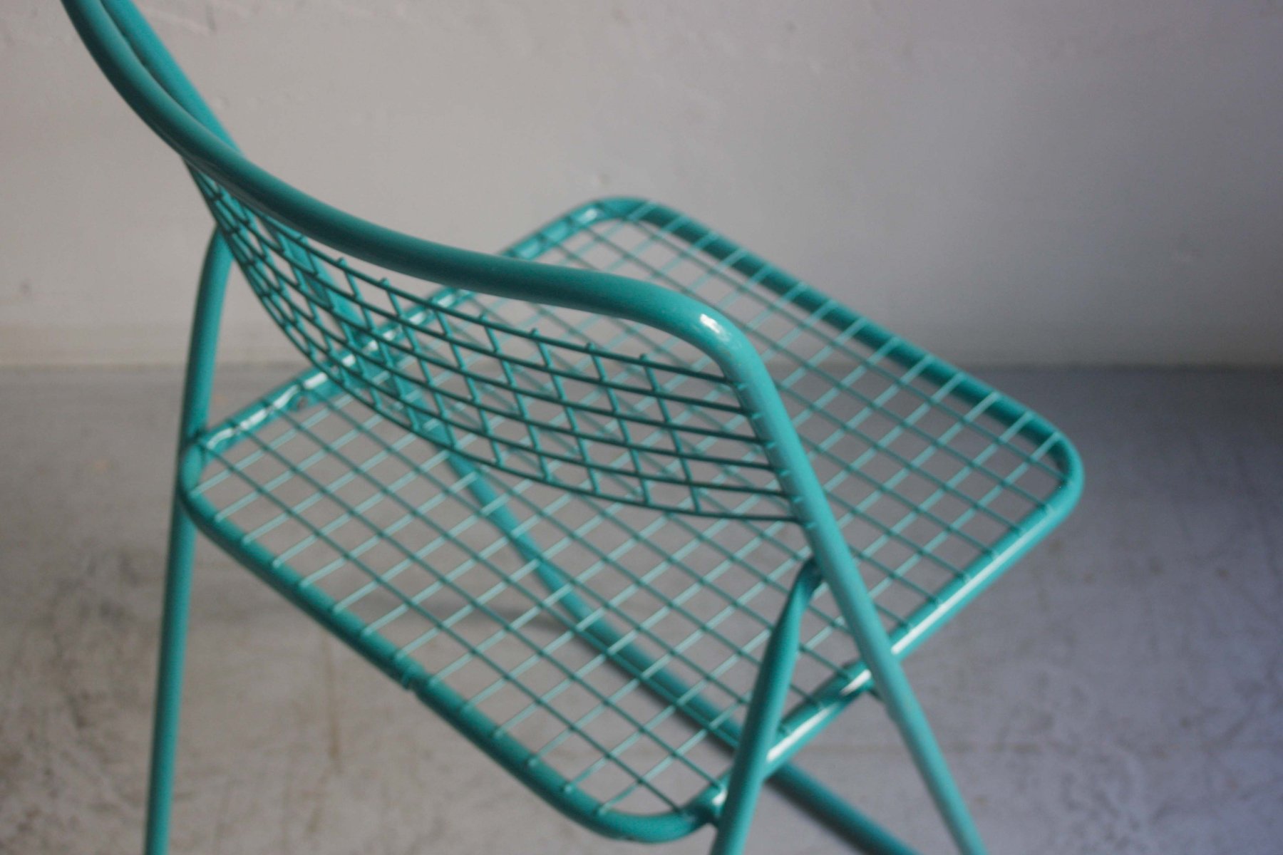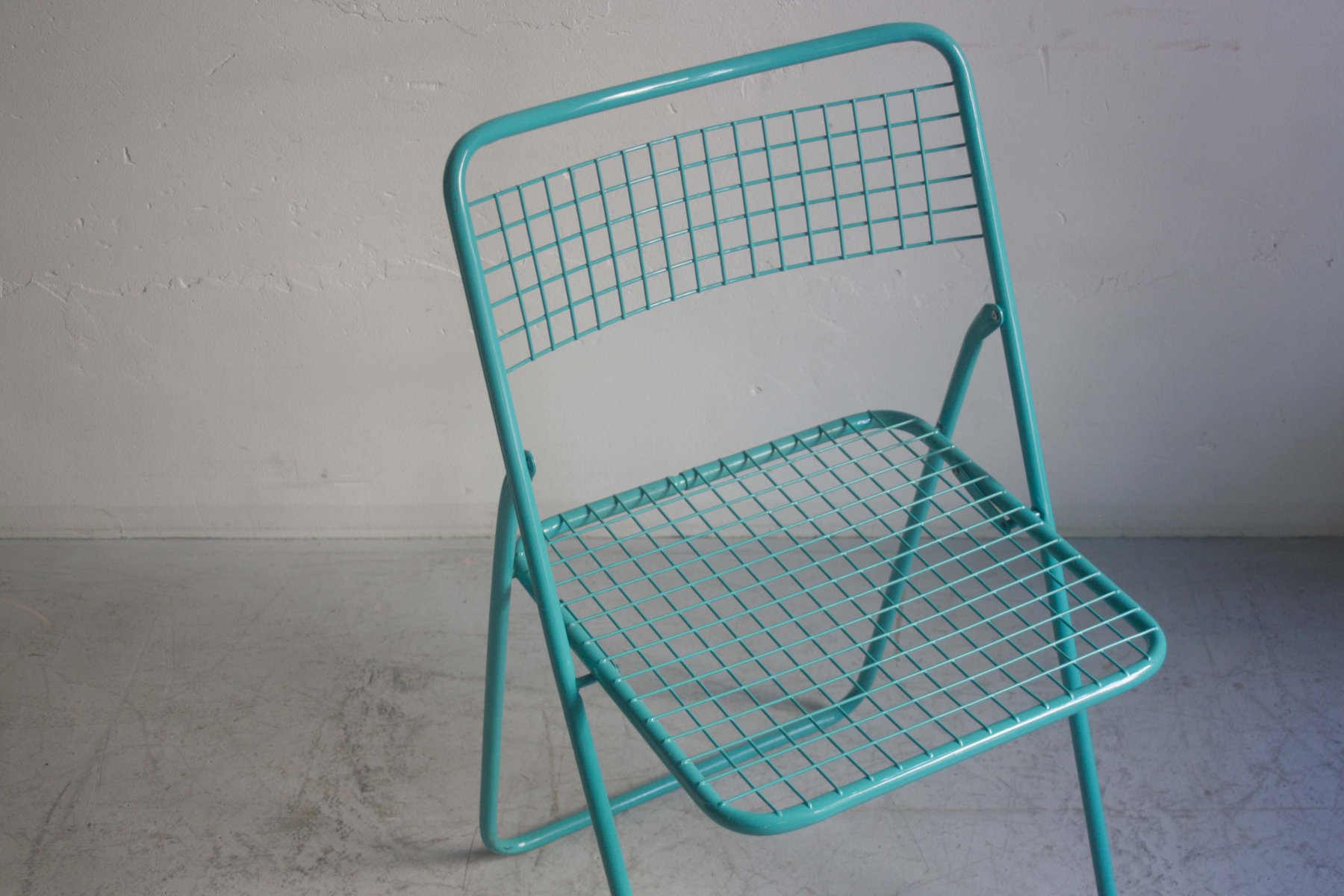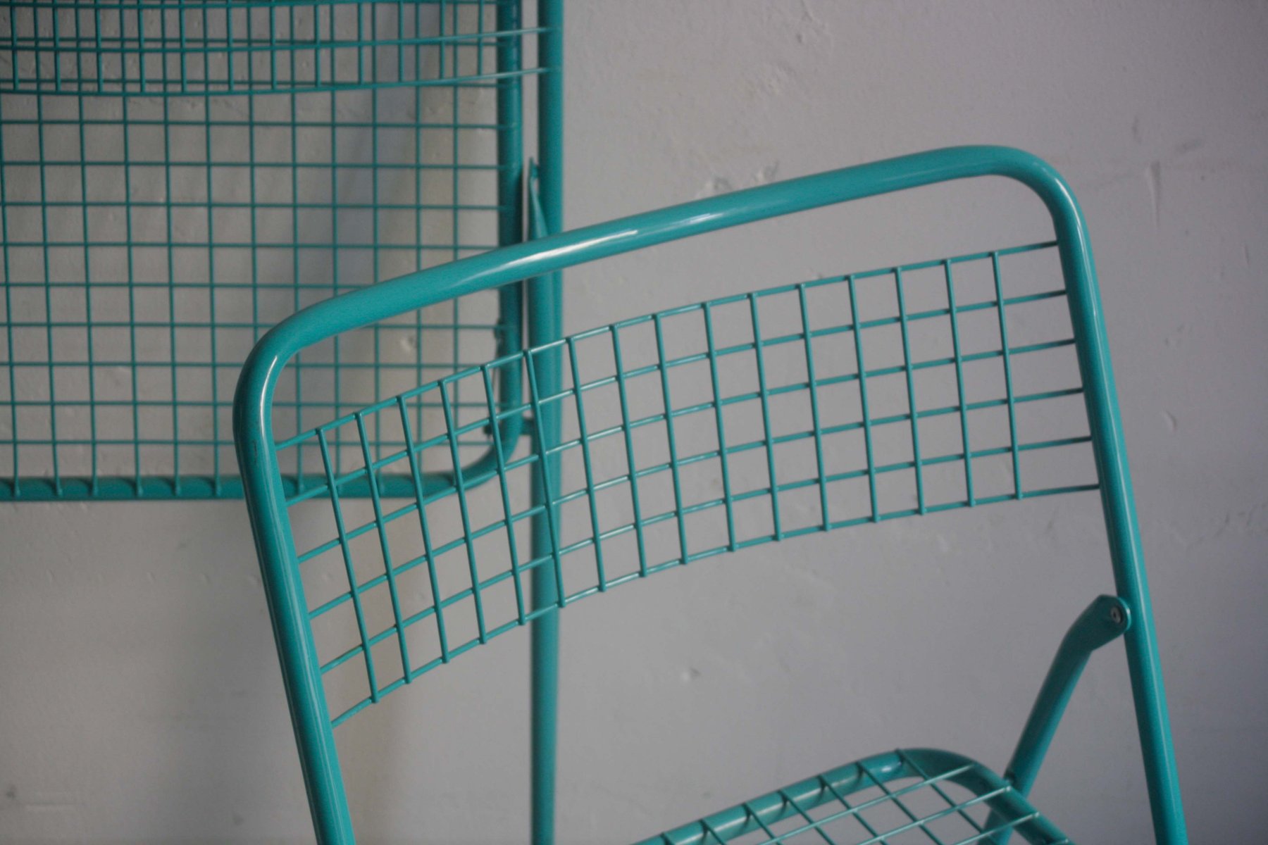 Sedie pieghevoli vintage in metallo turchese, anni '80, set di 2