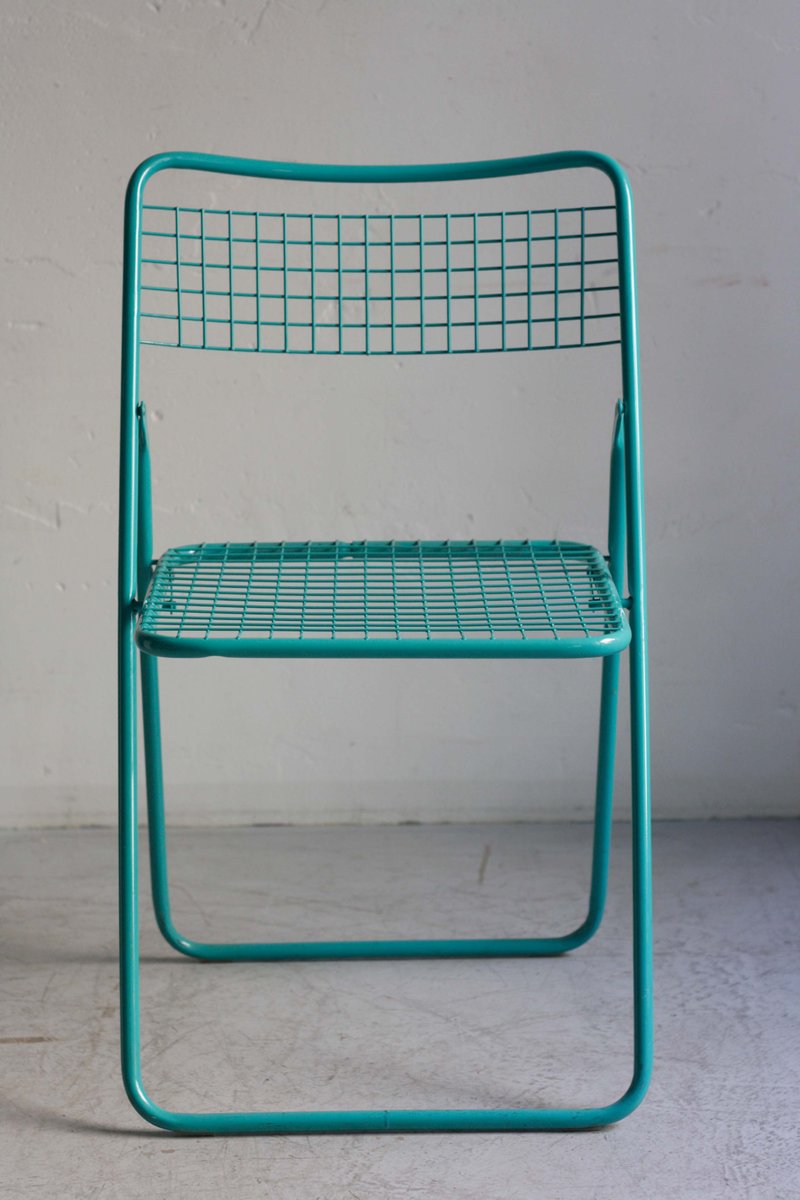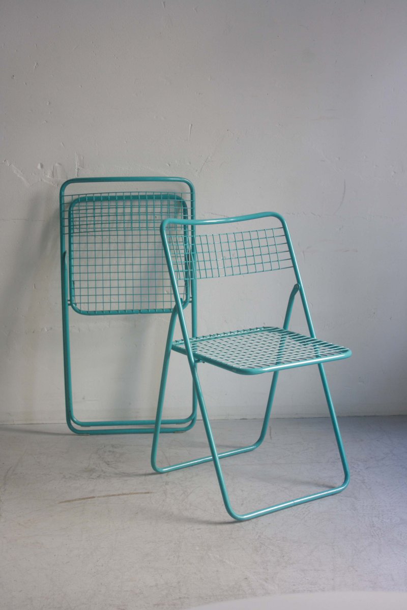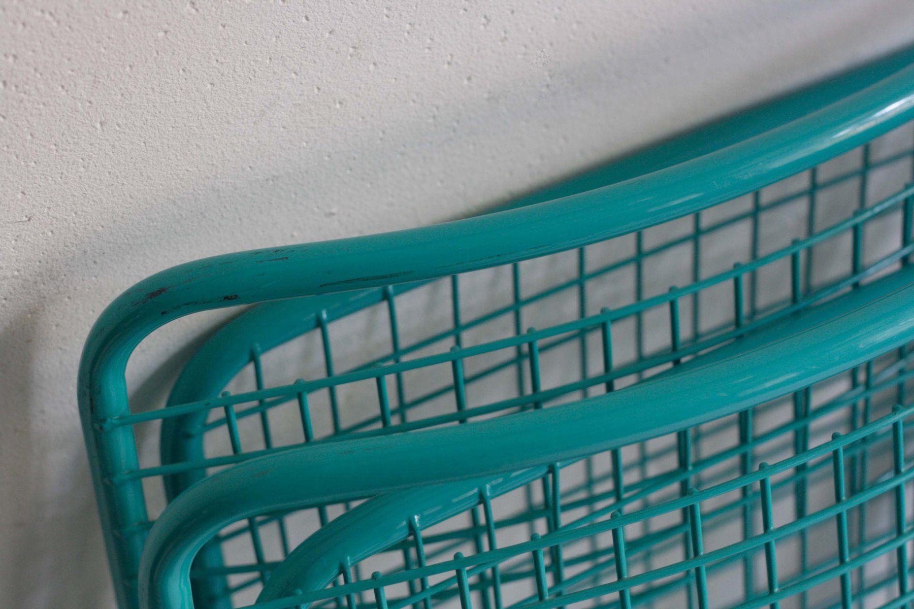Sedie pieghevoli vintage in metallo turchese, anni '80, set di 2