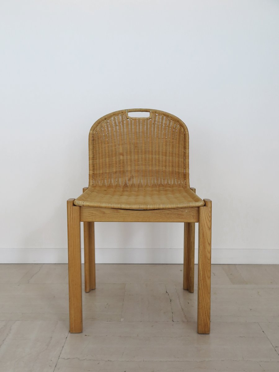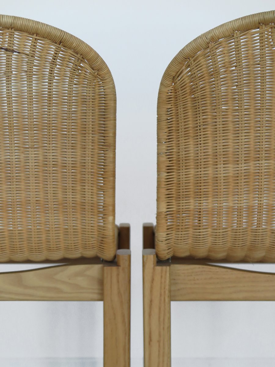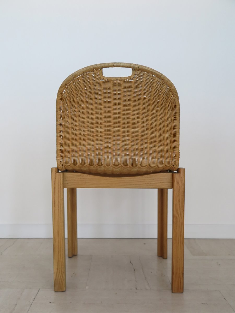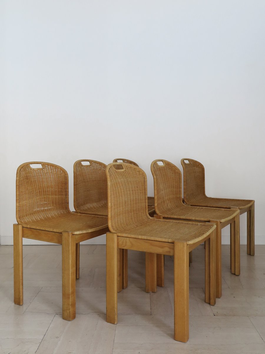 Sedie vintage in quercia e vimini di Luciano Bertoncini per Bellato, anni '70, set di 6