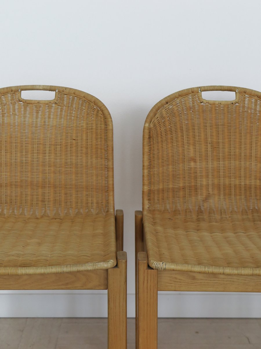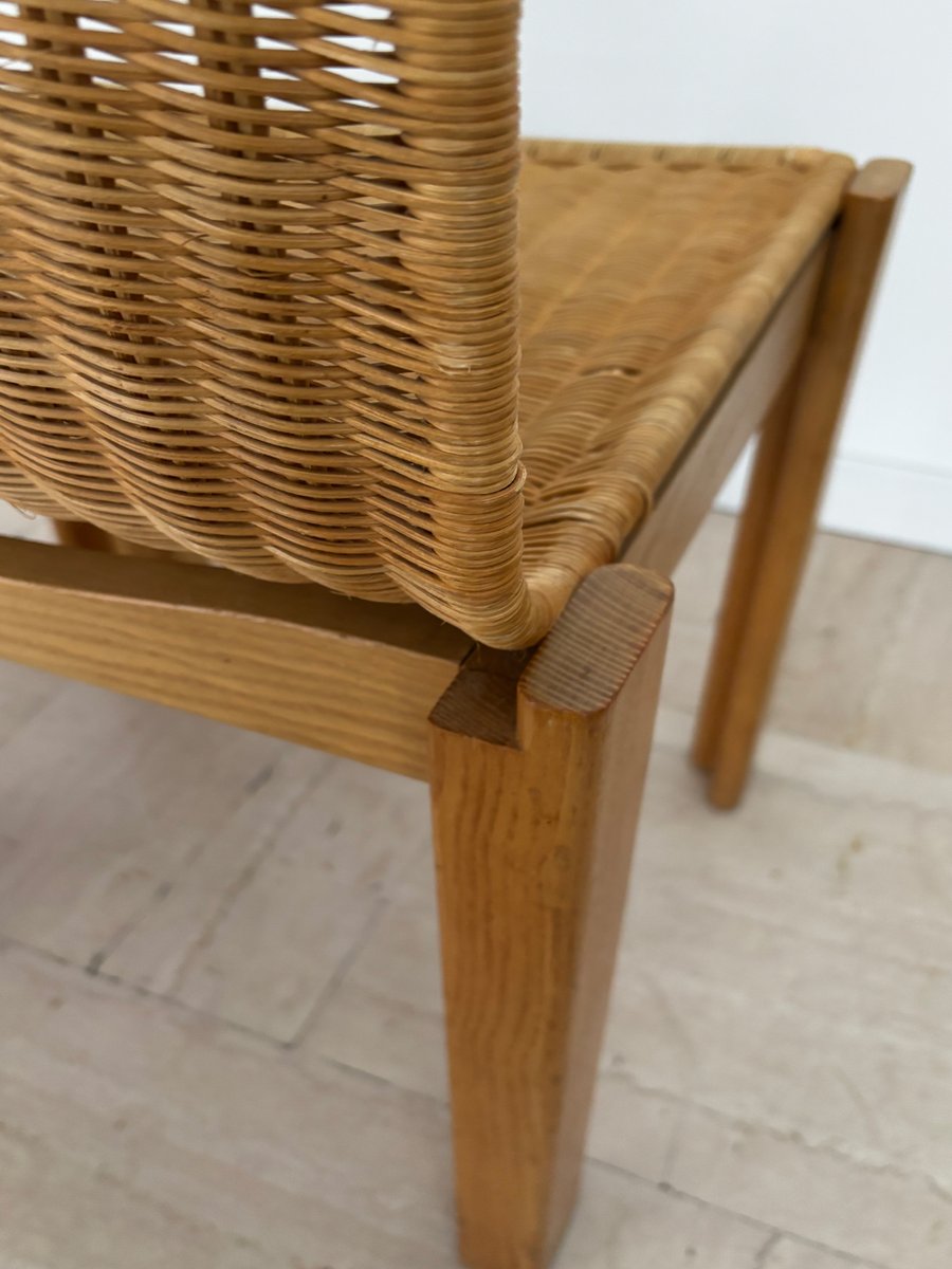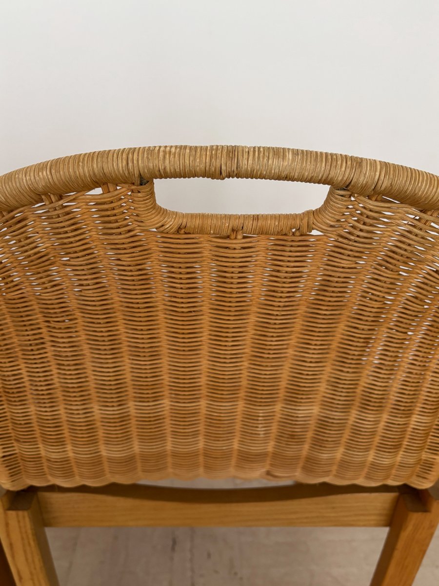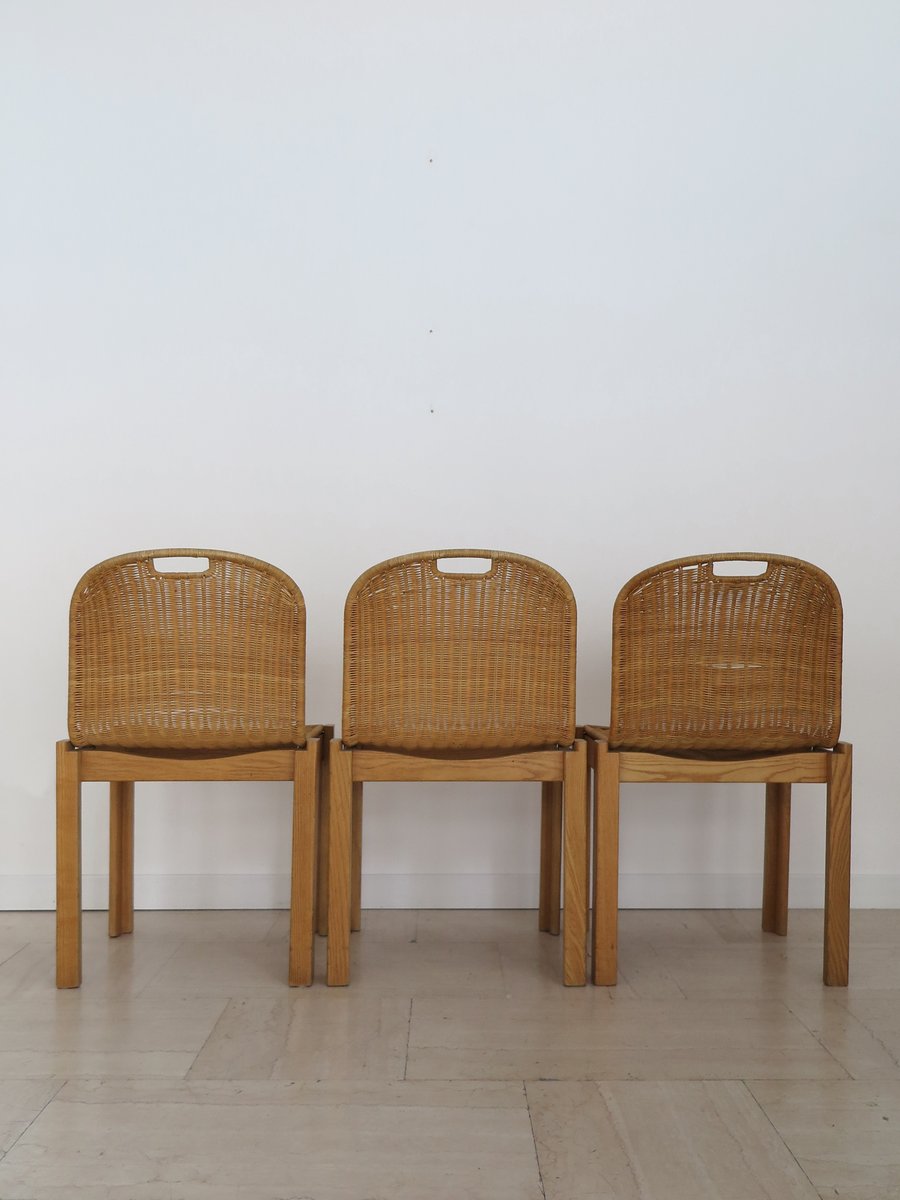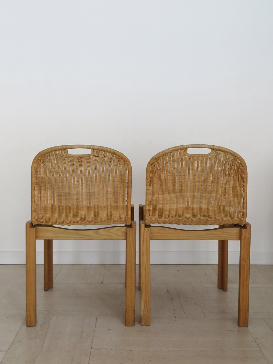 Sedie vintage in quercia e vimini di Luciano Bertoncini per Bellato, anni '70, set di 6