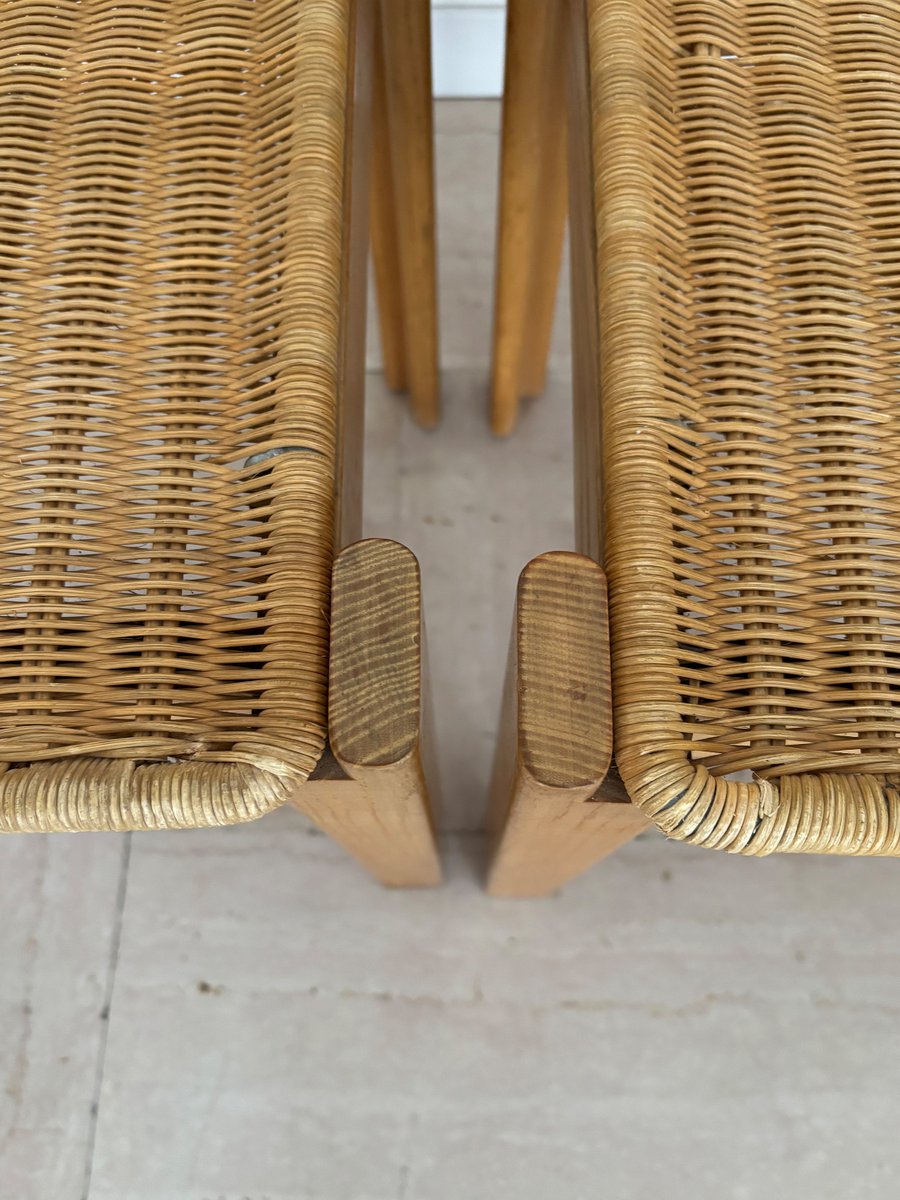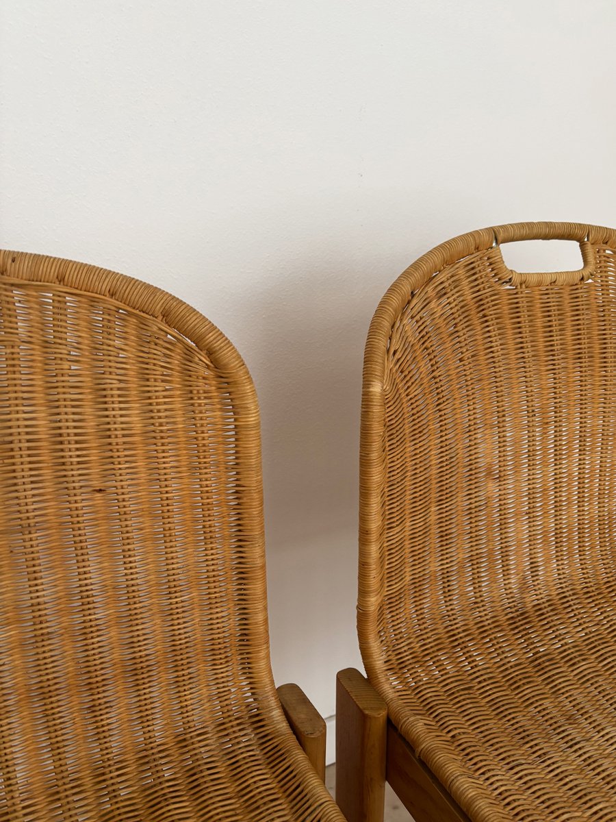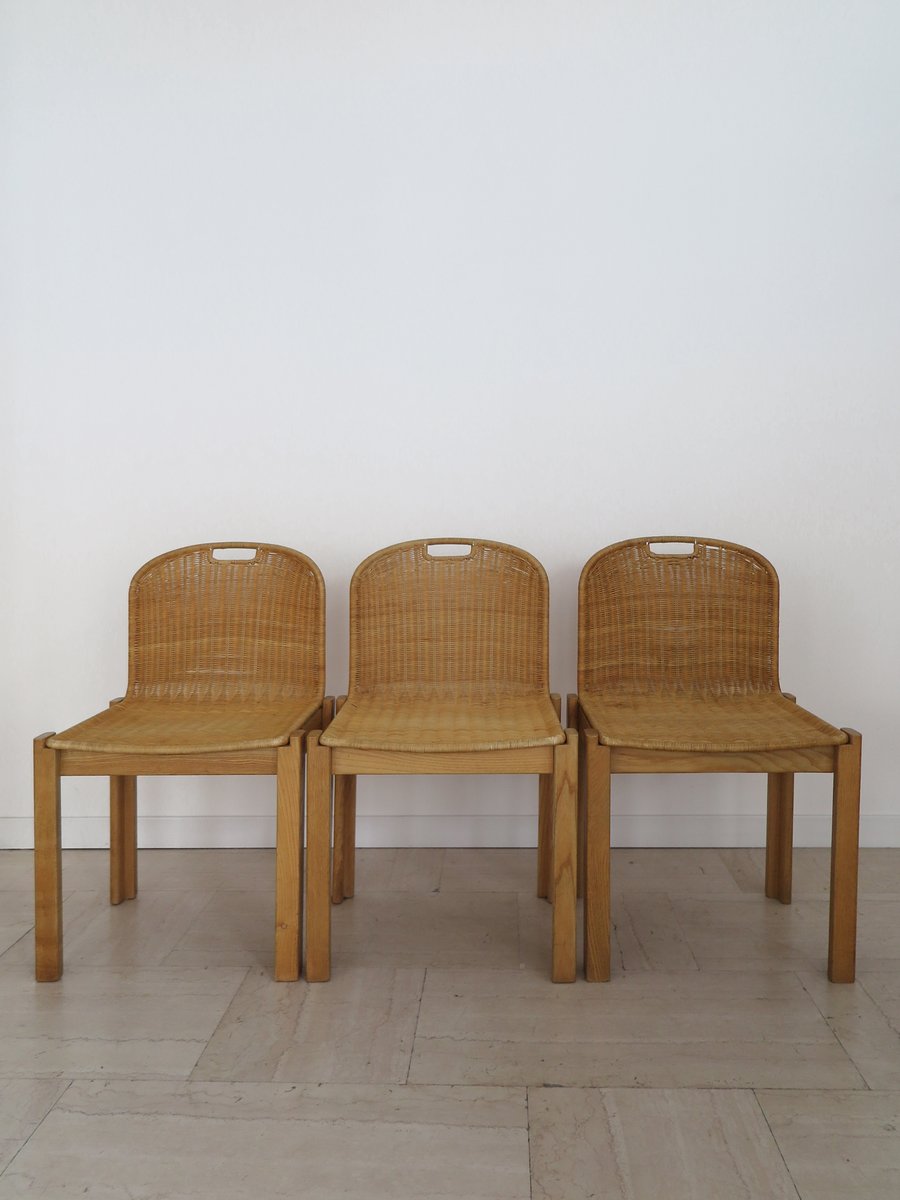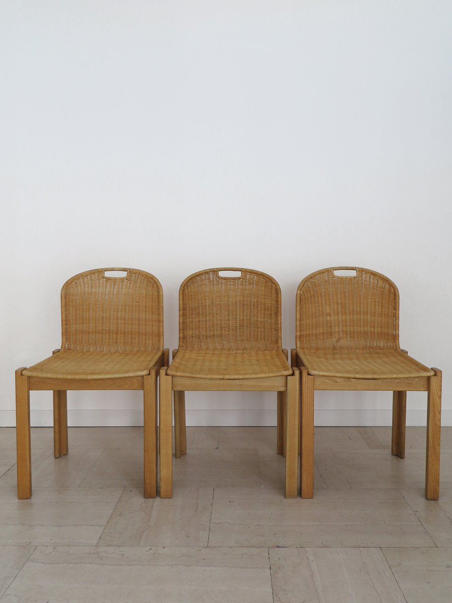 Sedie vintage in quercia e vimini di Luciano Bertoncini per Bellato, anni '70, set di 6