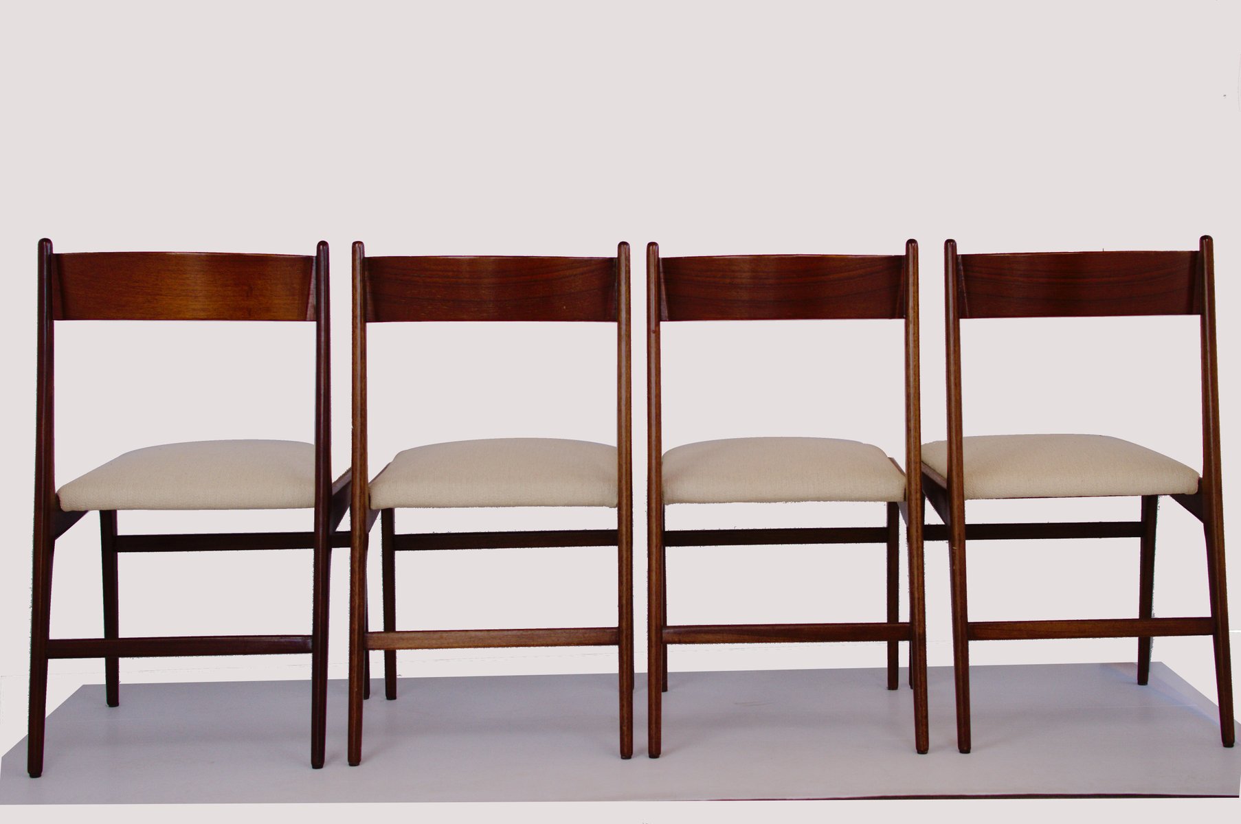 Sedie vintage in stile danese in tessuto strutturato beige chiaro, set di 4