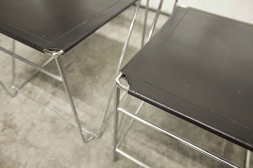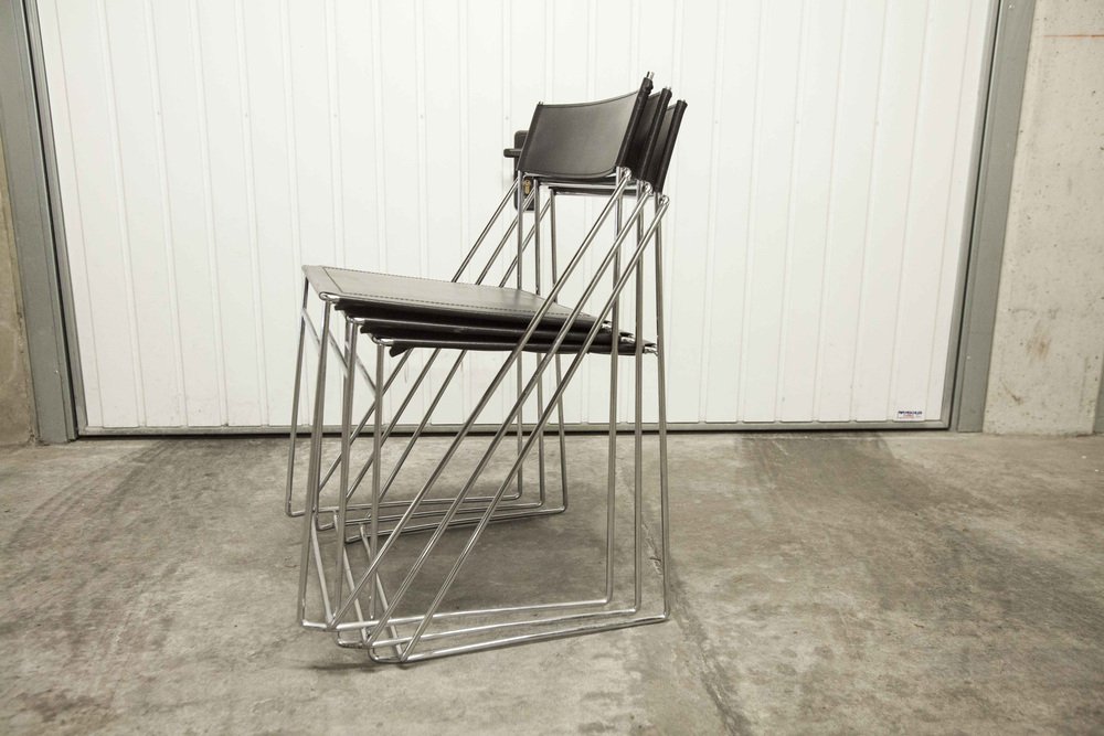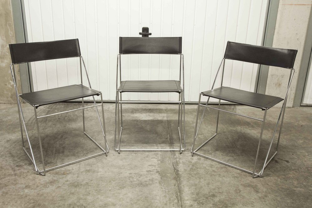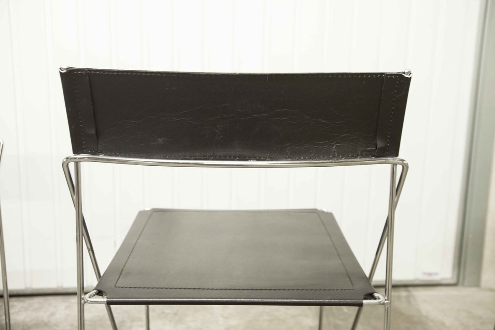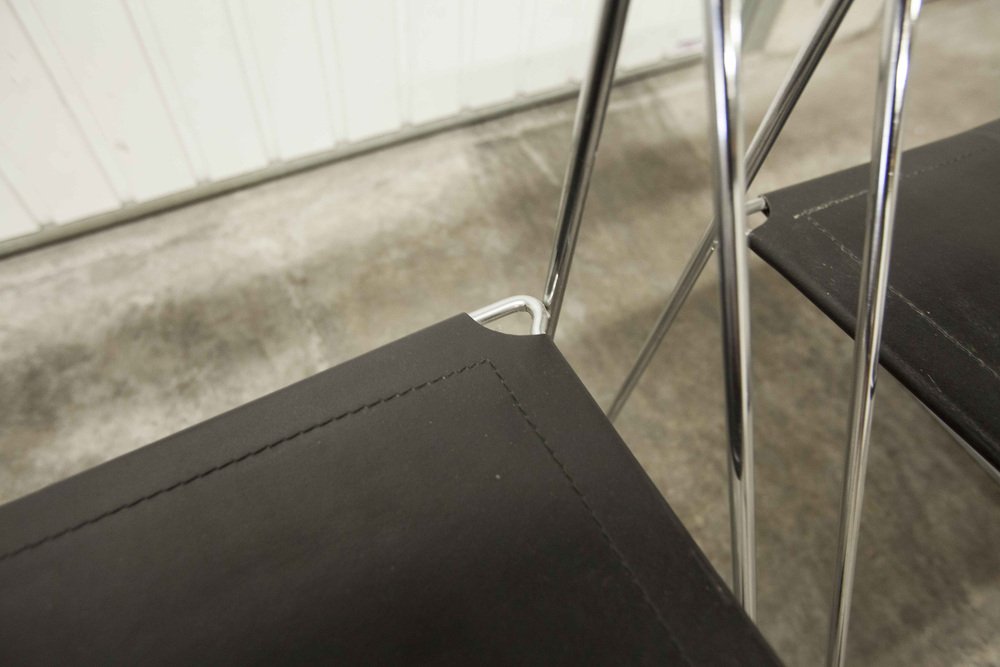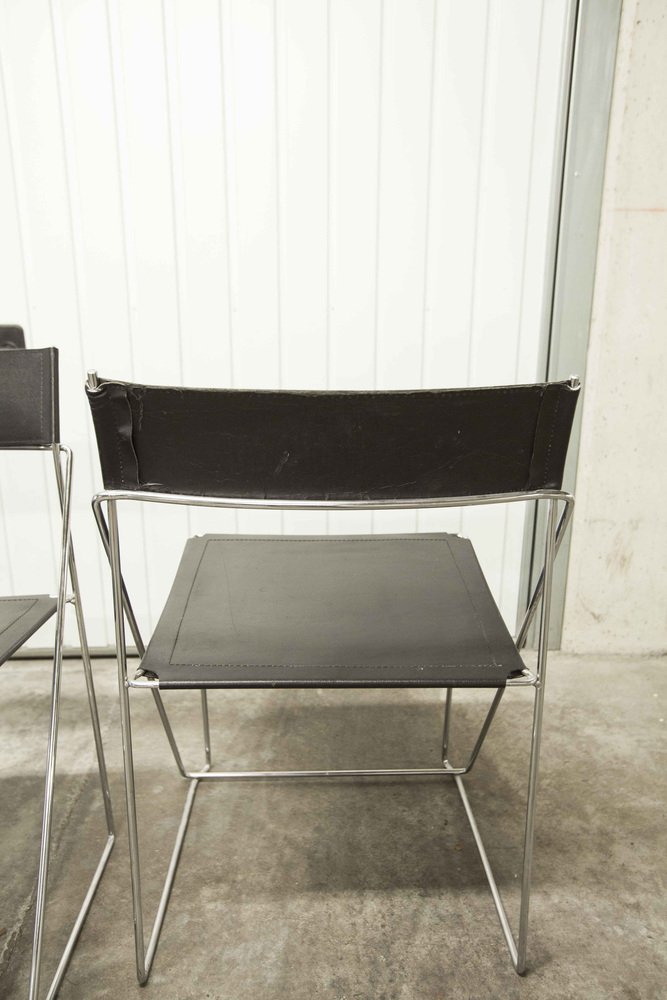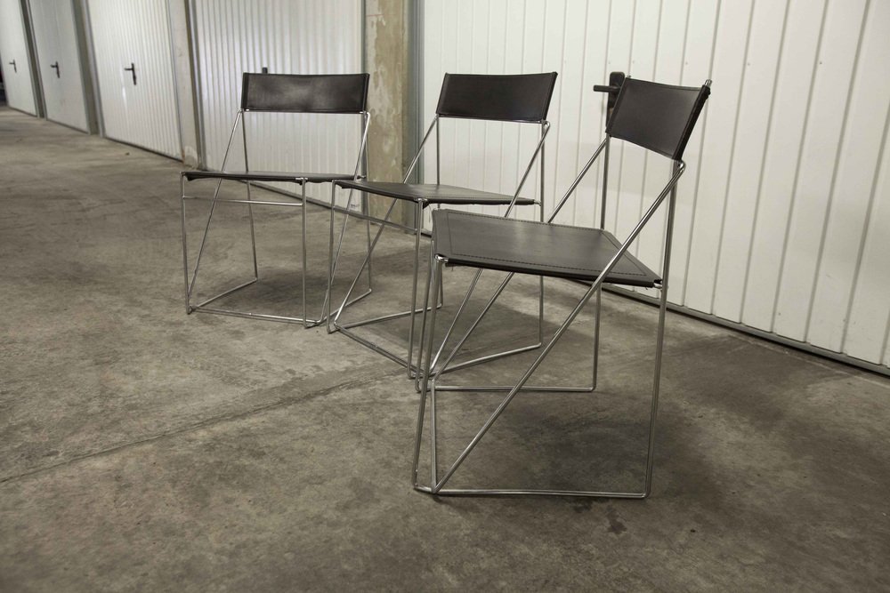 Sedie X Line minimaliste in pelle attribuite a Niels Jorgen Haugesen per Hybodan, anni '70, set di 3