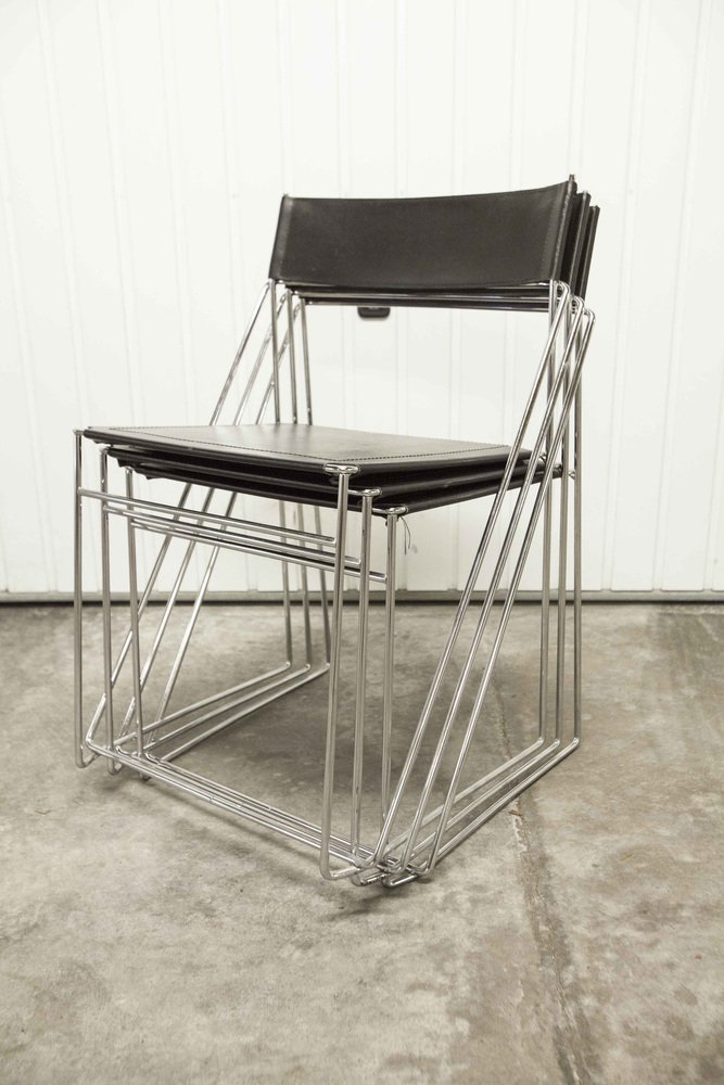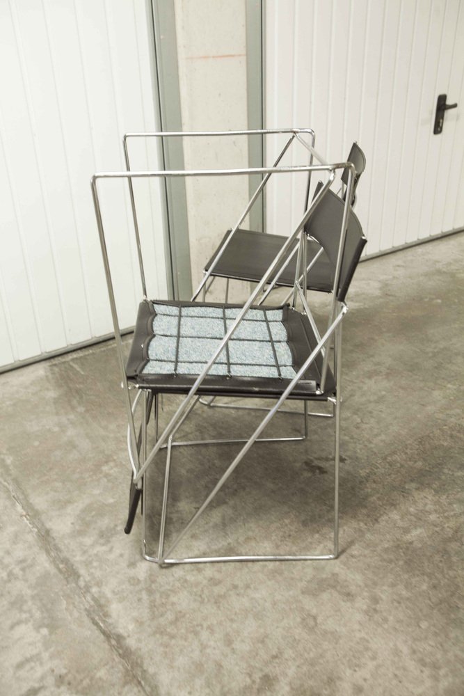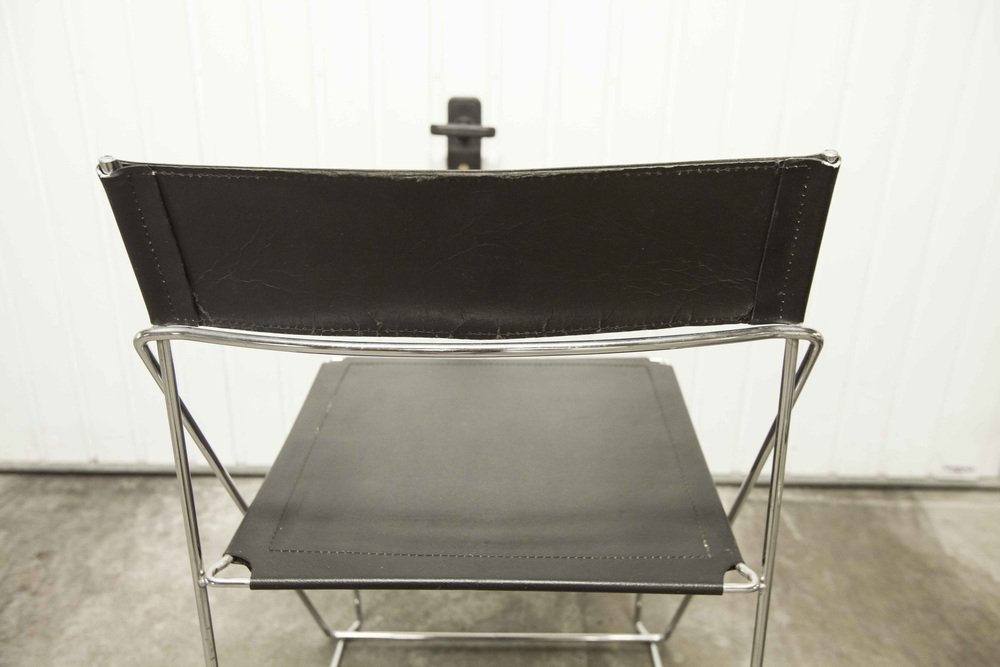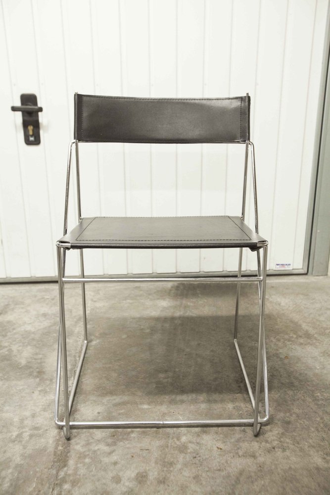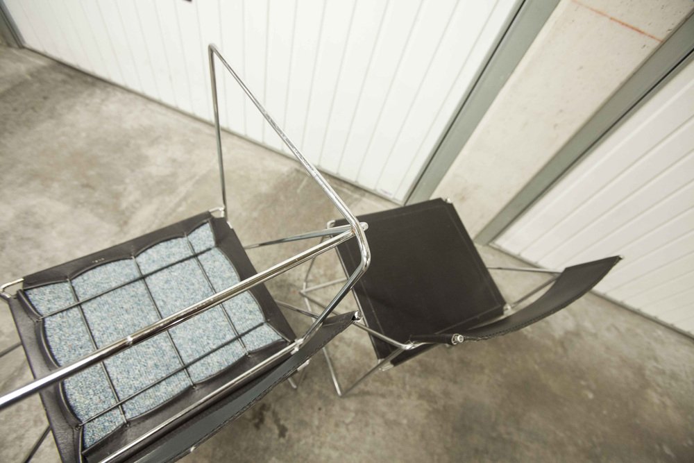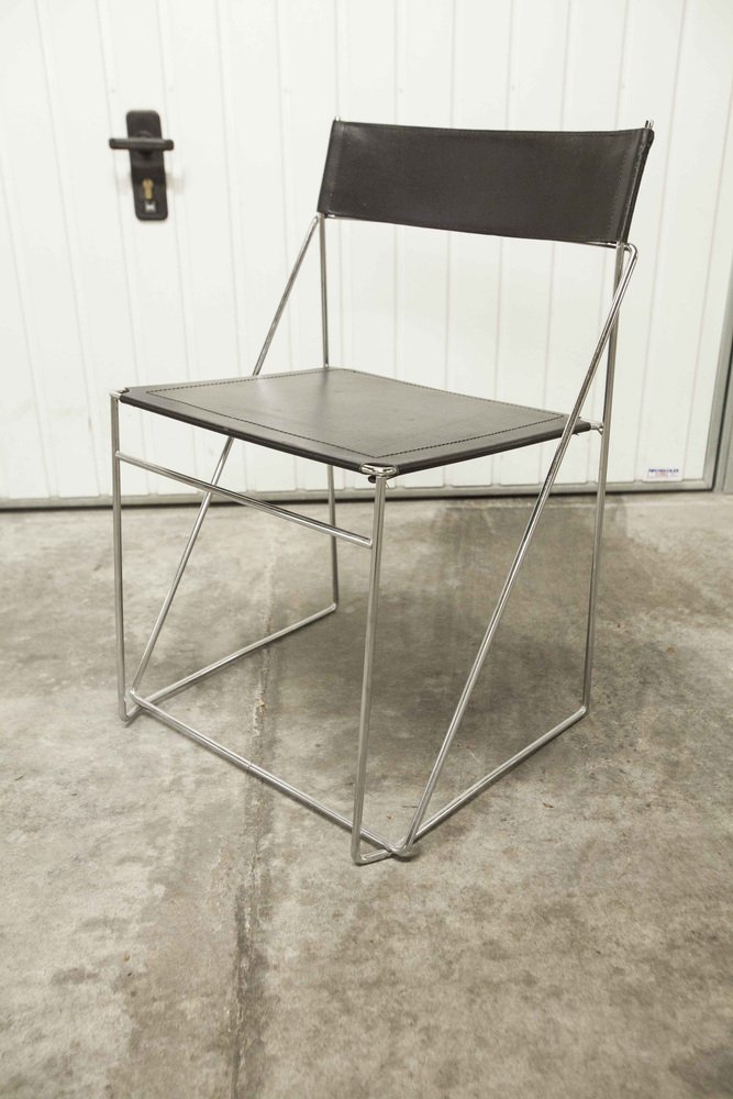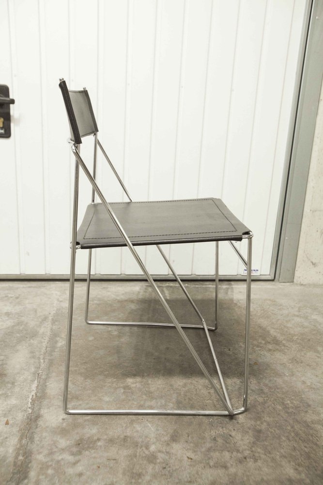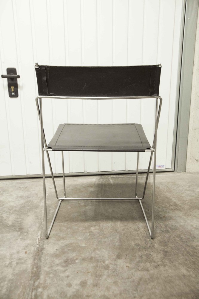 Sedie X Line minimaliste in pelle attribuite a Niels Jorgen Haugesen per Hybodan, anni '70, set di 3