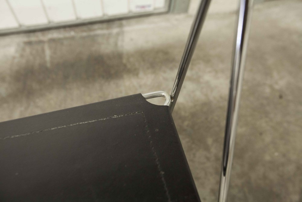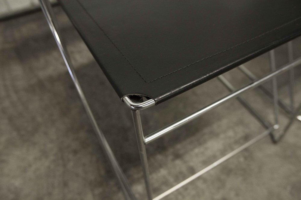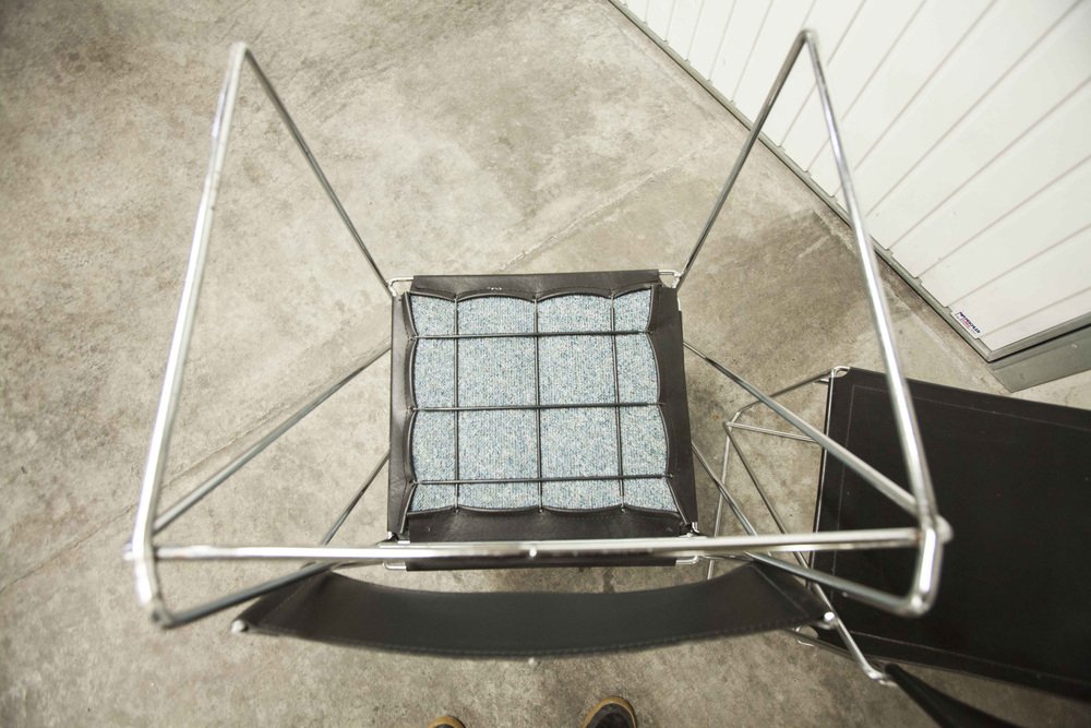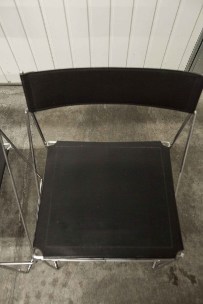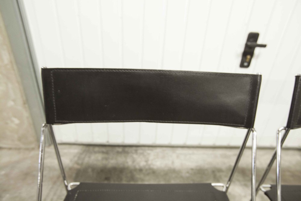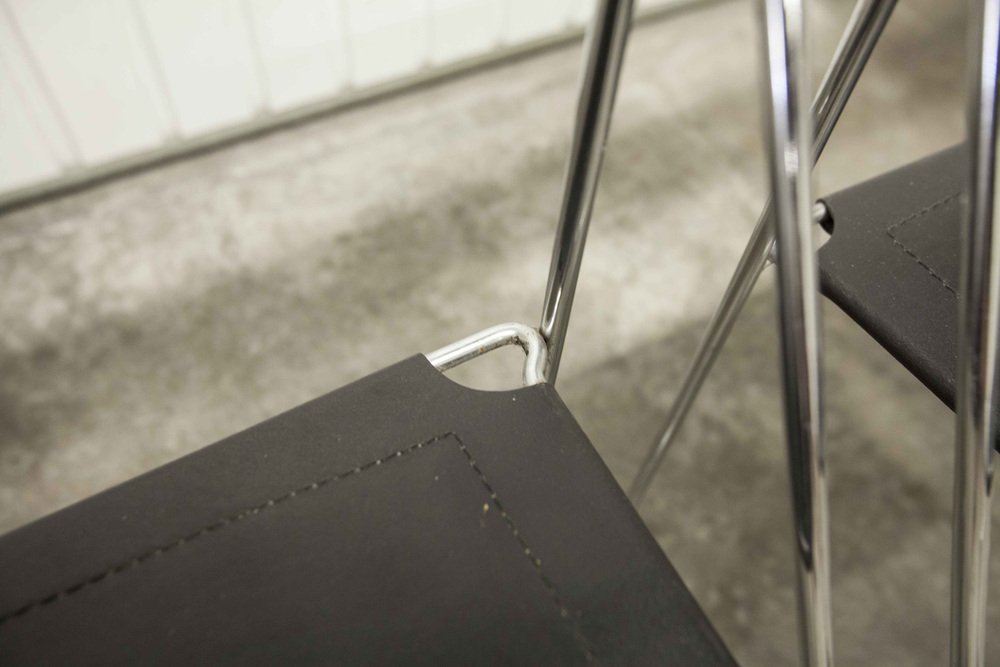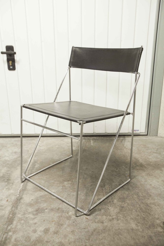 Sedie X Line minimaliste in pelle attribuite a Niels Jorgen Haugesen per Hybodan, anni '70, set di 3