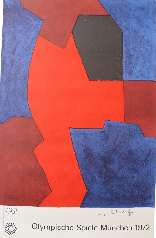 Serge Poliakoff, Composizione rossa e nera per i Giochi Olimpici di Monaco, 1972, Litografia