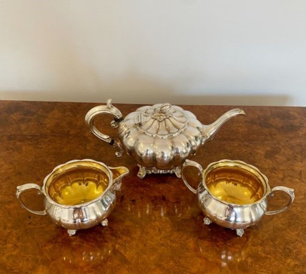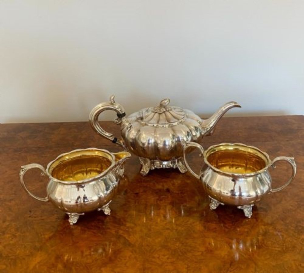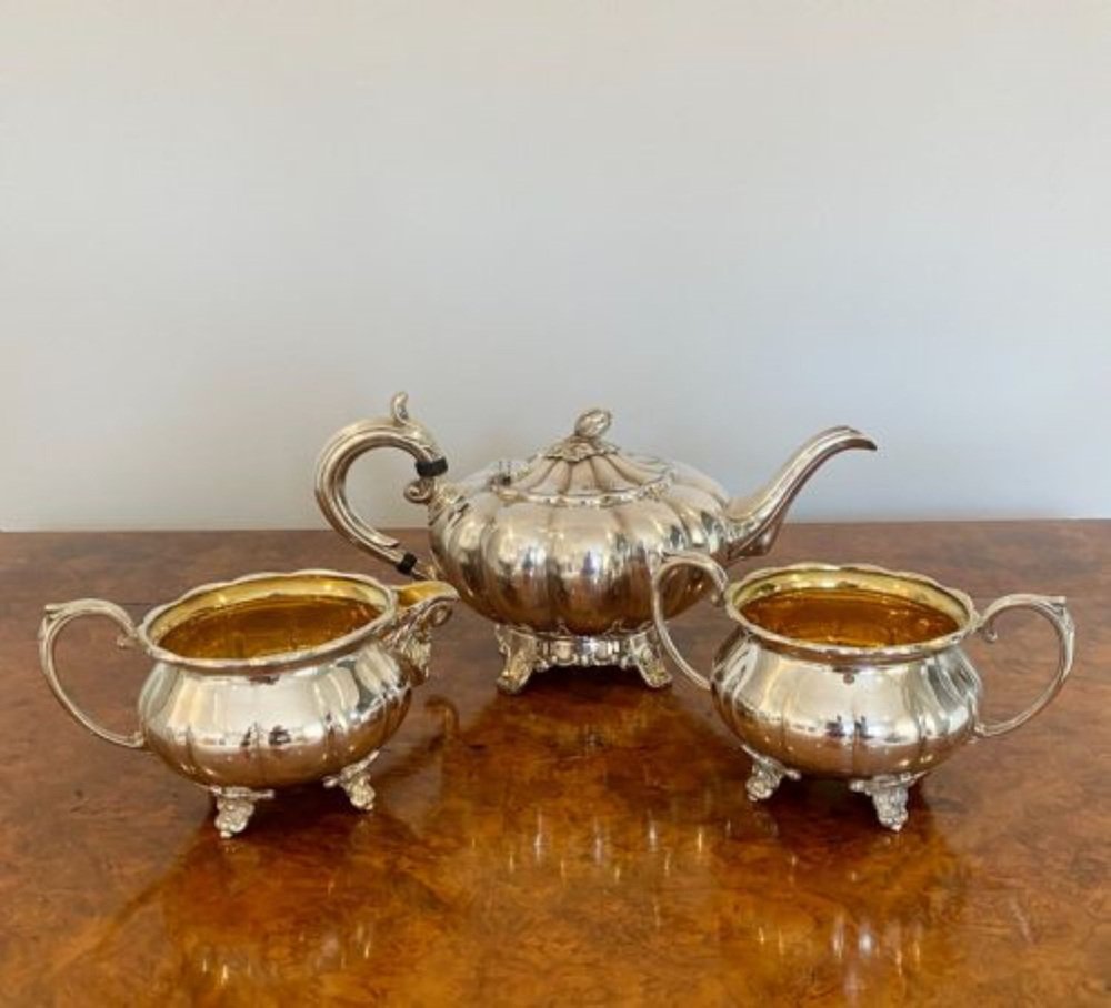 Servizio da tè antico edoardiano placcato in argento, 1900, set di 3