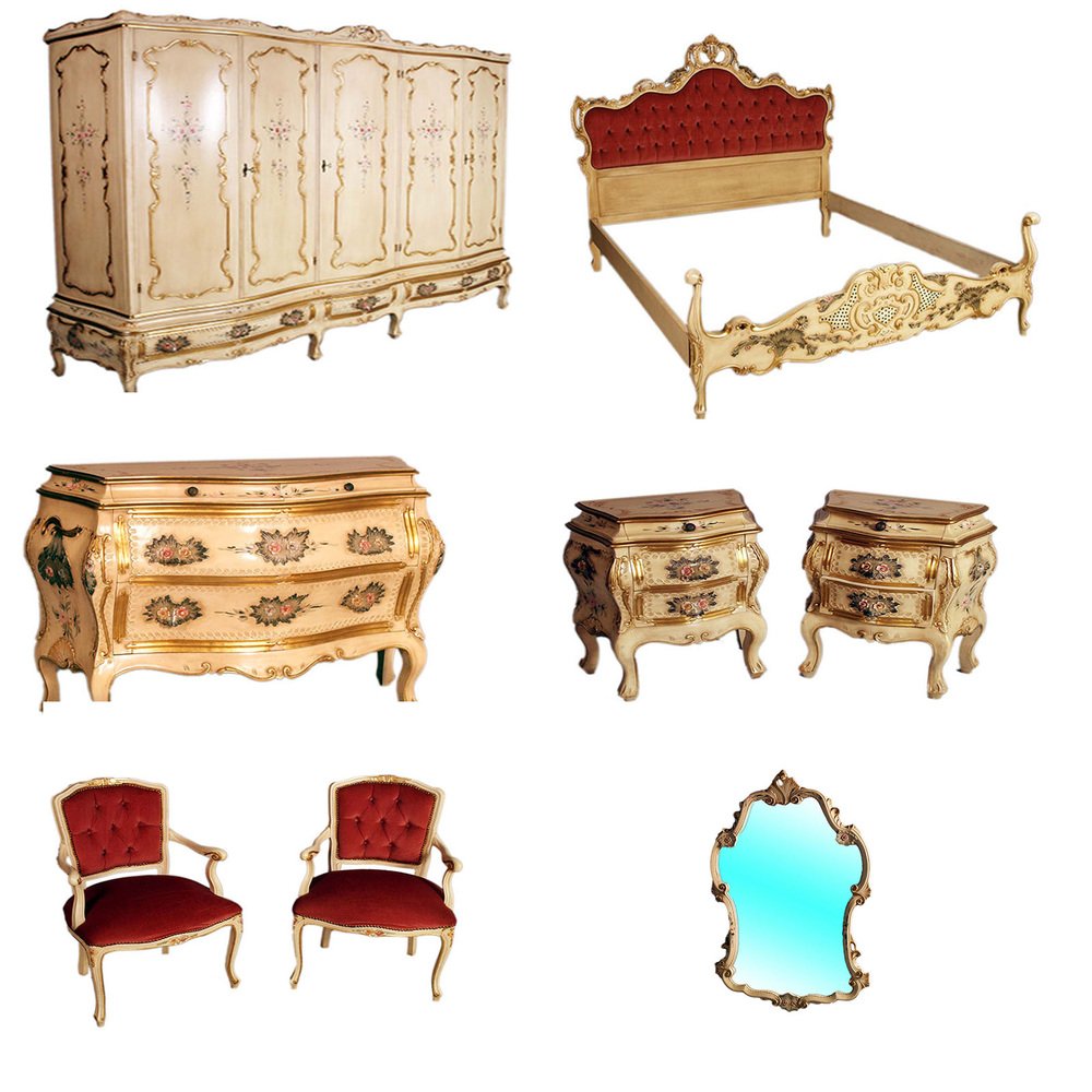 Set da letto Mid-Century in stile barocco veneziano di La Permanente Mobili Cantù, anni '50, set di 8