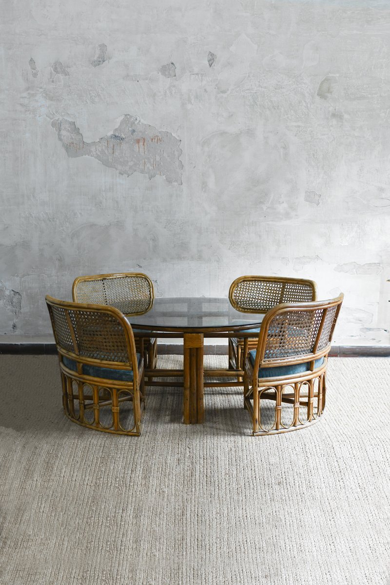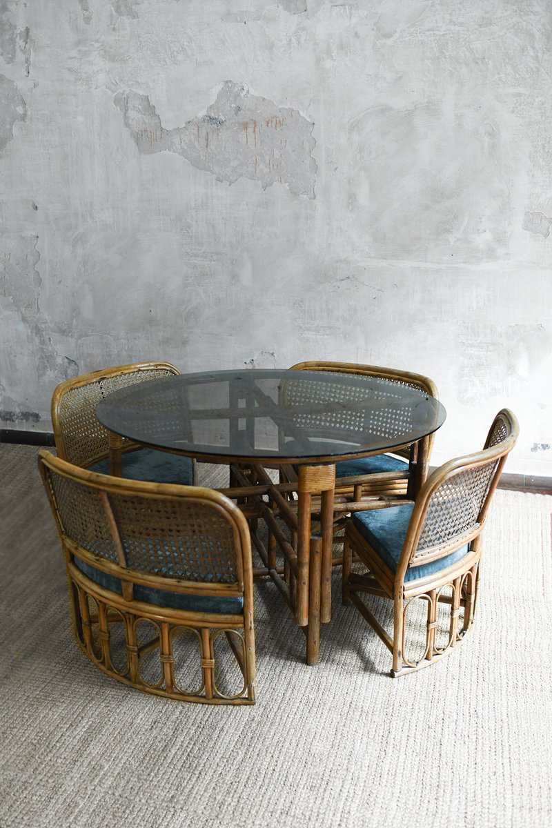 Set da salotto in bambù con tavolino e poltrone, fine anni '60, set di 5