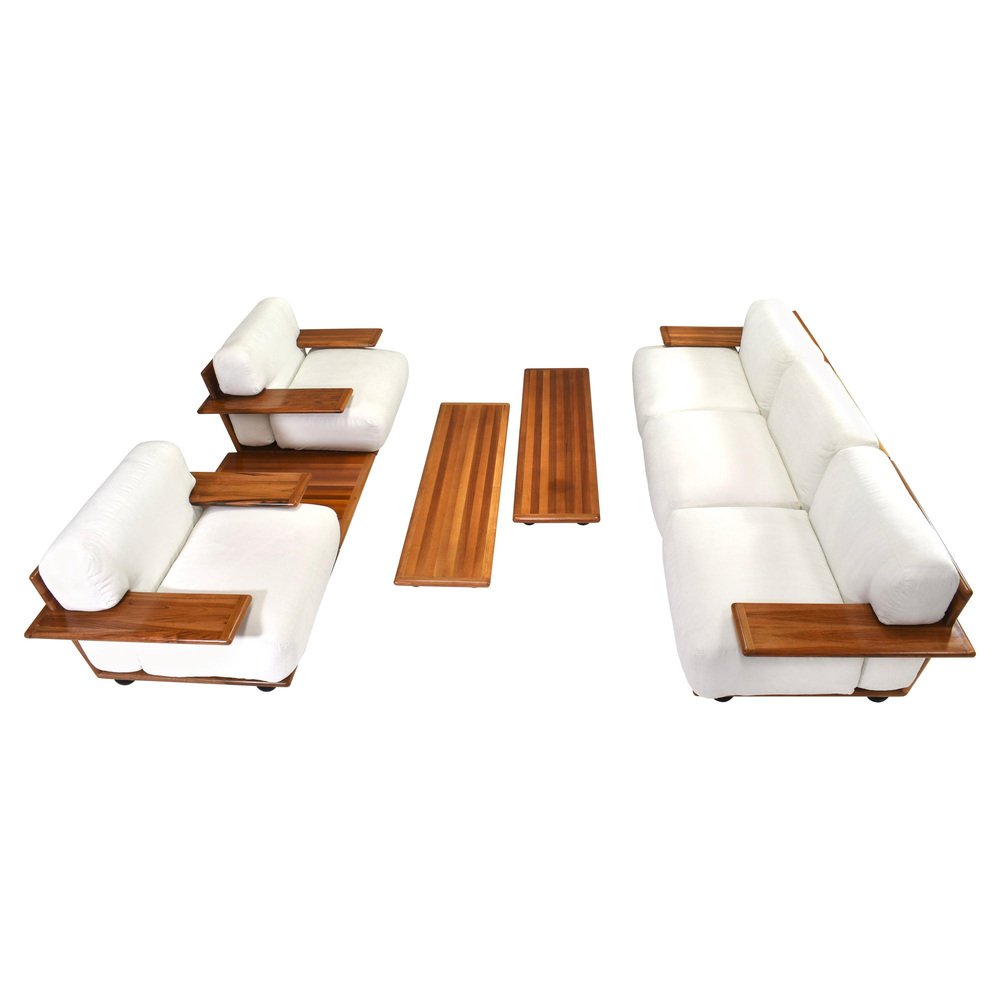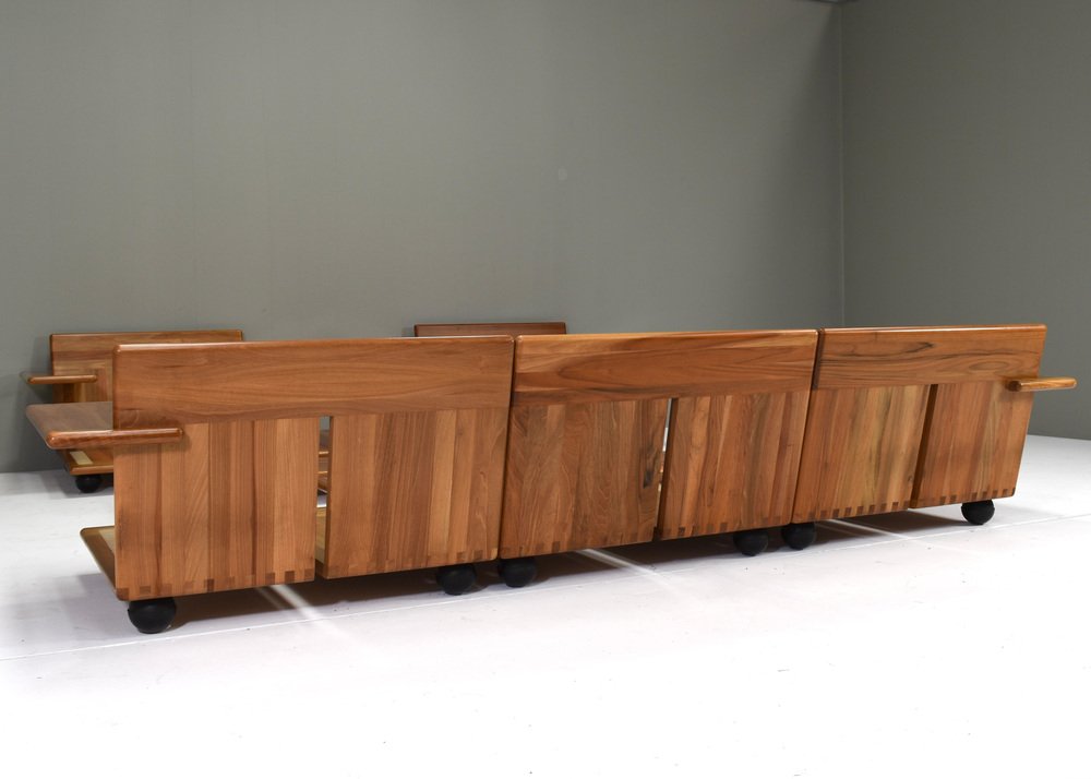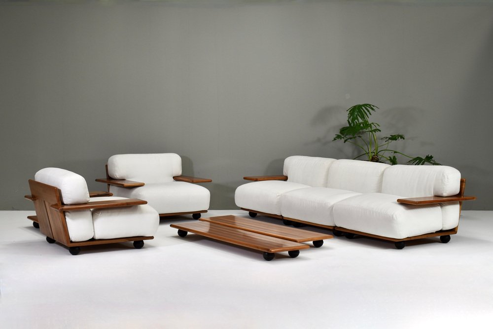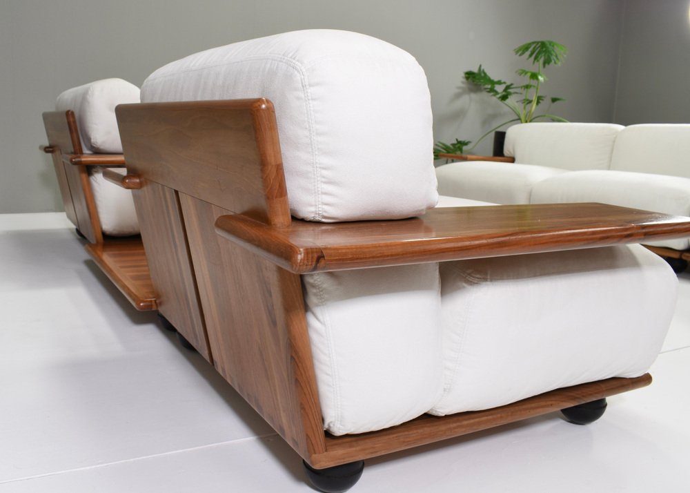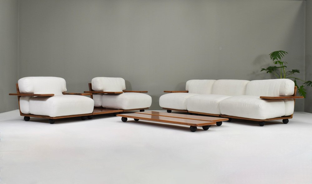 The Pianura living room set by Mario Bellini for CASSINA is a beautifully designed and stylish collection of furniture pieces that can transform your living room into a luxurious and comfortable space. This a very rare and complete set that isn’t on the market often. The set features: - Three piece sofa - Two armchairs - One square coffee table - Two rectangular coffee tables Designer: Mario Bellini is a renowned Italian architect and designer, known for his innovative and timeless creations. Manufacturer: Cassina (some items in this set are still labeled) Country: Italy Model: Pianura living room set Design period: 1971 Date of manufacturing: 1970’s Size WDH in cm: sofa: 265x90x65 Seat height 38 Arm height 42 chairs: 104x90x65 Seat height 38 Arm height 42 rectangular coffee tables: 160x40x11 square coffee table: 80x80x11 Material: Solid Italian Walnut / Fabric Condition: Very good. Some minor signs of age and use. Here’s an overview of the Pianura living room set: Sofa: The centerpiece of the Pianura living room set is a stunning sofa. It features a sleek and elegant design, with clean lines and exceptional craftsmanship. The sofa is designed for comfort, making it the perfect place to relax and entertain guests. Armchairs: To complement the sofa, the Pianura set includes matching armchairs. These armchairs share the same design aesthetics, offering additional seating options and maintaining a cohesive look in your living room. Coffee Tables: The set also includes coffee tables designed to harmonize with the seating elements. It’s a functional and stylish piece that can be used to display decorative items or serve snacks and beverages. Materials and Finishes: Mario Bellini is known for his attention to detail and the use of high-quality materials. The Pianura set features premium upholstery options, and the framework is crafted with precision, ensuring durability and longevity. Versatility: One of the strengths of the Pianura living room set is its versatility. The clean and minimalist design makes it suitable for a wide range of interior styles, from modern and contemporary to more classic and traditional decor. Comfort: Comfort is a top priority in the design of this living room set. The seating is likely to be well-padded and ergonomic, ensuring that you and your guests can enjoy hours of relaxation in style. CASSINA: CASSINA is a renowned Italian furniture manufacturer known for its commitment to quality, craftsmanship, and design excellence. They have collaborated with many iconic designers, including Mario Bellini, to create exceptional furniture collections. The Pianura living room set by Mario Bellini for CASSINA is a testament to the fusion of contemporary design and Italian craftsmanship. It offers a luxurious and inviting atmosphere for your living space, and it’s an investment in both style and comfort.