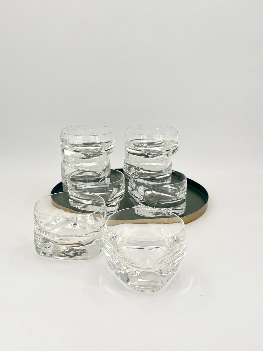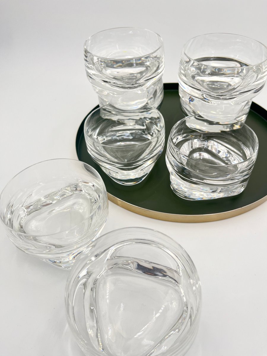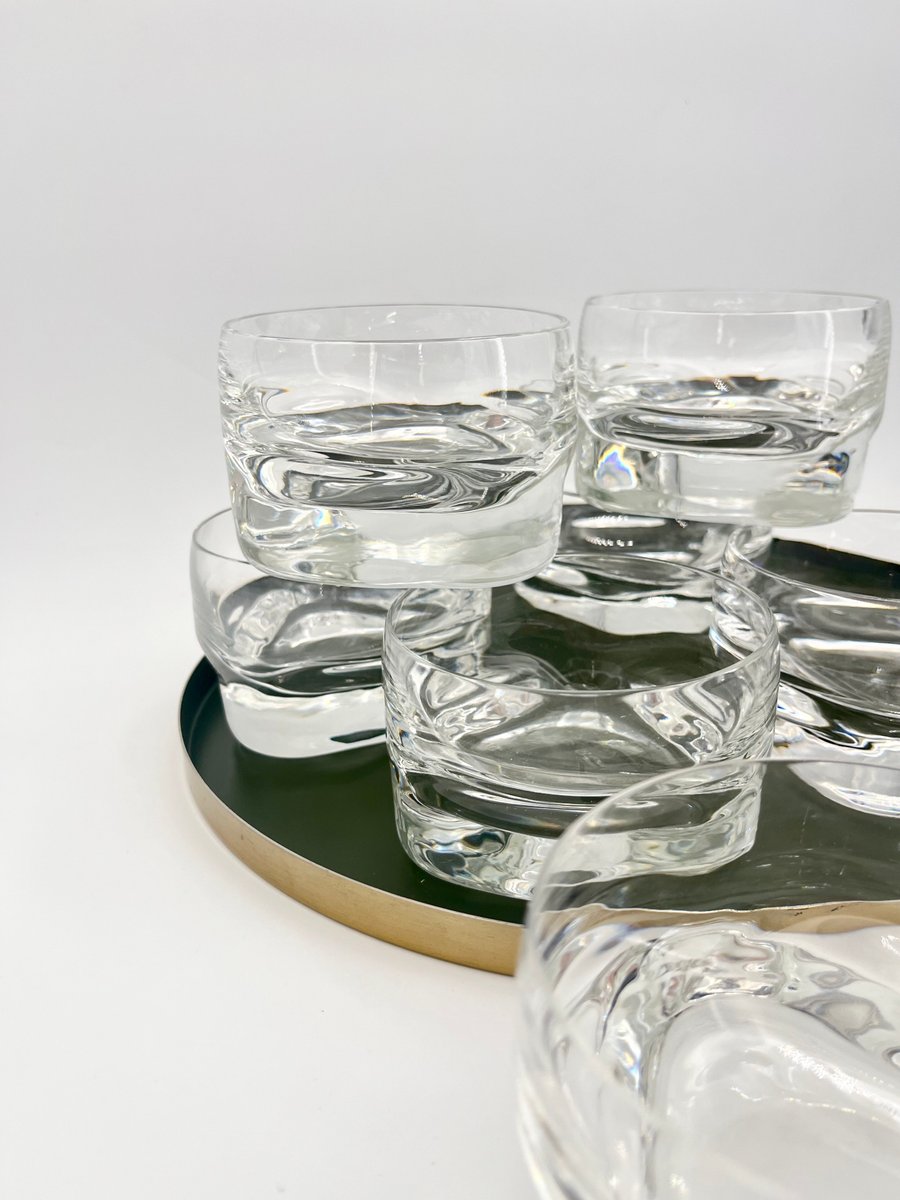 This set of large glasses from the Pitagora series, designed by Marco Zanuso for Arnolfo Di Cambio in 1969, is an iconic example of Italian glassware design. The glasses feature a unique geometric profile with a triangular base and a cylindrical bowl that tapers slightly at the top, creating a striking contrast. Perfect for cocktails, desserts, or fruit salads, these mouth-blown and handcrafted glasses showcase the balance of form and function. Part of Arnolfo Di Cambio’s prestigious Clearline collection, this set is a collectible piece of mid-century modern glassware.
