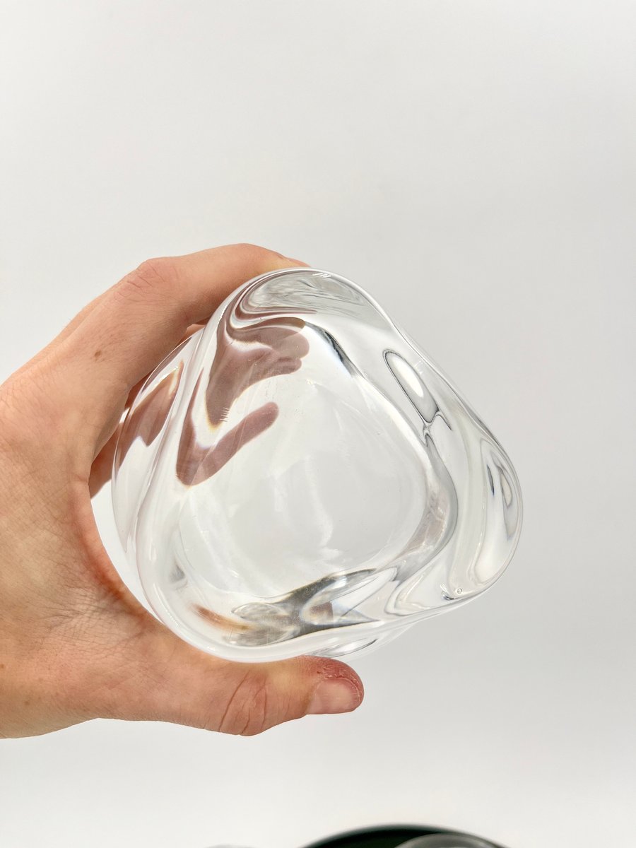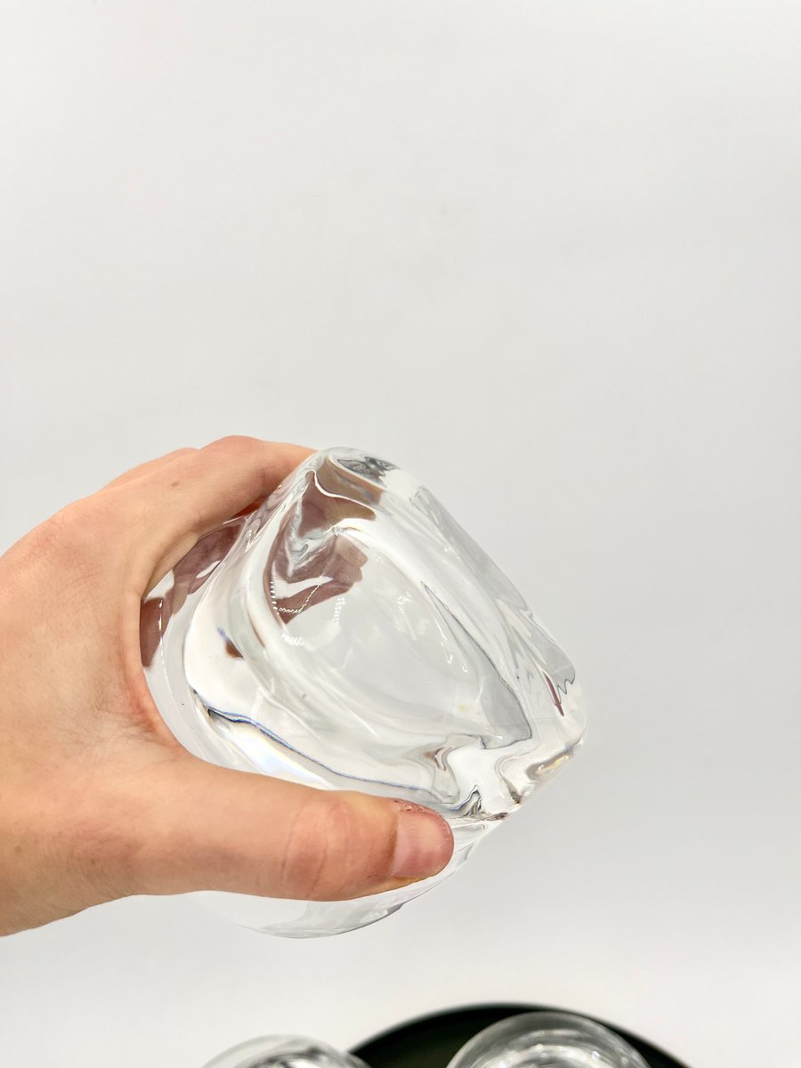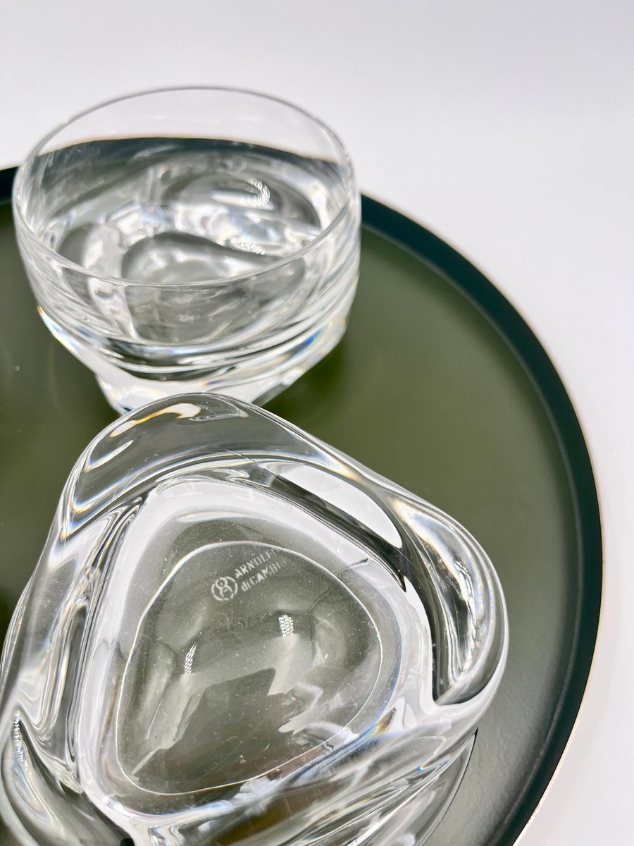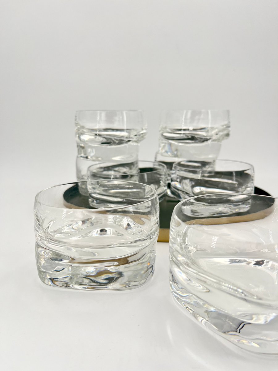 This set of large glasses from the Pitagora series, designed by Marco Zanuso for Arnolfo Di Cambio in 1969, is an iconic example of Italian glassware design. The glasses feature a unique geometric profile with a triangular base and a cylindrical bowl that tapers slightly at the top, creating a striking contrast. Perfect for cocktails, desserts, or fruit salads, these mouth-blown and handcrafted glasses showcase the balance of form and function. Part of Arnolfo Di Cambio’s prestigious Clearline collection, this set is a collectible piece of mid-century modern glassware.