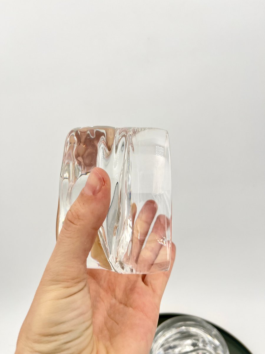 Questo set di grandi bicchieri della serie Pitagora, disegnata da Marco Zanuso per Arnolfo Di Cambio nel 1969, è un esempio iconico del design vetrario italiano. I bicchieri presentano un profilo geometrico unico, con una base triangolare e una coppa cilindrica che si assottiglia leggermente nella parte superiore, creando un contrasto sorprendente. Perfetti per cocktail, dessert o macedonie, questi bicchieri soffiati a bocca e lavorati a mano mostrano l'equilibrio tra forma e funzione. Parte della prestigiosa collezione Clearline di Arnolfo Di Cambio, questo set è un pezzo da collezione di cristalleria moderna di metà secolo.