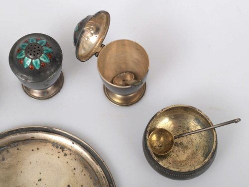 Set di ciotole per spezie in argento smaltato, set di 5