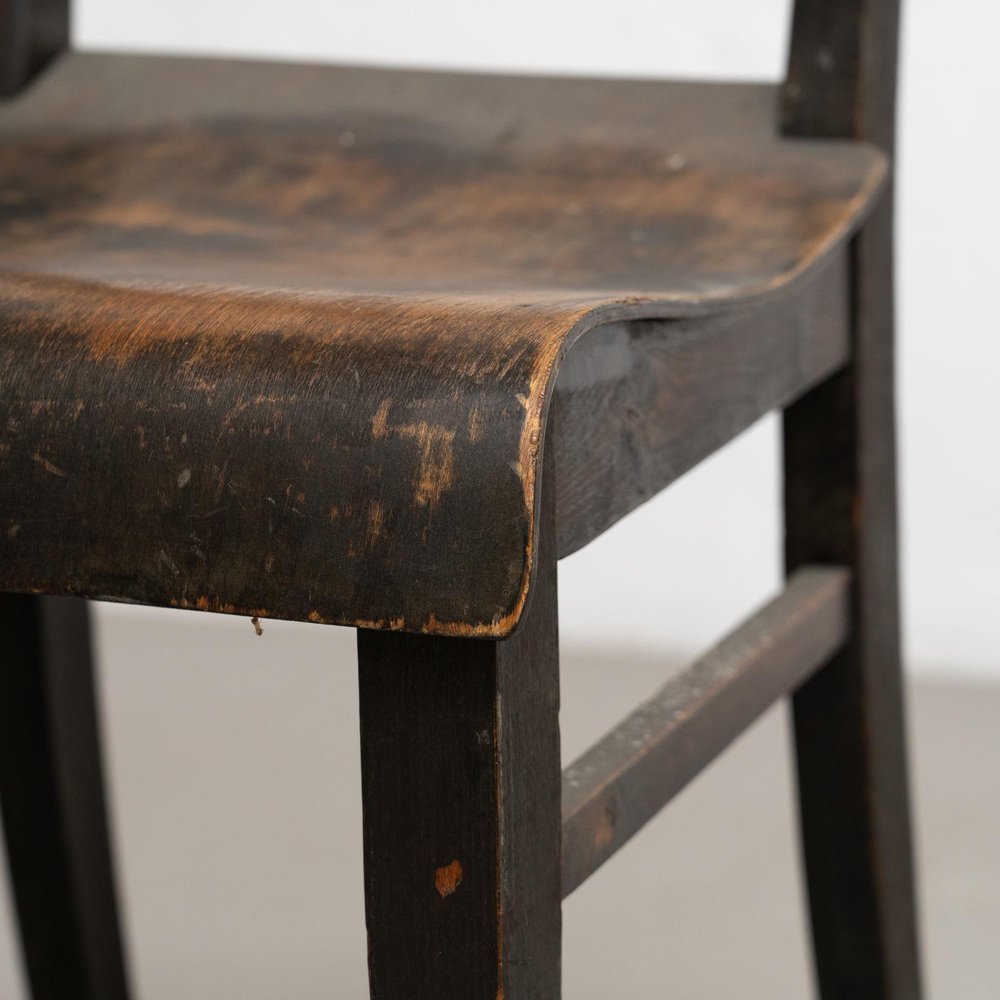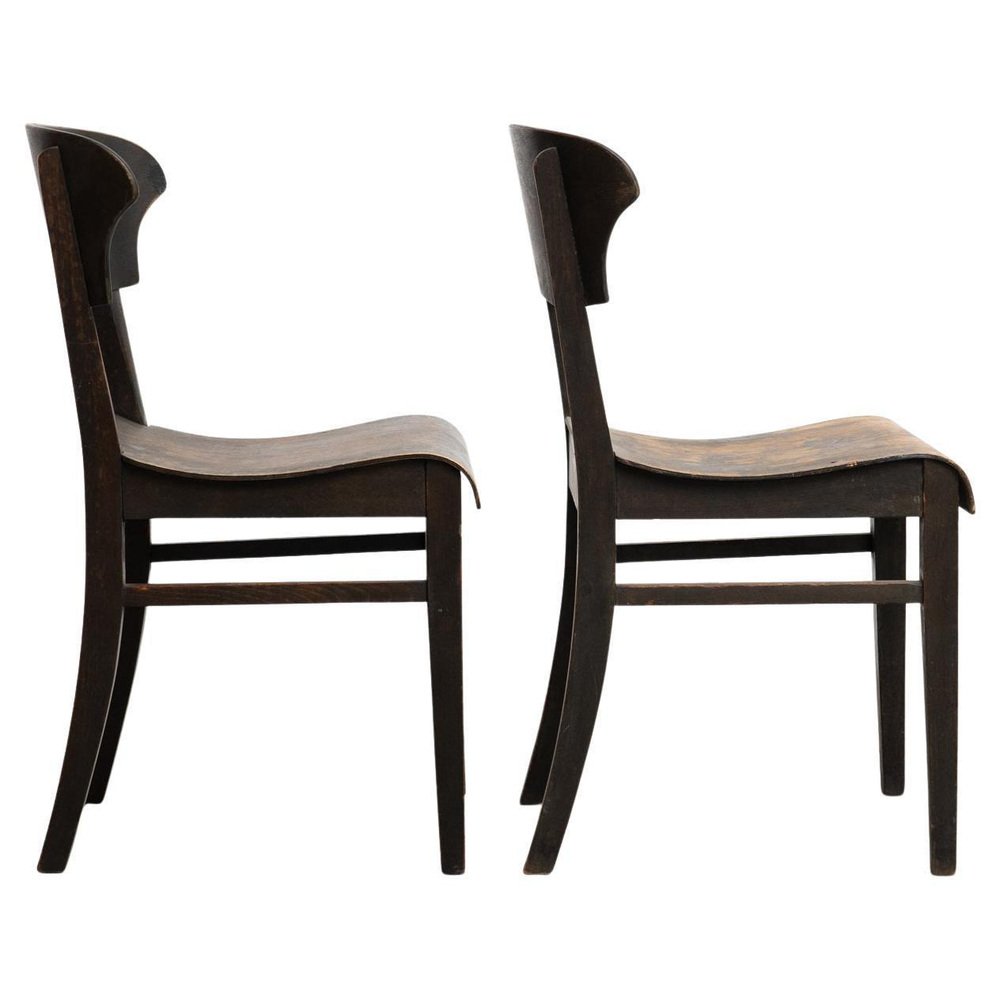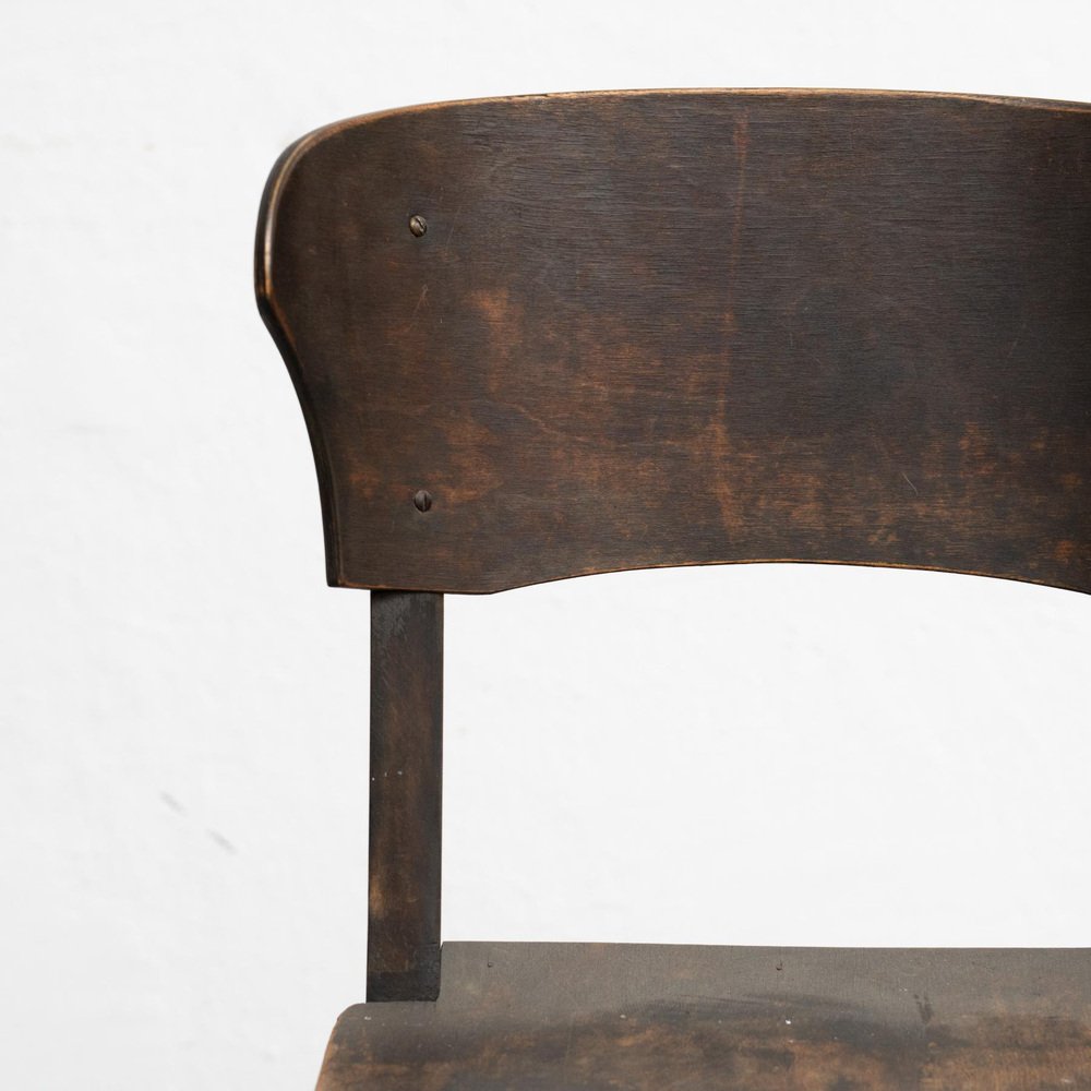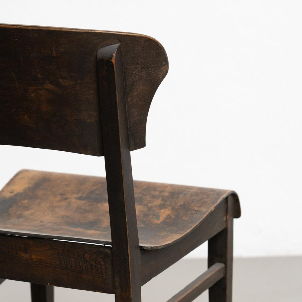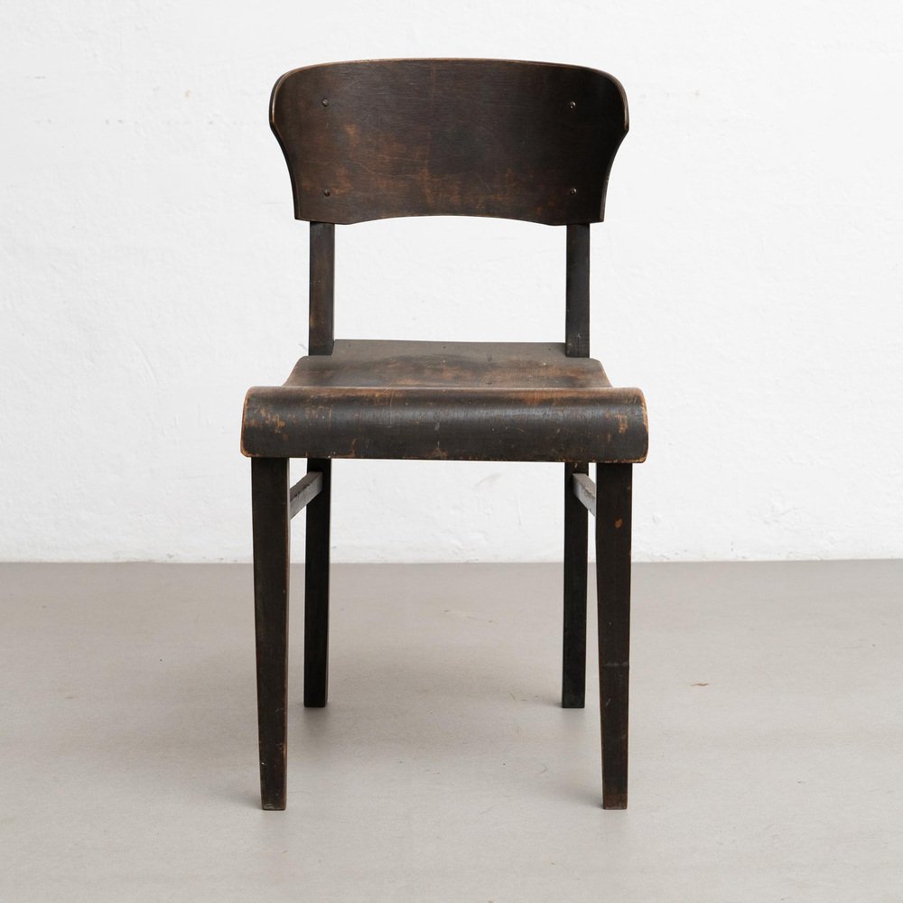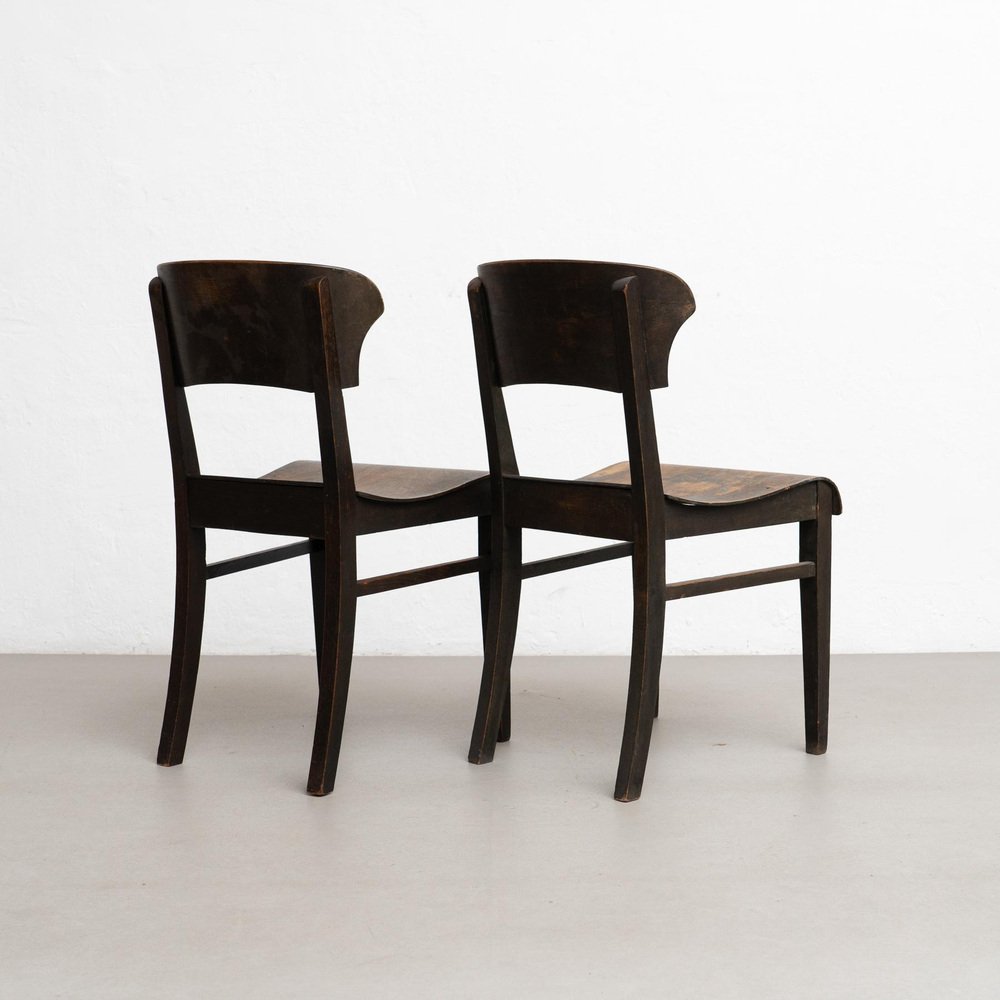 Set of Two Bauhaus-Style Chairs - Germany, 1940s This set of two Bauhaus-style chairs is an excellent example of the simplicity and functionality that defined this influential design movement. Manufactured in Germany in the 1940s, the chairs feature a laminated wood structure that stands out for its robustness and minimalist elegance. Their original condition, with natural signs of wear, makes them unique pieces full of character and history. Laminated Wood Frame: The chairs are built with high-quality laminated wood, a material that highlights the functional and simple aesthetic of the Bauhaus style. The wood has been worked to provide both strength and lightness, making the chairs both comfortable and durable. The seat and backrest are unupholstered, which highlights the natural beauty of the wood and the purity of the design. This minimalist approach allows the buyer to personalize the chairs with the material that best suits their style. Original Condition: The chairs are in their original condition, with signs of natural wear from time and use. Though the marks of wear are visible, they add to the piece's unique charm and authenticity sought by collectors. Dimensions: Diameter (seat): 44 cm Width (backrest): 49 cm Height: 81 cm Manufactured in Germany in the 1940s, these chairs are an example of the practical and elegant approach of Bauhaus design, which prioritized functionality without sacrificing aesthetics. Their clean structure and lack of unnecessary ornamentation make them timeless pieces that are still highly valued in modern and vintage-style interiors. This set of chairs is ideal for those seeking authentic pieces full of history, perfect for complementing industrial, modern, or eclectic spaces. They are versatile and bring a touch of functional elegance to any room. The chairs are in their original state, with visible signs of use that give them a unique patina. If you are looking for a pair of chairs with history and personality, this set is the perfect choice for your home.