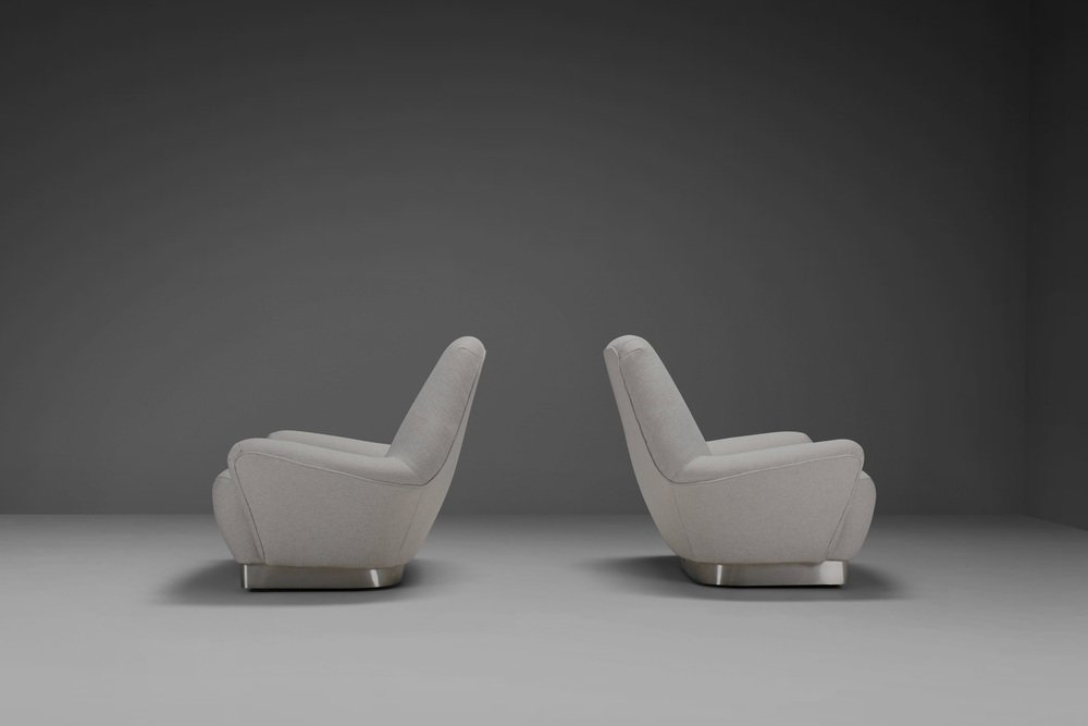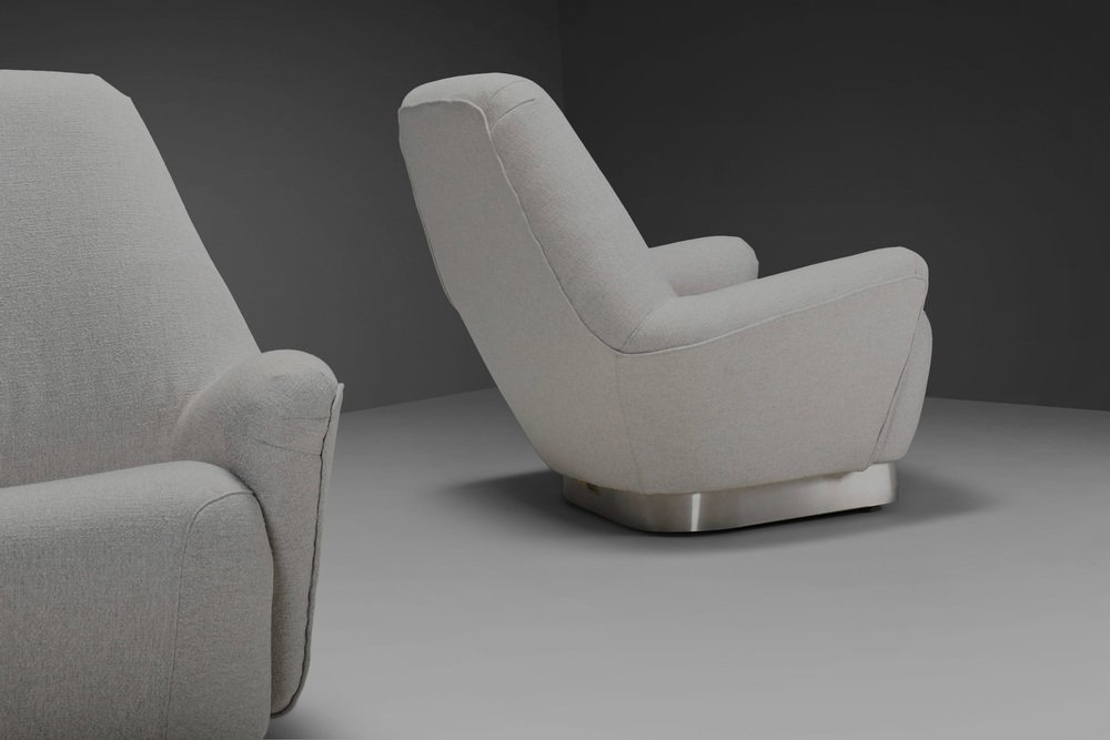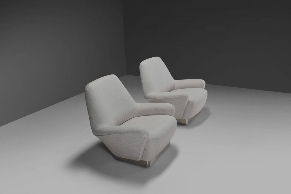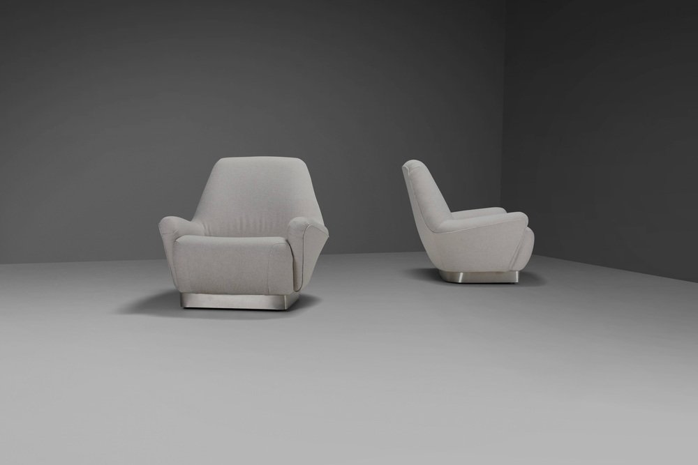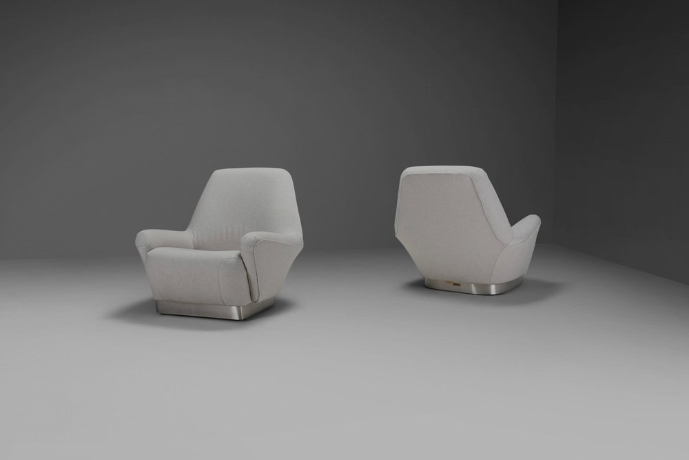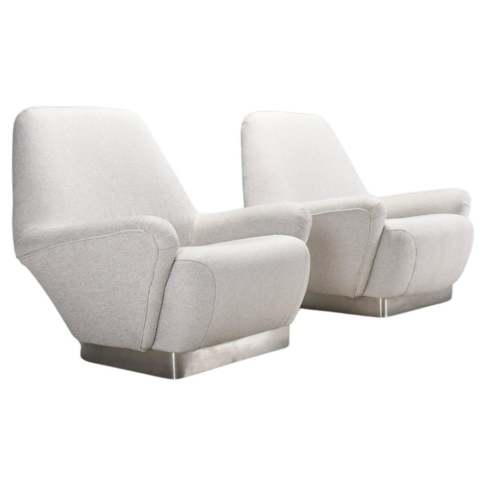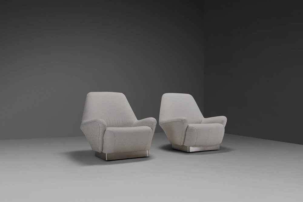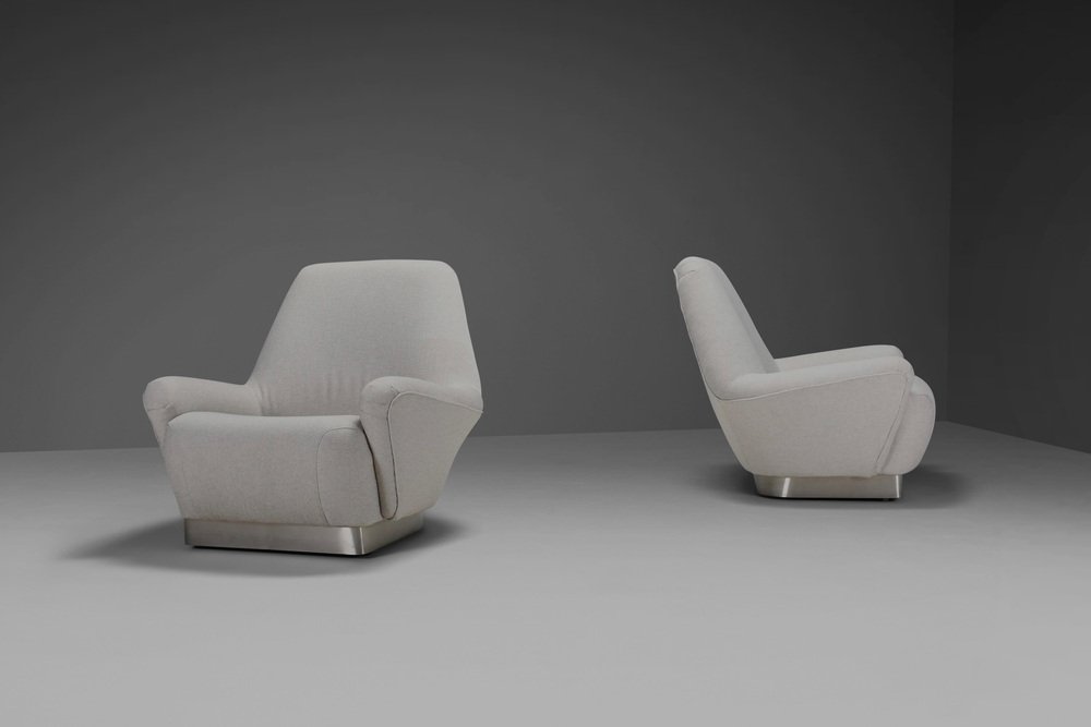 Poltrone grigie in tessuto e acciaio inossidabile attribuite a Gianni Moscatelli, anni '70, set di 2
