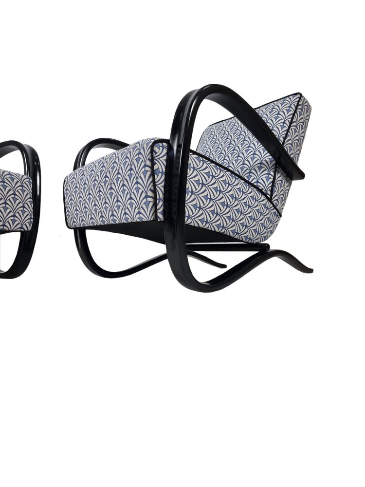 Altri design di Halabala includono la poltrona H-269 (all'inizio degli anni '30) - probabilmente il più famoso design ceco, facile da riconoscere per i suoi esagerati braccioli curvi; il tavolino da caffè a ragno H-370 (anni '30); e la poltrona regolabile H-70 (anni '30), solo per nominarne alcuni. Come i suoi contemporanei scandinavi Alvar Aalto (1898-1976) e Bruno Mathsson (1907-1988), Halabala utilizza legno piegato nella maggior parte dei suoi design di sedie.