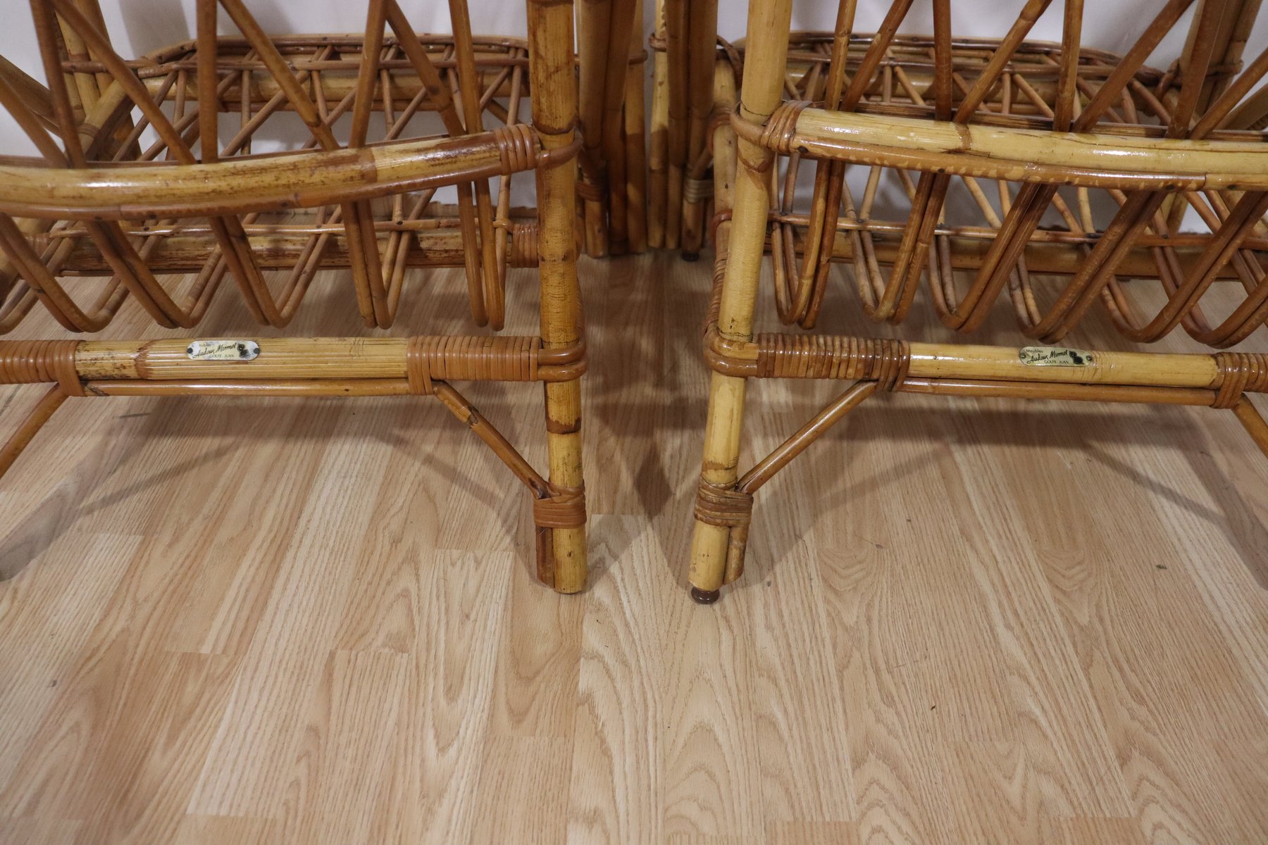 Poltrone in vimini di Adrien Audoux & Frida Minet, anni '50, set di 2