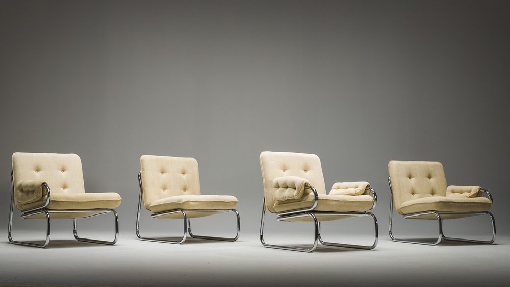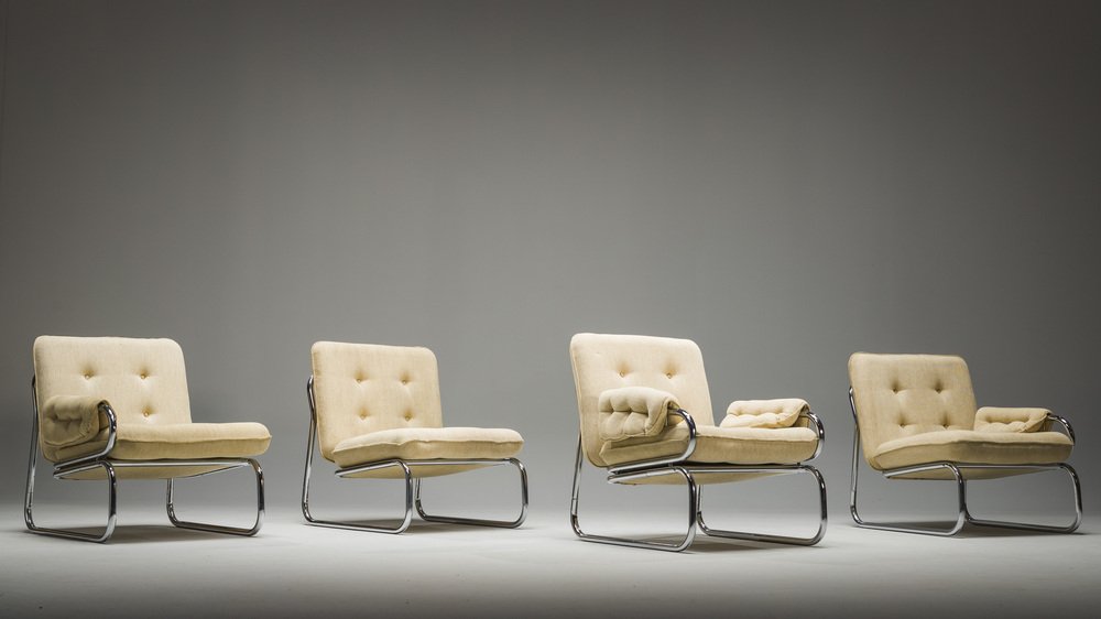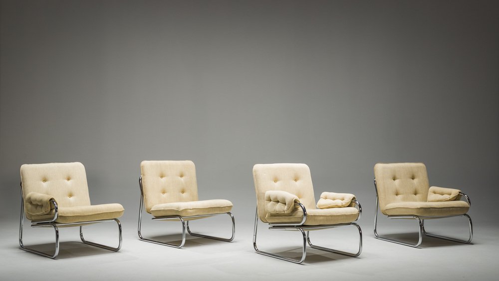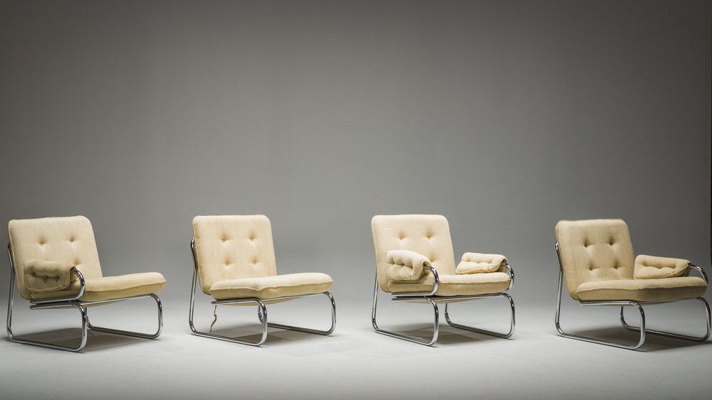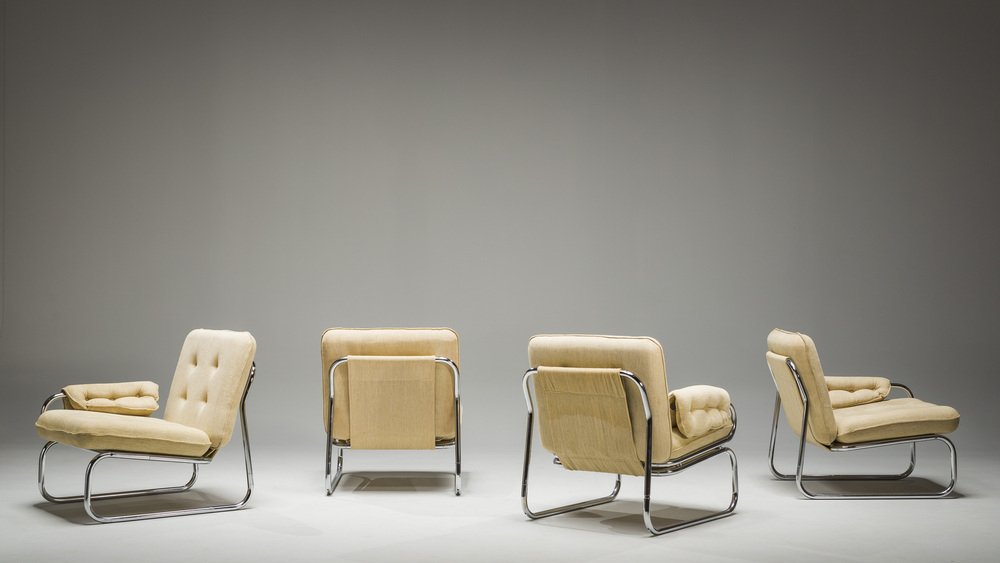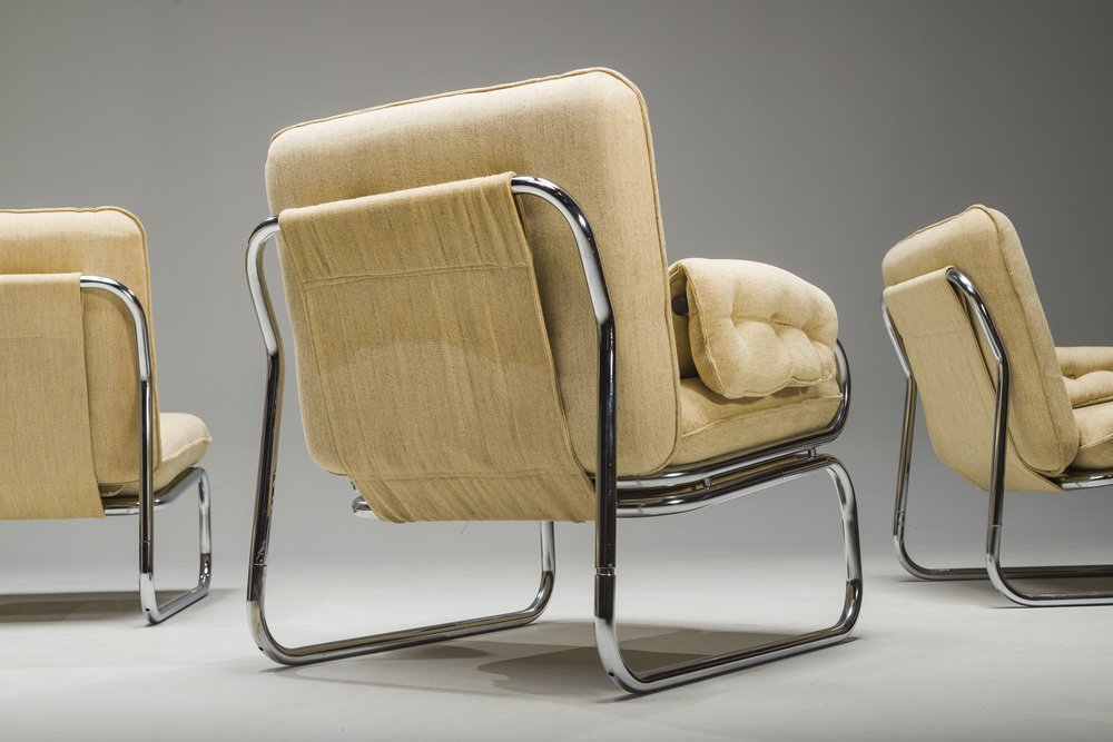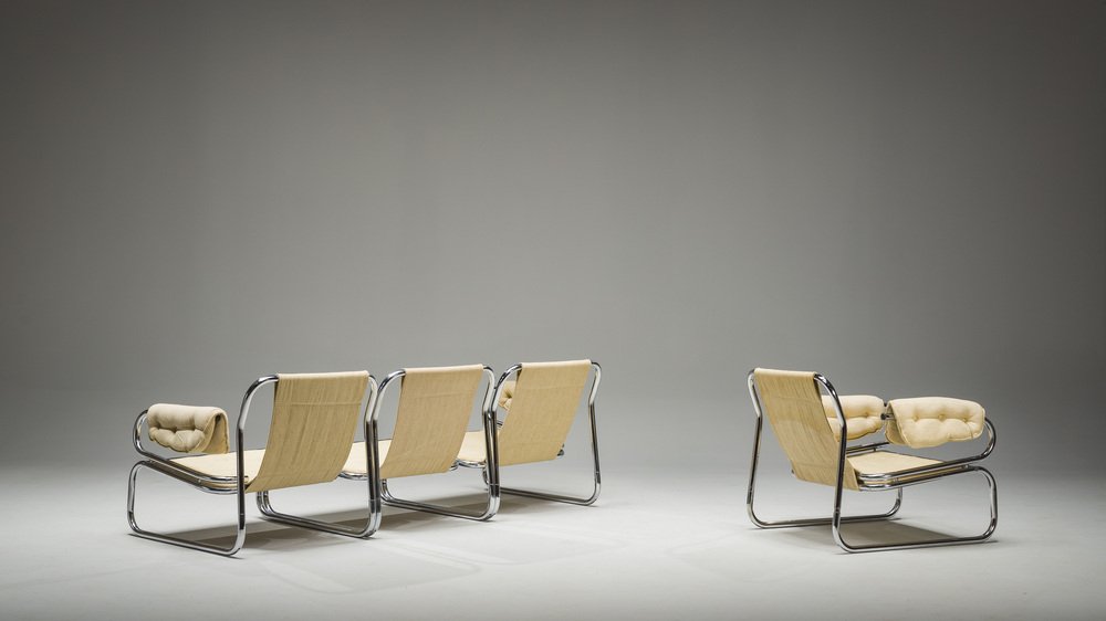 Sedie P60 e poggiapiedi di Vittorio Introini per Saporiti, anni '60, set di 4