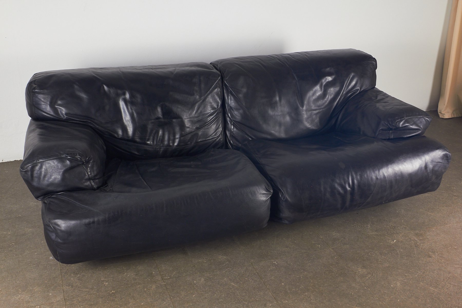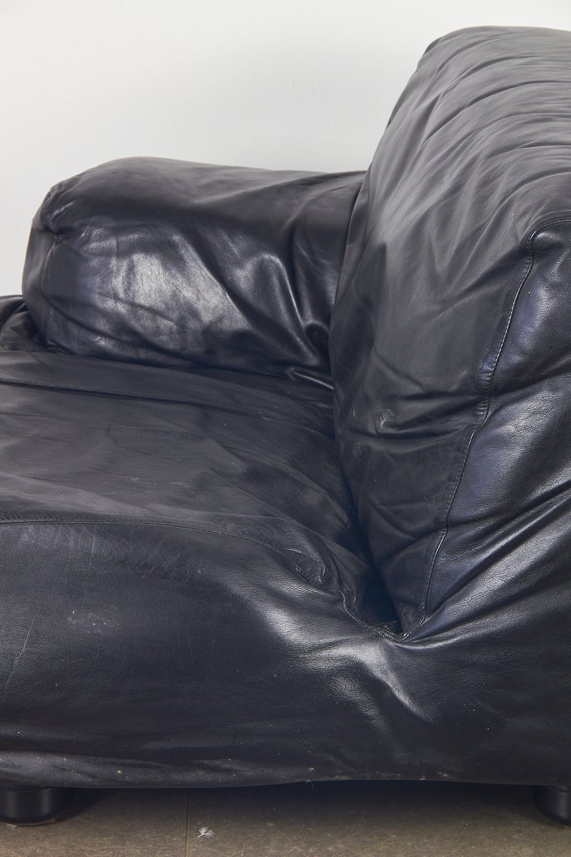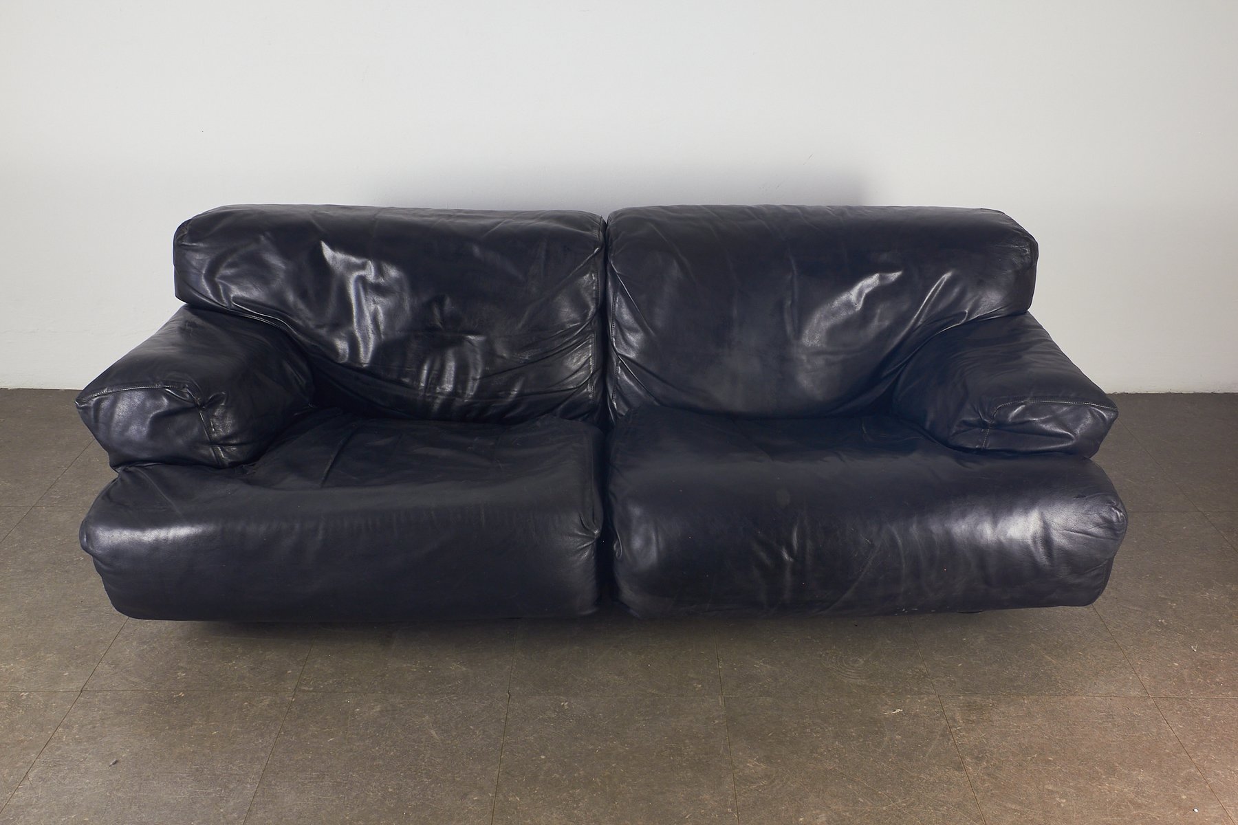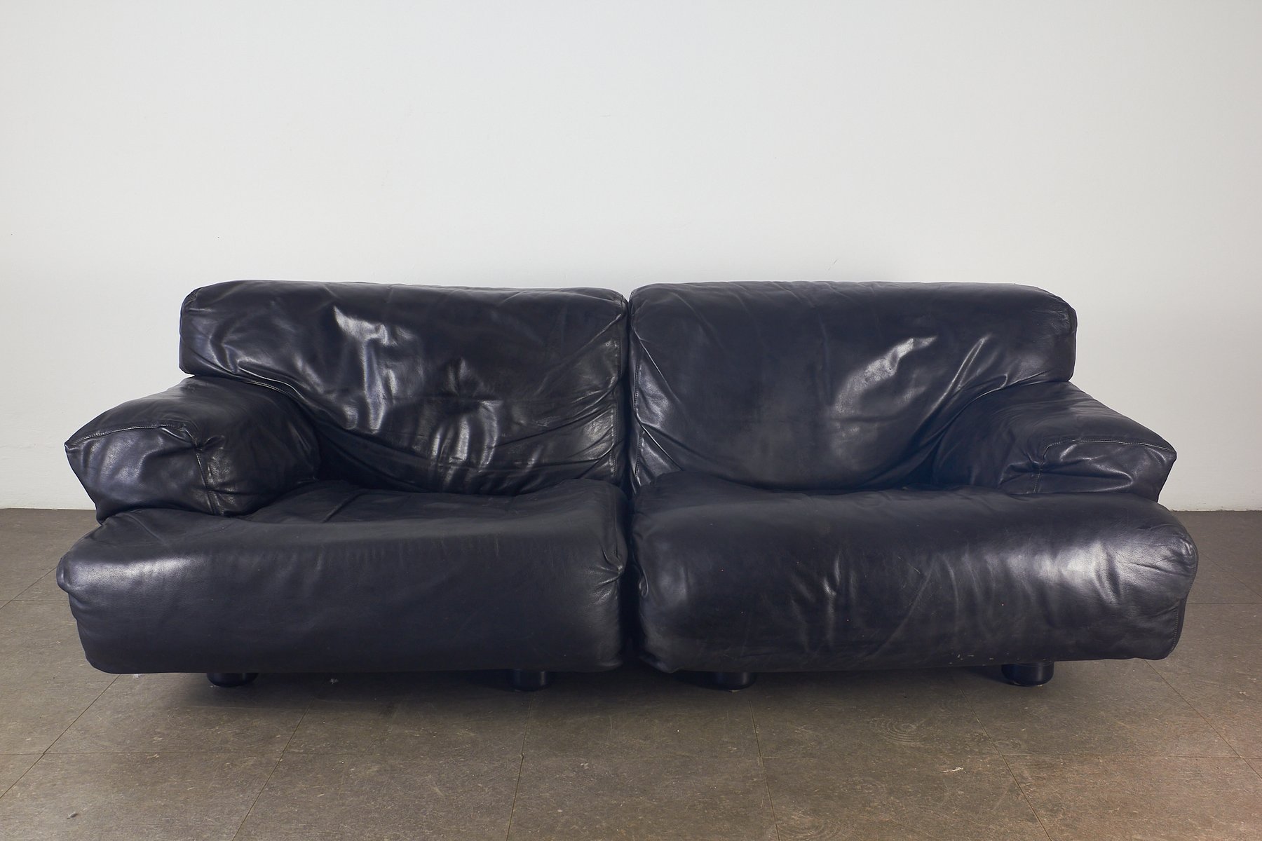 Divano a due posti Fiandra in pelle di Vico Magistretti per Cassina, anni '80, set di 2