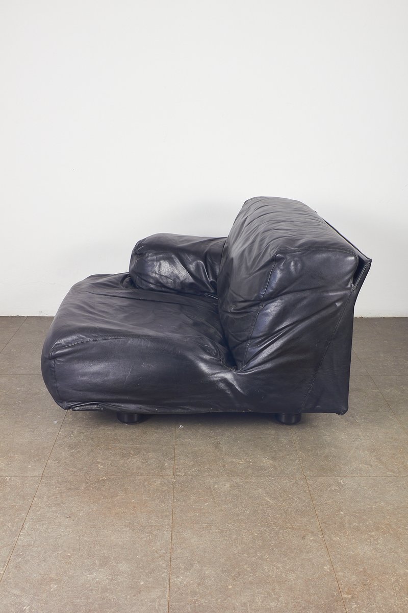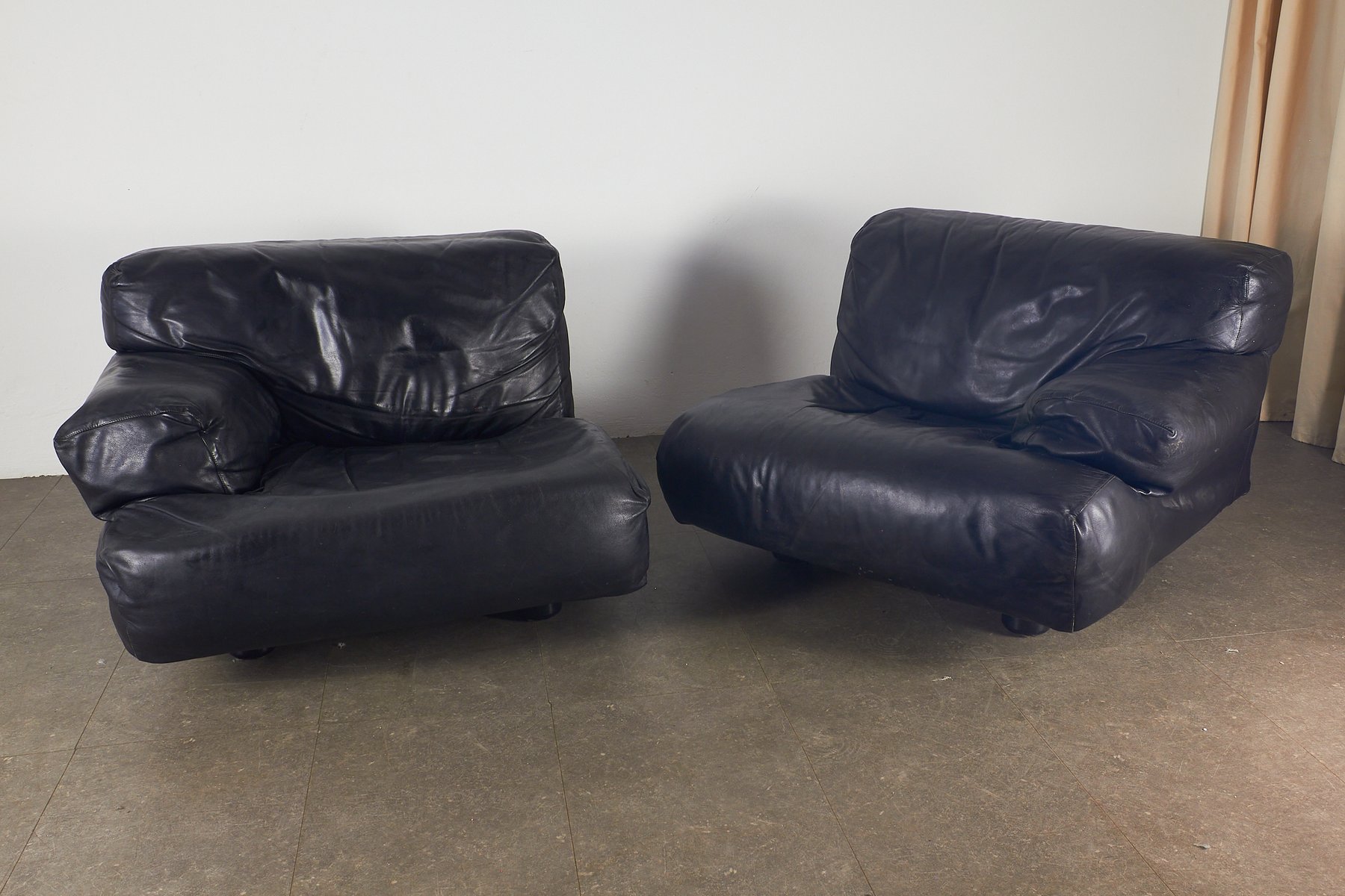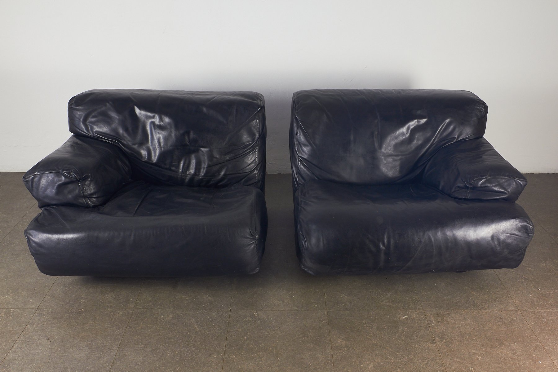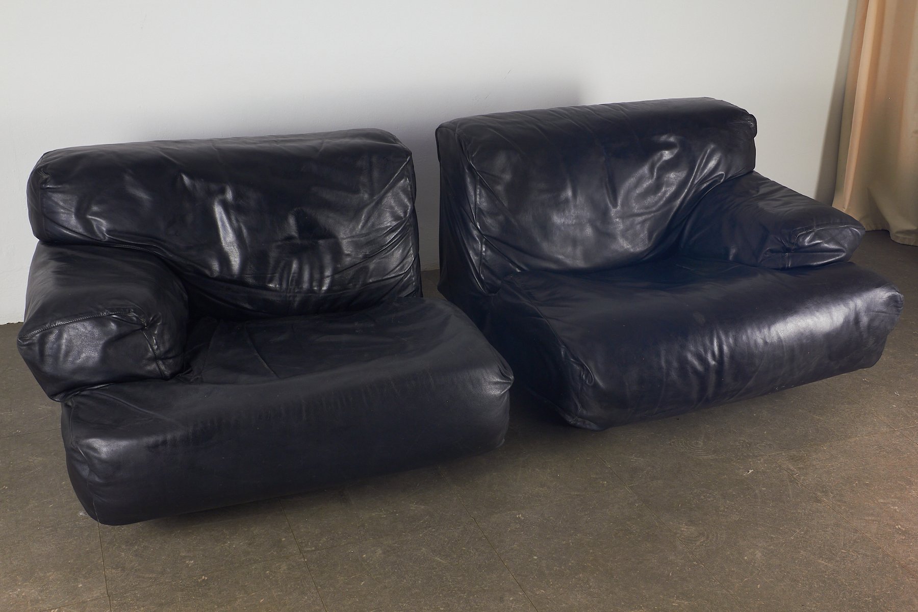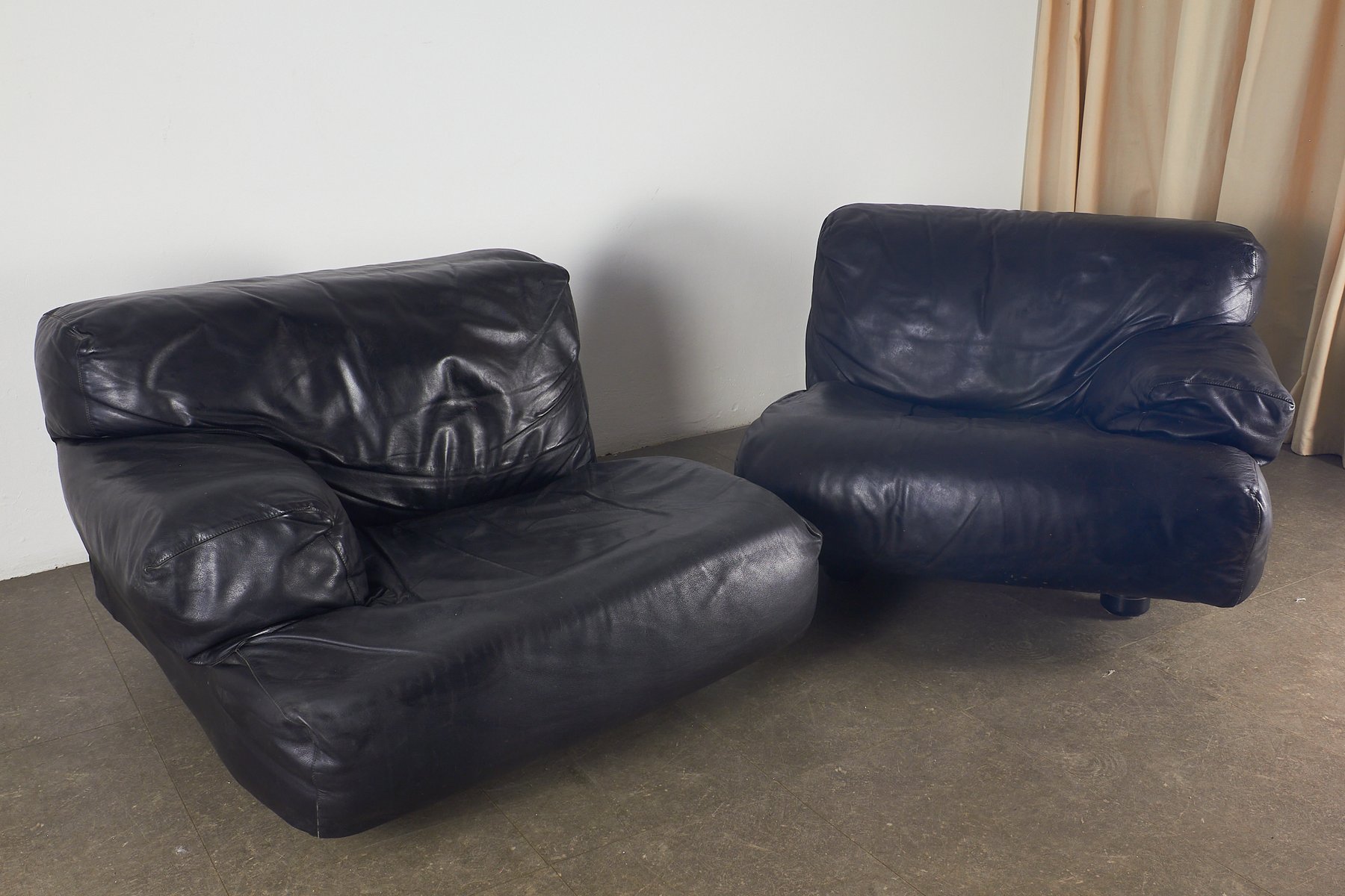 Divano a due posti Fiandra in pelle di Vico Magistretti per Cassina, anni '80, set di 2