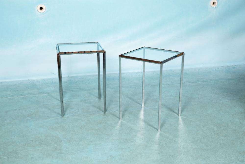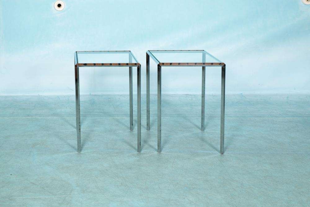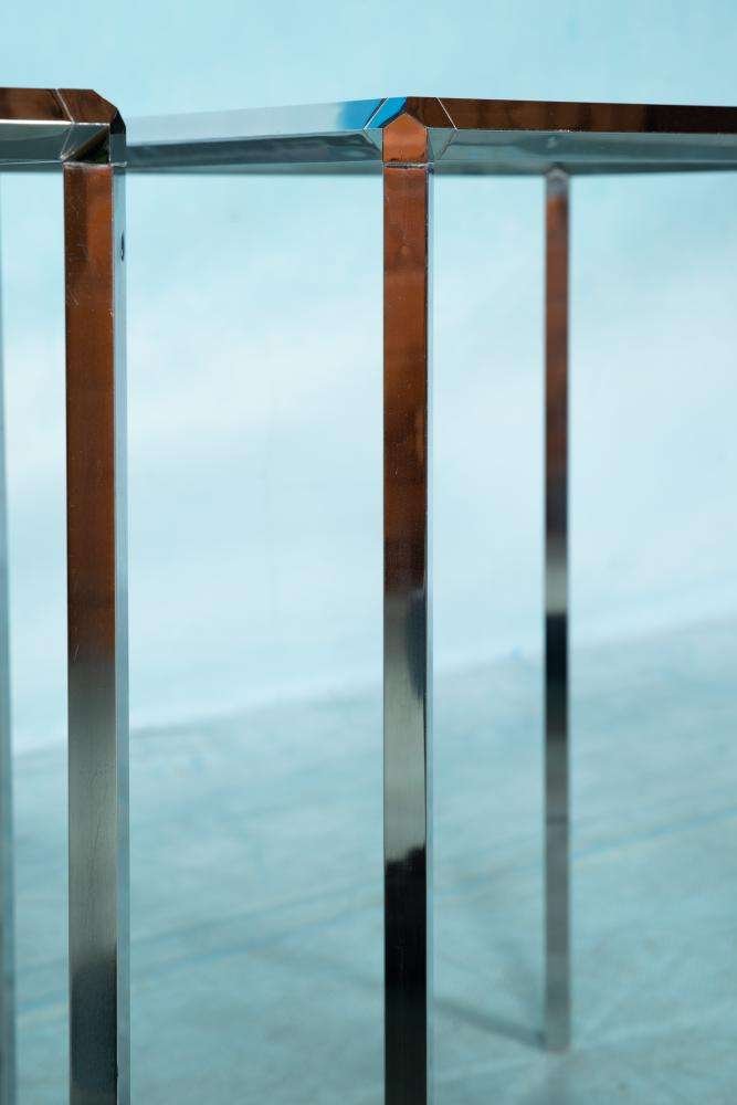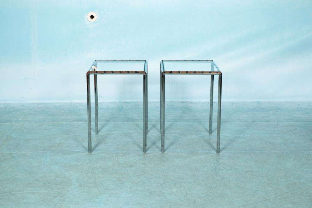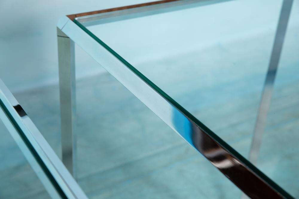 Tavolini vintage in vetro e metallo cromato di Herman Miller, set di 2